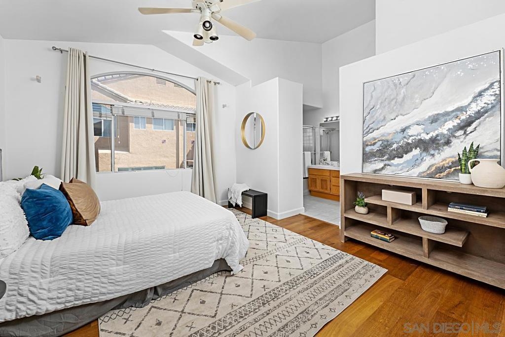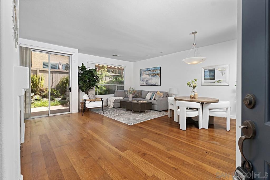 Elegant Andria @ Renaissance La Jolla. End unit with no one above or below. Light neutral interior, open floor plan, spacious primary suite with second bedroom with attached bathroom. High quality wood flooring throughout, vaulted ceilings, updated lighting, large concrete patio, 2-car attached garage with epoxy flooring and washer/dryer included. CLOSE TO RESTAURANTS, SHOPS, PARKS, LIBRARY & FREEWAY ACCESS. MINUTES TO ANYWHERE IN SAN DIEGO.