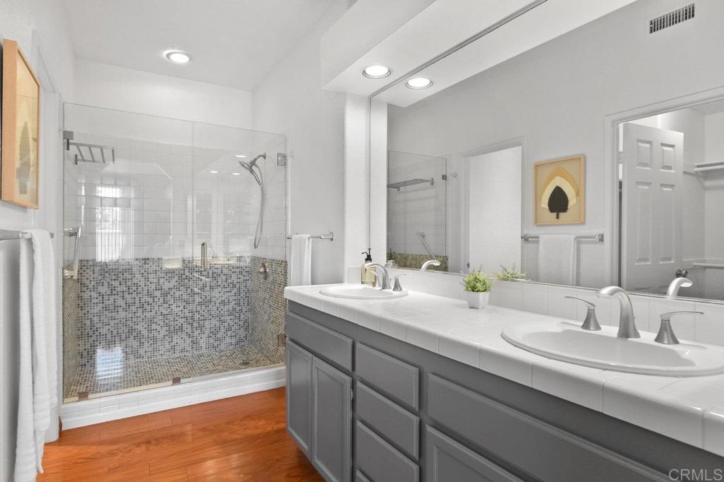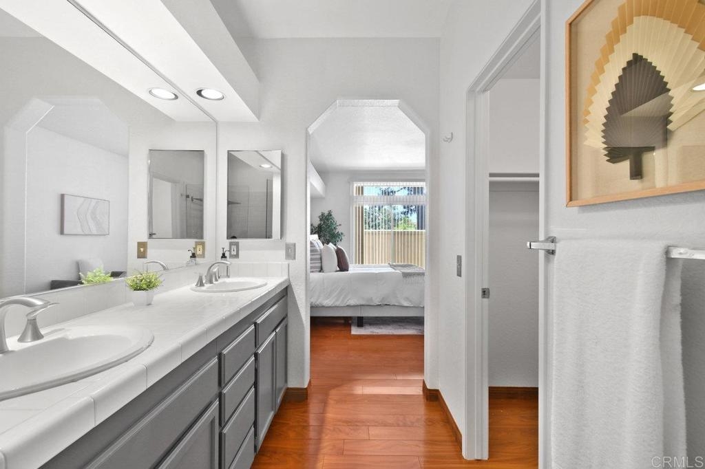 Welcome to your new home in the highly sought-after Capri complex, nestled within the beautiful Renaissance community in the heart of UTC! This incredible ground-floor, single-story corner unit offers the perfect blend of privacy, comfort, and convenience. With 2 bedrooms, 2 bathrooms, and 1,019 sq. ft. of bright and inviting living space, this condo is surrounded by lush greenery and mature trees—your own peaceful retreat right in the middle of everything San Diego has to offer. Step inside and you’ll love the open floor plan, freshly painted interior, and rich laminate flooring throughout. Natural light fills the space, making it feel airy and welcoming. The kitchen is equipped with modern appliances, plenty of storage, and a convenient breakfast bar—perfect for casual dining or entertaining. The spacious primary suite features a walk-in closet and a private en-suite bath with a beautifully remodeled shower, while the second bedroom is ideal for guests, a home office, or creative space. Step outside to your oversized patio—great for BBQs, relaxing or hosting friends under the California sun. Live the ultimate UTC lifestyle with world-class shopping and dining at Westfield UTC, beautiful La Jolla beaches, UCSD, parks, high walkability and easy freeway access just minutes away. The Renaissance community also offers fantastic resort-style amenities including a pool, spa, and scenic walking trails. This turnkey condo is a rare find—don’t miss your chance to call one of San Diego’s most desirable neighborhoods, home!