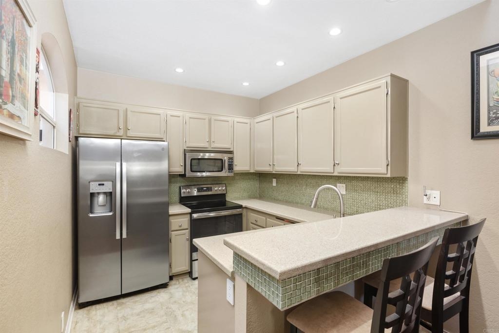 This Exclusive condo is locate in the Heart of Golden Triangle in Capri of Renaissance. It has vaulted ceilings with high beams, large windows, cozy living room with a fireplace, updated kitchen with brand new stainless appliances, hardwood flooring, spacious bedroom and bathroom, walk in closet and a private laundry. It offers one car garage on the first floor with a storage. It offers beautiful natural light inside and great layout with cute balcony. It is nearby Nobel Athletic Park & Library, Restaurants in Renaissance Clocktower Shopping center with nearby walking paths and Shopping Center. It is near UCSD, Schools, Hospitals and much more.