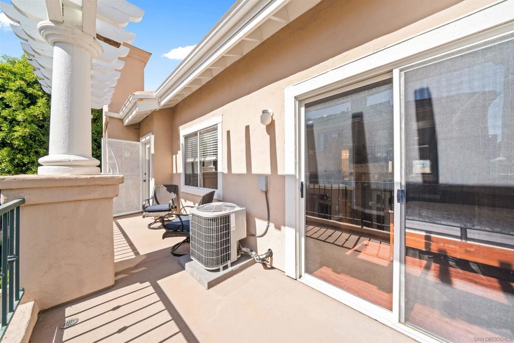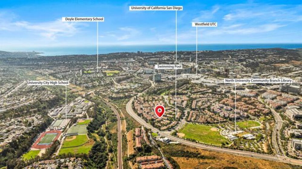 This upgraded upper-level end unit in the Capri community offers a bright and open layout with no carpet. High ceilings and large windows bring in plenty of natural light. The living room has a cozy gas fireplace and connects easily to the dining area. The kitchen features granite countertops, bluish-grey cabinets, and a spacious pantry. A full-size laundry room is in the hallway, and there is plenty of guest parking. Located in the desirable Renaissance community of University City, the home is within walking distance to the park, library, UTC Mall, and the trolley line.