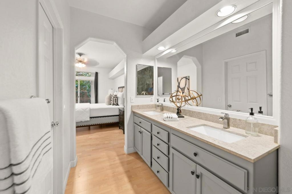 Welcome to the coveted Renaissance Capri complex, situated in a convenient location within University City. Offering 2 bedrooms and 2 bathrooms, this lovely corner unit is first floor and features a spacious patio...perfect for entertaining, BBQing, relaxing and enjoying the fresh breezes. Private and light filled, the laminate-wood floors invite you to wander through the well laid out condo complete with laundry room and attached 1 car garage. The primary bedroom offers sliding doors out to the serene patio and a spacious bathroom and walk-in closet. The complex has a pool and jacuzzi, with additional guest parking. This condo is minutes away from Nobel Athletic Field, library and UTC mall. Don't miss this opportunity for tranquil living in a convenient location!