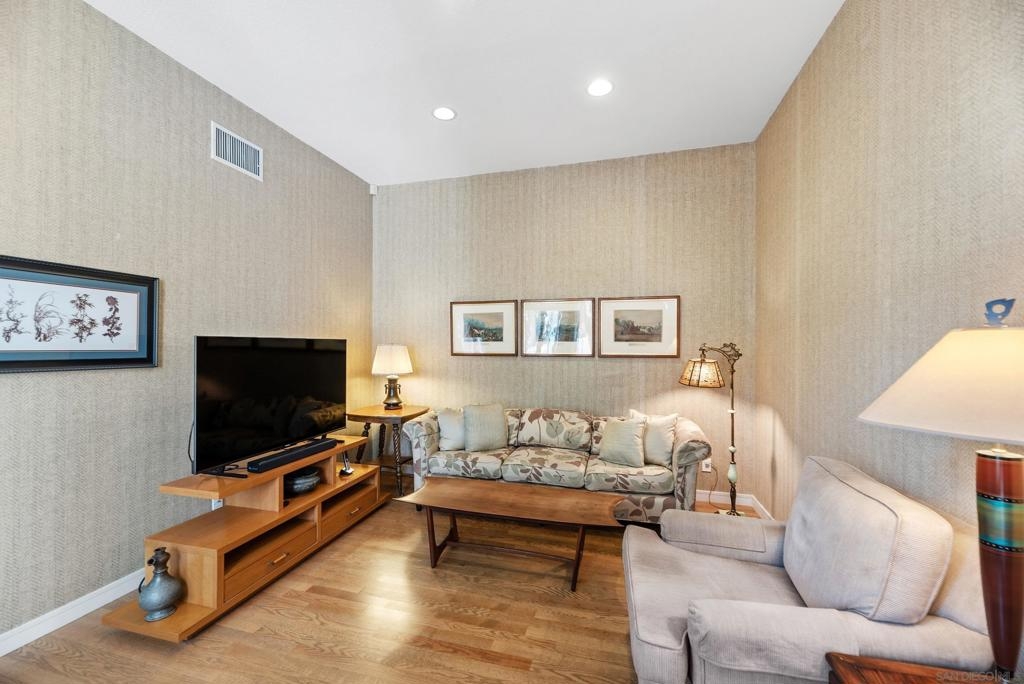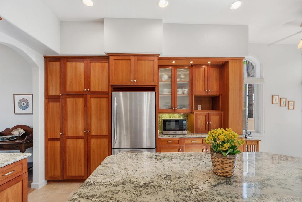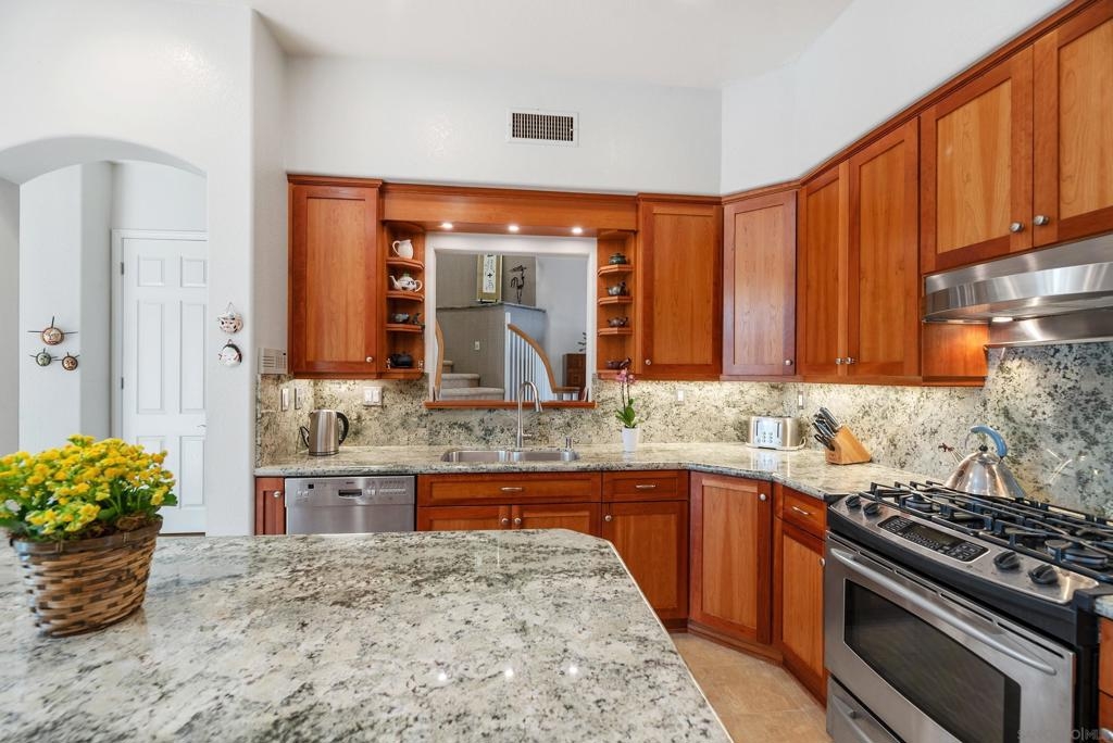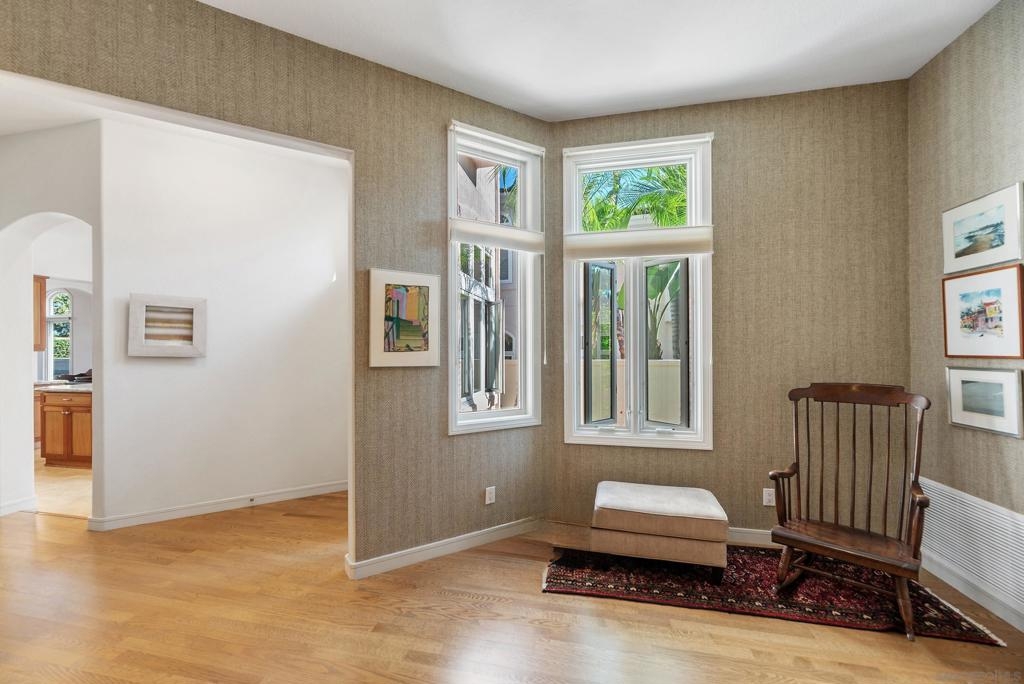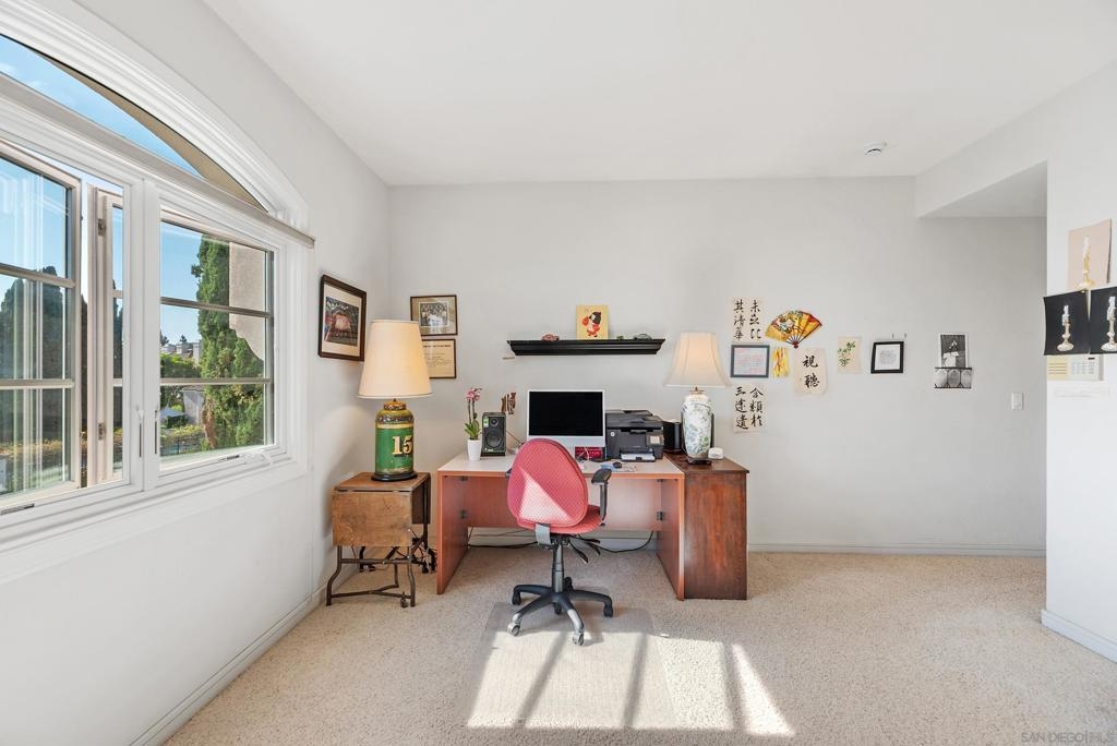 Beautifully upgraded home in gated Casabella! Stunning, well-maintained home featuring a custom-built kitchen with granite counters and a center island, high ceilings, and 3 fireplaces. Spacious primary suite with large walk-in closet and retreat (4th bedroom option—see floorplan). Rare first-floor full bath with an optional first-floor bedroom (with conversion). Upstairs laundry, generous room sizes, and an open, end location with no homes in front. Located near guest parking and the community pool/spa, and nestled in the sought-after Renaissance La Jolla community, with its ultra-convenient location and charming European village atmosphere. Stroll along lushly landscaped greenbelts, complete with serene water features, to nearby shops and restaurants. Just down the street, a 25-acre park offers sports fields, a library, dog parks, pickleball courts, and a community recreation center. The acclaimed Westfield Shopping Center is easily accessible via the park across Towne Centre Drive. It provides a premier destination for dining, shopping, and entertainment, featuring upscale restaurants, a movie theater, boutiques, and gyms. Easy freeway access. There is potential for up to 5 bedrooms—see the floor plan shown in the photos. Natural light floods the spacious interior of this elegant Casabella home, streaming through wood-cased windows and French doors, accentuating its beautiful architectural details.. The primary retreat is an optional bedroom (with conversion- see floorplan in photos). There is a potential of up to 5 bedrooms with a bedroom and full bath on the first level.—floorplan in photos.