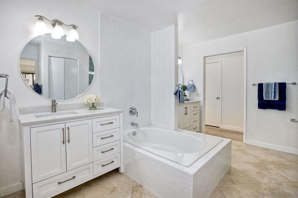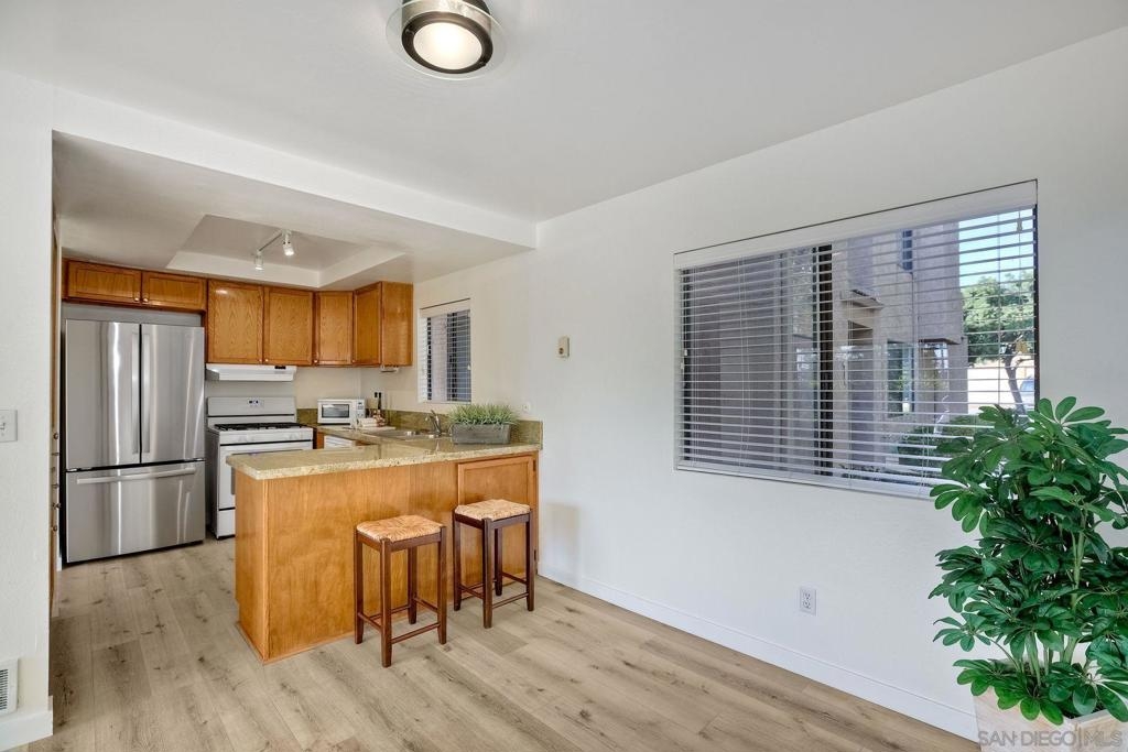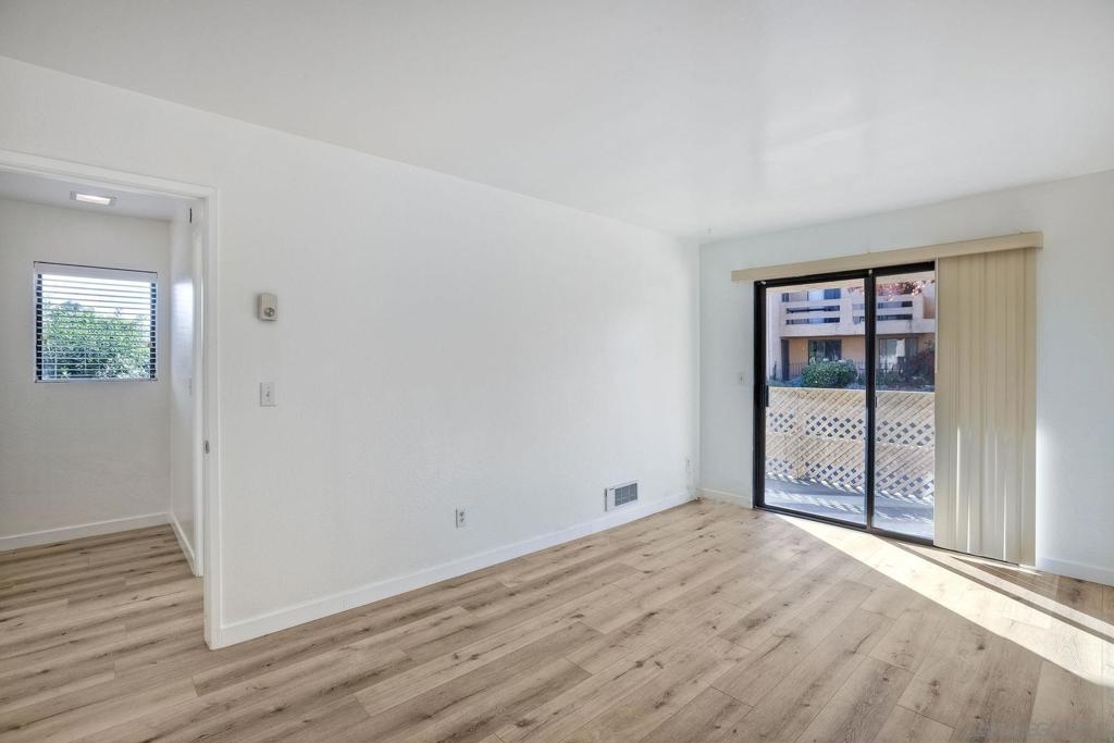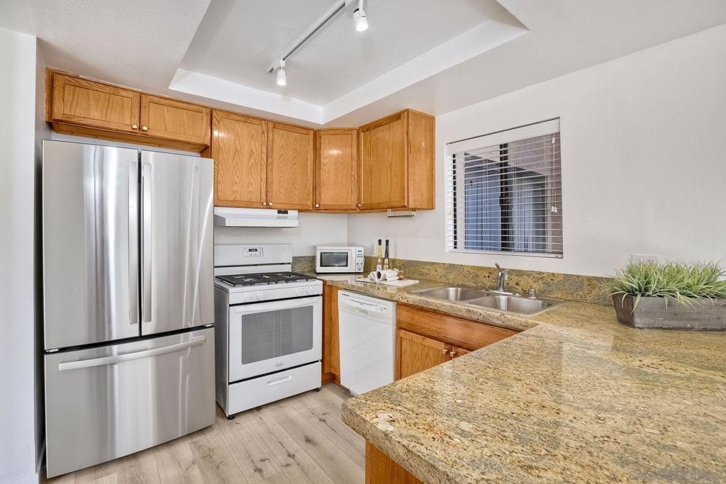 Rarely available! Beautiful downstairs corner unit w/ lots of natural light. Gorgeous new luxury vinyl floors, newer paint throughout, 2 outdoor spaces including the front patio & a private balcony off the bedrooms. The living room is spacious w/ a fireplace & a slider to the front patio. Kitchen has granite countertops, breakfast bar, pantry, brand new SS refrigerator. Upgraded bath is HUGE w/ new vanities/plumbing fixtures, separate tub/shower & a stacked washer/dryer. Both bedrooms have sliders to enjoy the private balcony. There's a 1 car garage & a dedicated driveway space. Complex has a pool, spa & permit parking on complex streets. Best location near Vons, UCSD shuttle/bus stops, UTC mall, La Jolla beaches. Complex Features: , Equipment: Dryer,Garage Door Opener, Washer Sewer: Sewer Connected Topography: LL