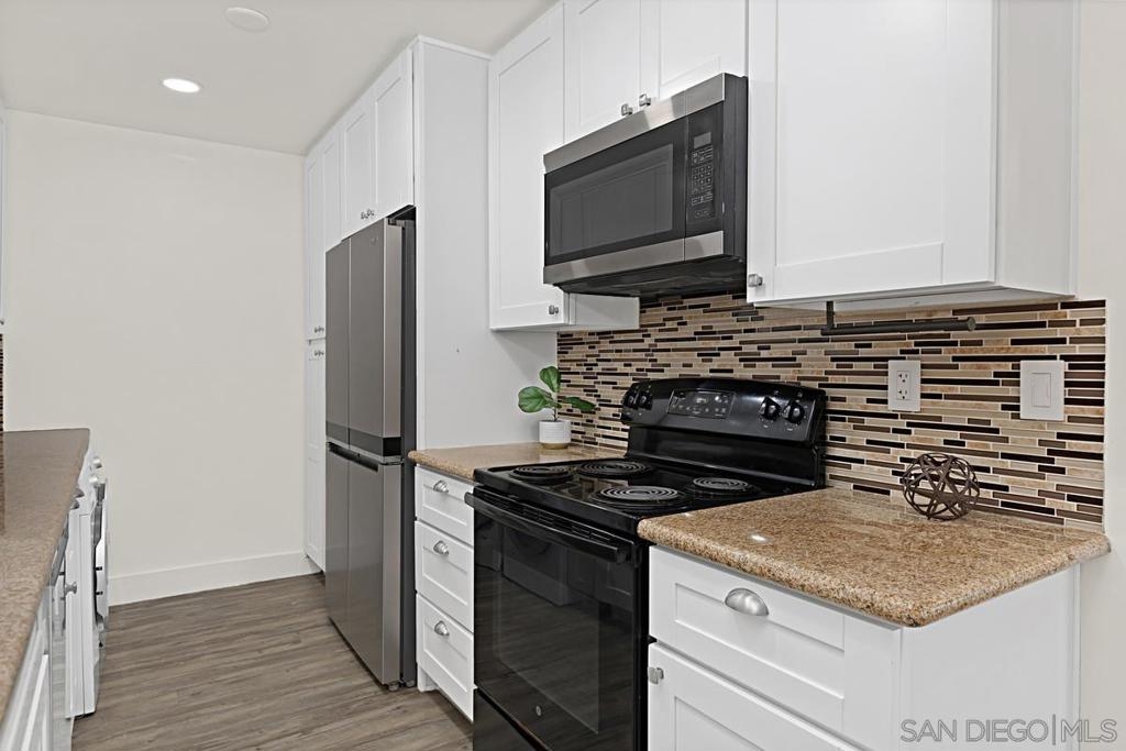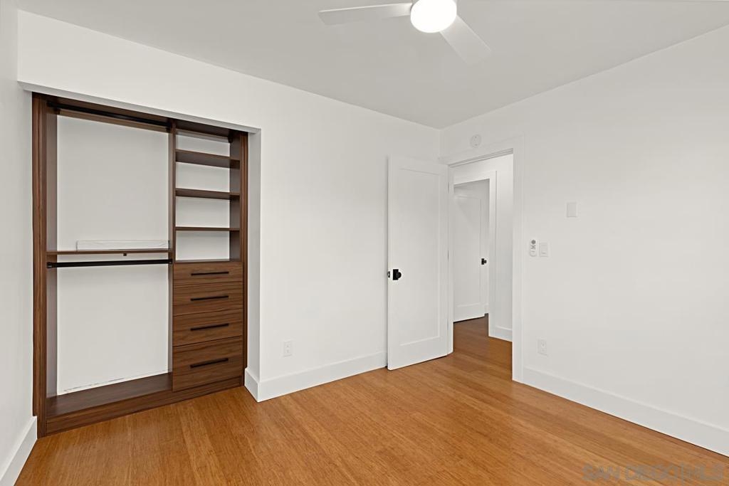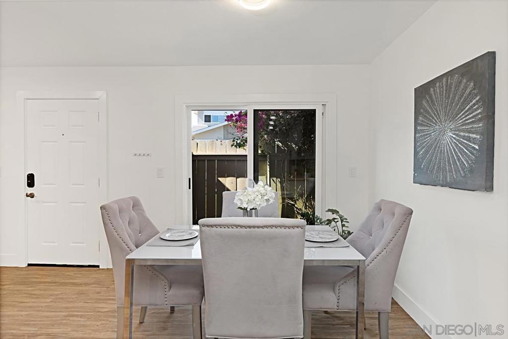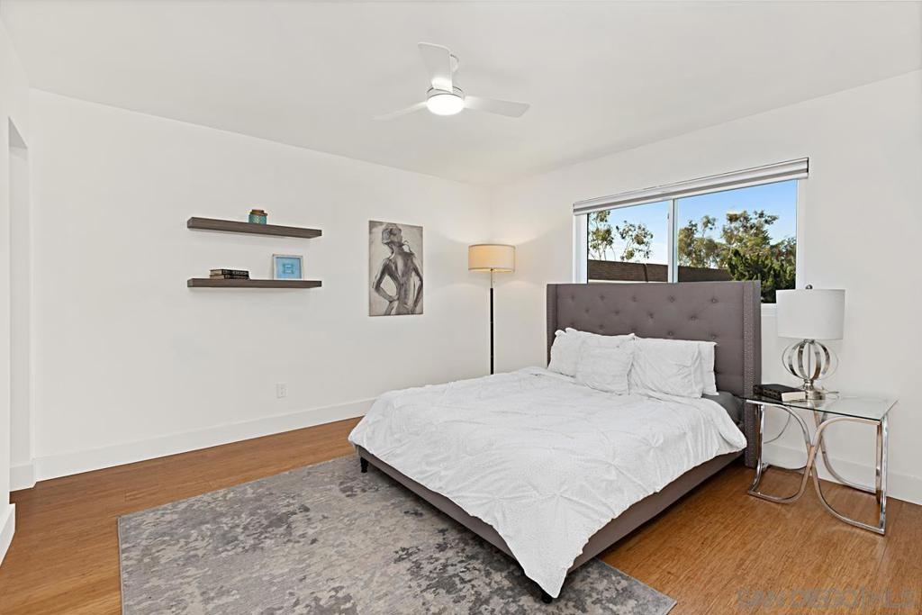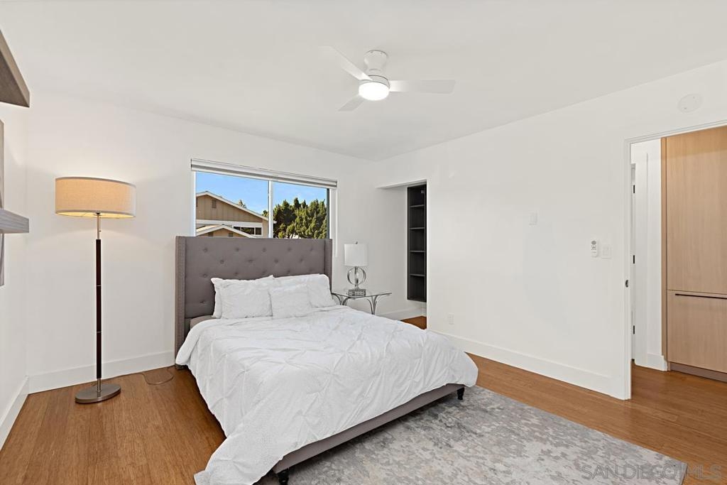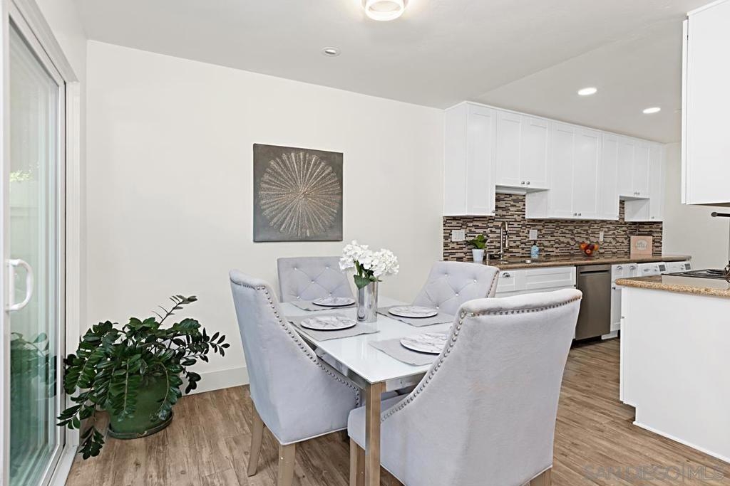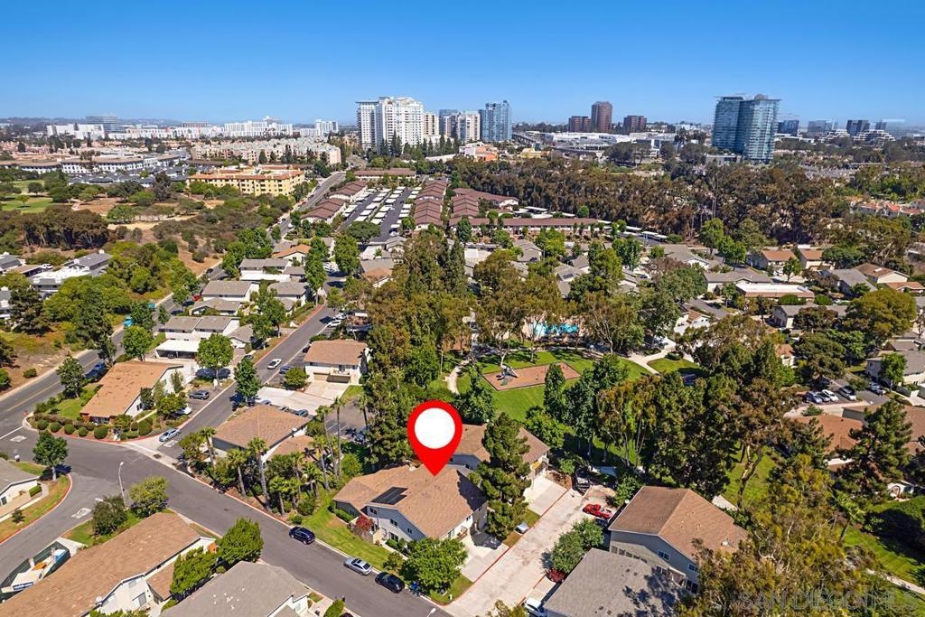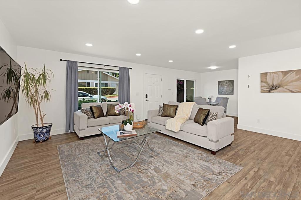 Beautifully updated townhome in Genesee Highlands with nearly every detail upgraded. The open floor plan features a spacious living and dining area flowing into a modern kitchen with custom tile, soft-close drawers, and recessed lighting. Flooring includes bamboo wood upstairs, laminate planks downstairs, and a striking custom ipe wood lighted staircase. A standout feature of the home is the custom walnut under-stair storage and display system, designed by a master cabinet maker with premium German slides—blending elegance with functionality. All three bedrooms include built-in closets and ceiling fans, with the primary bedroom offering a walk-in closet complete with a custom organizer. Additional highlights include solar panels, outdoor patio, shared garage, and abundant storage throughout. Community amenities include parks, playgrounds, pool, and outdoor recreation areas. Ideal location close to UTC shopping, UCSD, and top-rated schools.