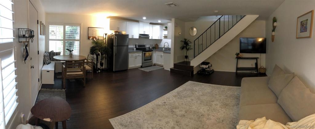 University City Town Home. Upgraded just over 12-months ago. New paint, new carpet, bamboo flooring, one garage space with storage cabinets, upgraded windows, one visitor space. Close to Rose Canyon Trails, UCSD, Westfield Shopping Center, La Jolla Shores, Torrey Pines Reserve, Community Gardens, Playground. Includes shared laundry in garage. Complex Features: ,, Sewer: Sewer Connected Topography: RSLP