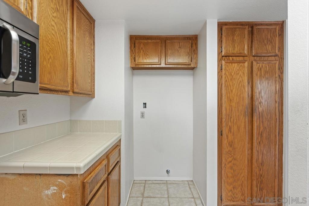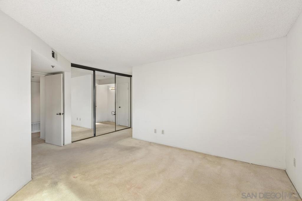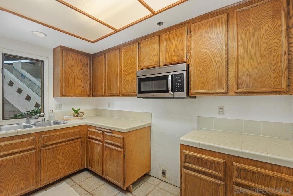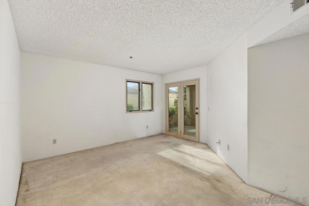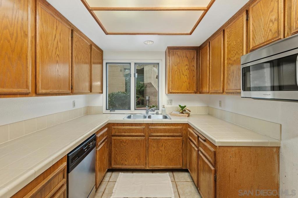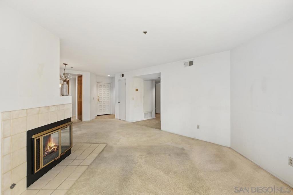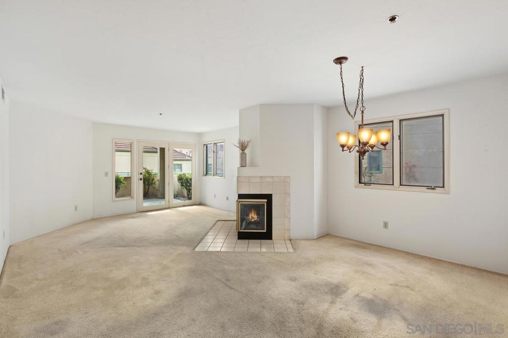 Rare end-unit, 1-level, southern-exposure condo with patio in the gated La Jolla City Club community! ADA-friendly with no stairs. Ready for you to update into your dream home. Offers in-unit laundry, TWO covered spaces, fireplace, generous master bath closets, and amazing kitchen cabinet space! Ideal location: Walk to UTC mall and trolley stop, connecting to UCSD and beyond. Bike to UCSD, or take just a short drive to the beaches and airport. Enjoy the complex's swimming pool and the tennis and pickleball facilities. Seller will install master bath vanity if needed. Once renovated, should rent for $3500 to $4000/month!