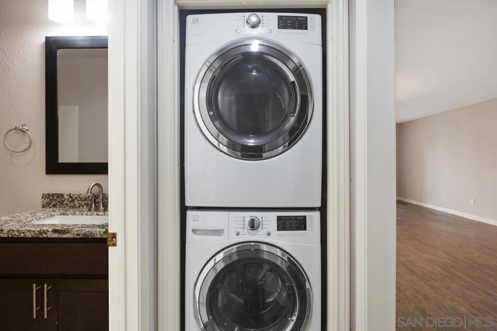 Highly desirable location charming 2 bedroom 2 bathroom condo in the heart of UTC. The open floor plan includes 2 large bedrooms, large living room with fireplace, a massive walk in closet in the master bedroom, stackable full size washer/dryer, and large balcony with storage. Newer updates include granite counter top, laminate flooring, stainless appliances, and more. Complex is gated, has a pool/spa, 2 underground gated secure parking spaces, guest parking, elevator access to parking, walk to UCSD, UTC Westfield mall, restaurants, Whole Foods, groceries, movies, trolley station and more. Bus stops next to complex. Easy access to freeways and the beach