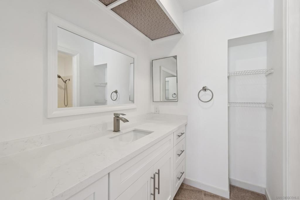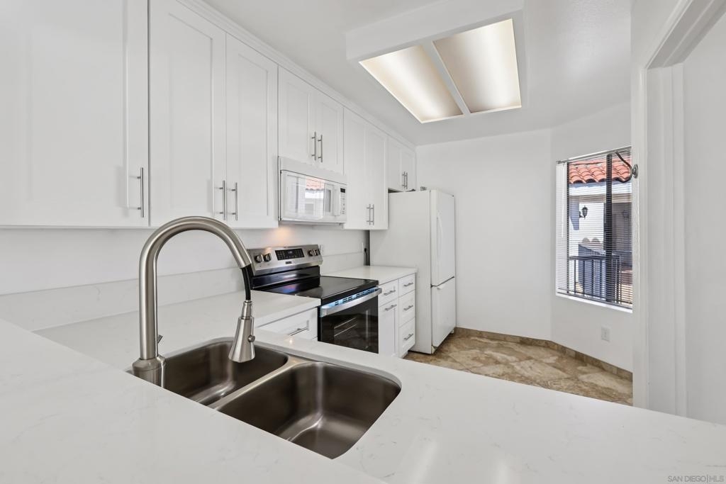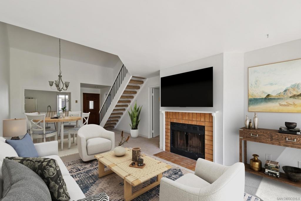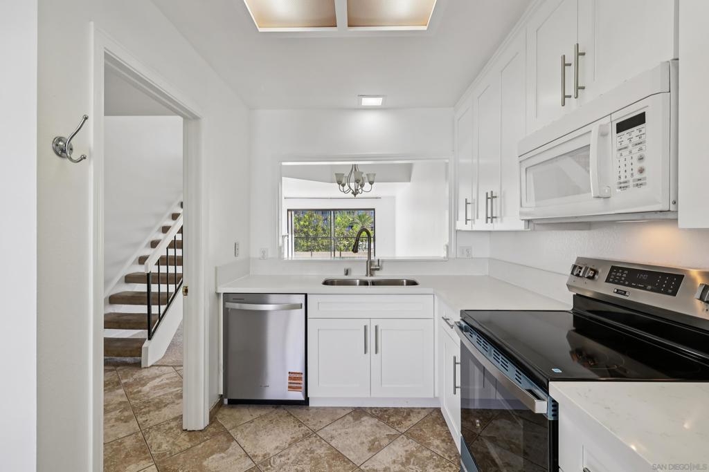Newly remodeled upper unit, with rarely available THIRD bedroom! This unit has been completely updated with new kitchen, new bathrooms, new flooring, new paint, and much more! Fantastic condo in a highly desirable complex at the corner of Nobel and Lebon! This secure community offers unbeatable convenience with shops, dining, UCSD, and freeway access just moments away. The spacious floor plan features 3 bedrooms and 2 bathrooms. The 3rd bedroom is upstairs for added privacy and personal space. Dual-primary layout, adding flexibility to suit your lifestyle. Gather in the living room around the cozy fireplace or on the serene balcony and enjoy the idyllic San Diego weather all year long. The updated kitchen shines with crisp, white cabinetry, countertops, and appliances. In-unit laundry includes a full-size stacked washer and dryer for maximum convenience. Additional highlights include two secured underground parking spaces (tandem, but has access for both cars with no need to remove one before te other can exit) and a private storage area off the garage. La Jolla Garden Villa is a well-manicured, gated community that offers its residents outdoor cooking and a sparkling pool. A wonderful opportunity in a prime location!
