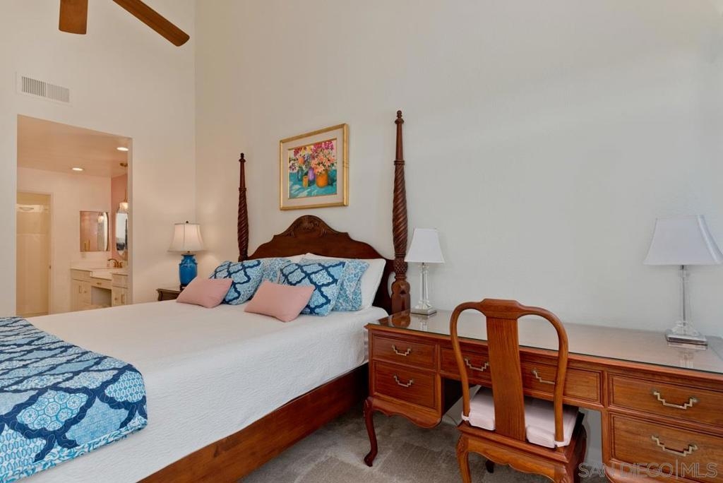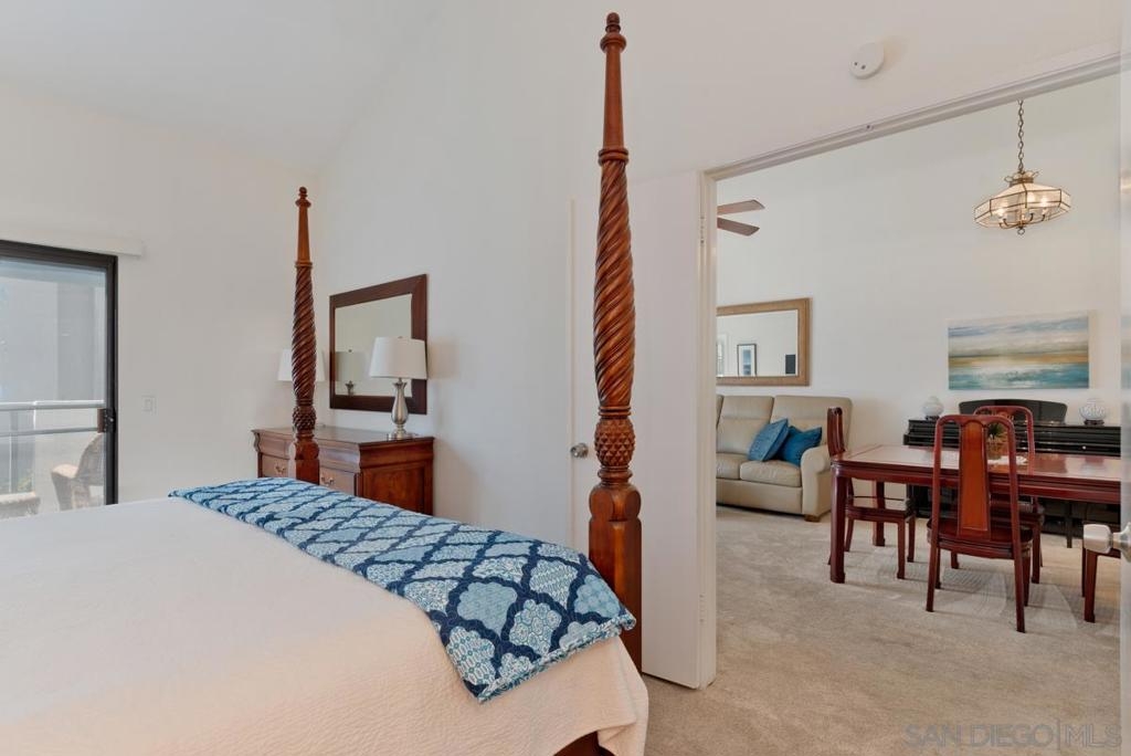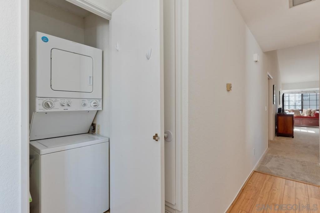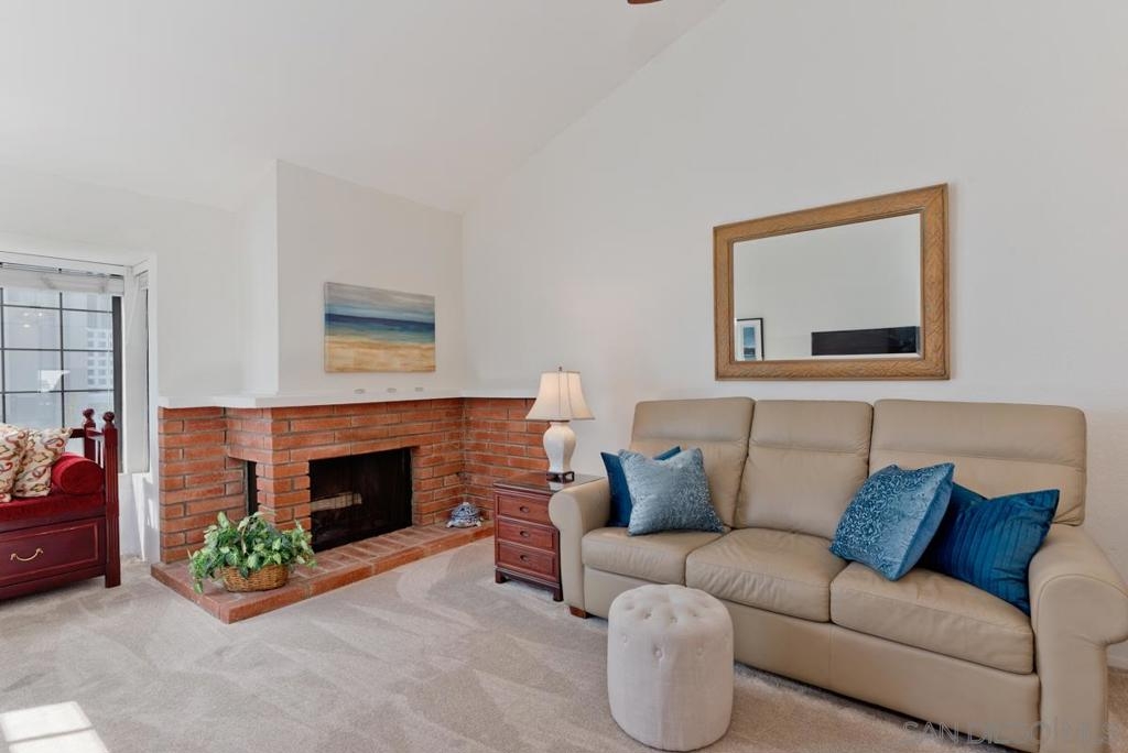 Top floor townhome style condo in fantastic UTC location. Spacious floorplan with updates & upgrades. Newer neutral paint and carpet, soaring vaulted ceilings, fireplace in living room, ceiling fans in every room. Large Master Suite with beautifully remodeled bathroom. New dual vanities, mirrors & light. Extra large closet. Private balcony. Super sized patio off BR2/front entry. In unit laundry. Private garage w overhead storage. Complex offers swimming pool, spa, & tennis courts. Perfect Golden Triangle location near to shopping, dining, UCSD, VA, and 5 & 52 freeways. Equipment: Garage Door Opener, Range/Oven Other Fees: 0 Sewer: Sewer Connected Topography: LL
