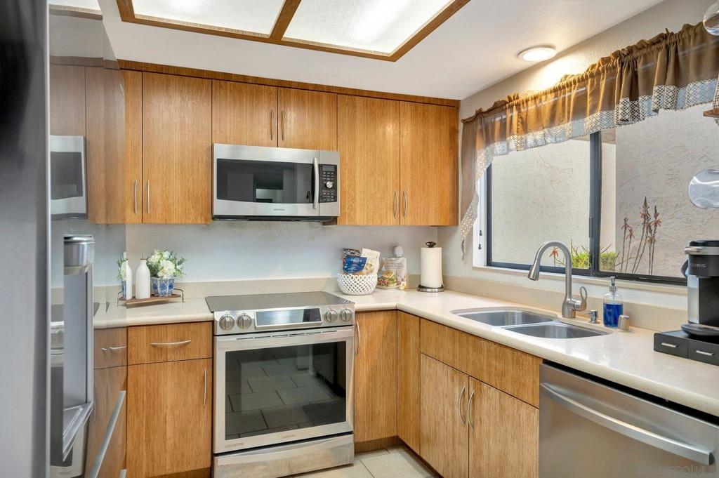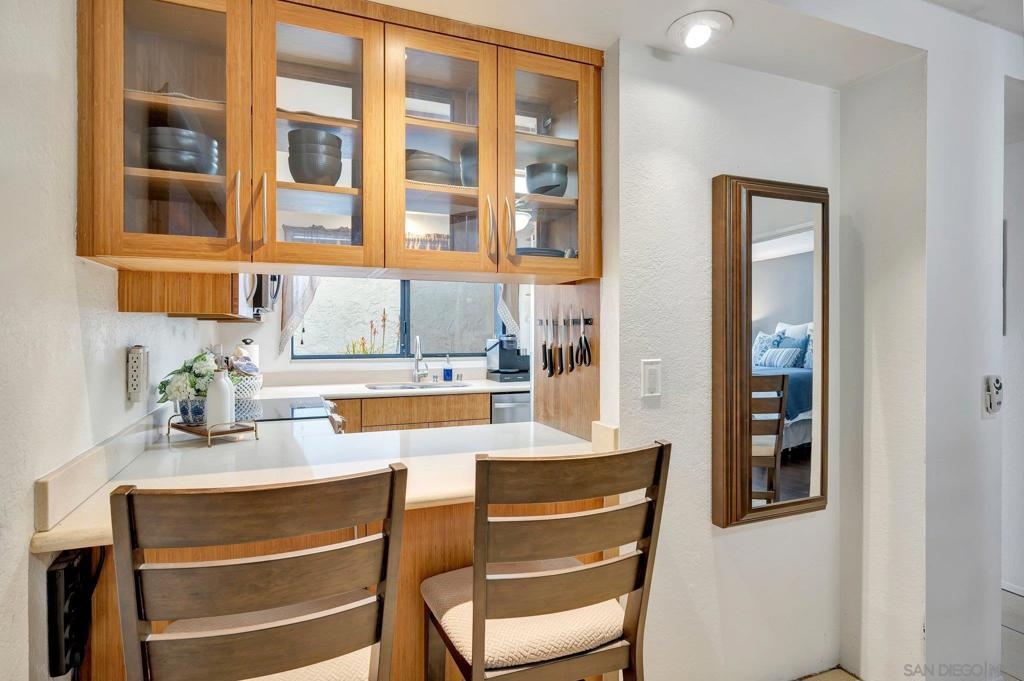 Convenience is priority when you choose to live in the center of everything!!! This fantastic 1 bedroom condo is ideal for the on the go lifestyle while still being able to embody the coziness of a home off the beaten path. You are minutes from UCSD Jacobs Center and less than 3 blocks from UTC mall and the new MTS Trolley transfer station. This home features over 800sqft of perfectly laid out living space allowing for you to maximize every part of your home design. The large living room features a gorgeous brick fireplace, large bay window, and ample space for a designated dining area. The Kitchen is equipped with matching Samsung appliances that are every culinary experts dream. The induction oven has the dual oven feature while the refrigerator with flexzone drawer allows for chilling your drinks to the perfect temperature. Indoor laundry makes this chore a breeze and the giant dual closets will give you plenty of storage to fill with all your clothes, coats, shoes and more. The massive primary bedroom provides the luxury of hosting a Cal King size bed or multiple piece bedroom set with ease. Finally, nothing will be better than pulling into park in your 1 car garage after a long day of work, school, or play and walking straight into your home and finding yourself engulfed in its warm embrace. This home is full of possibility and will be perfect for you for years to come!!!