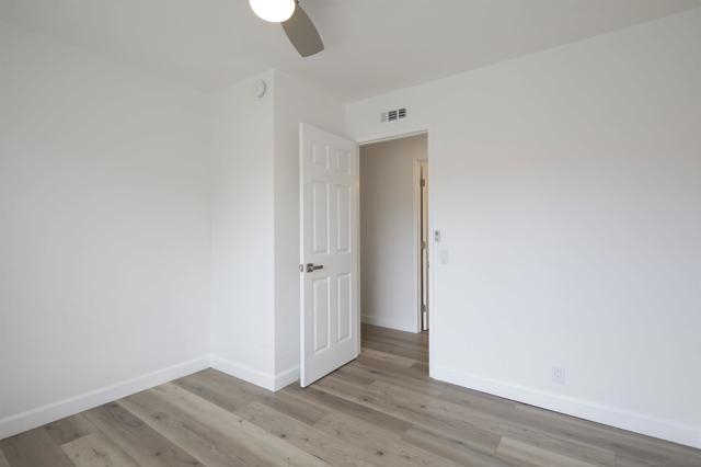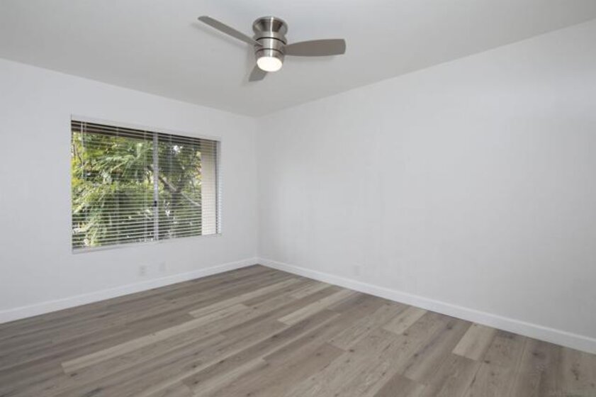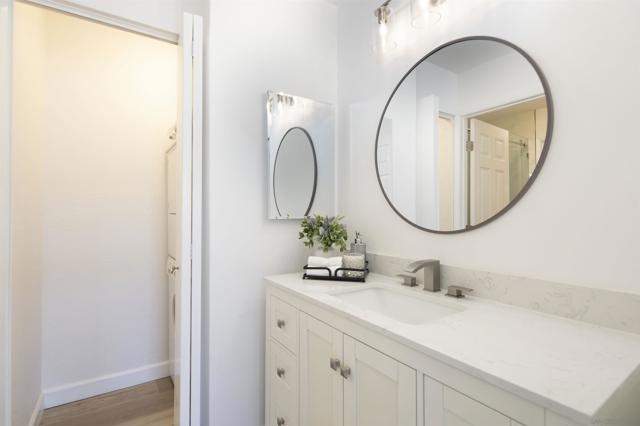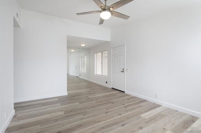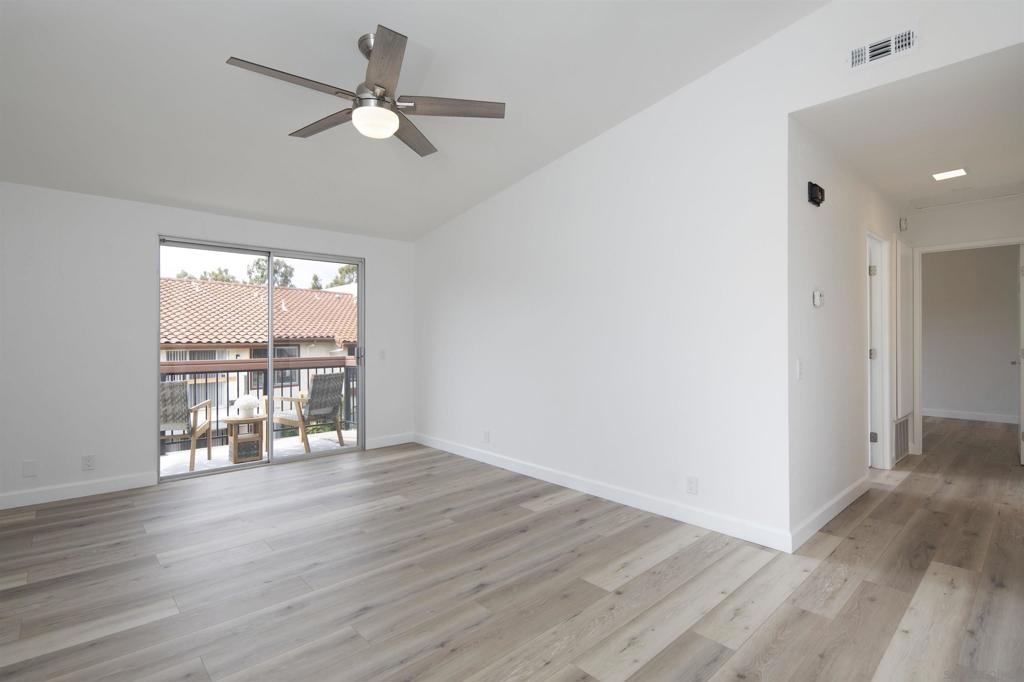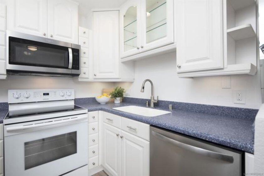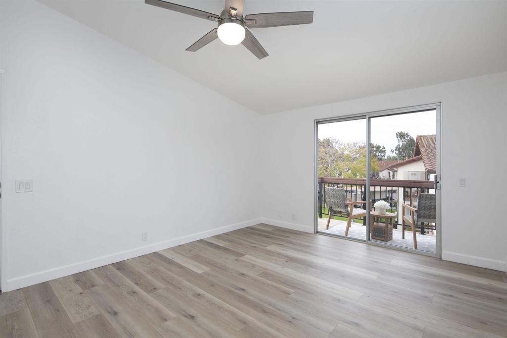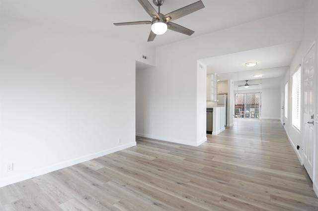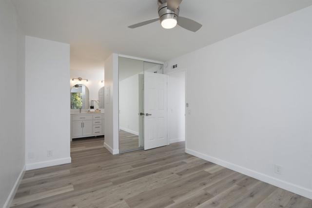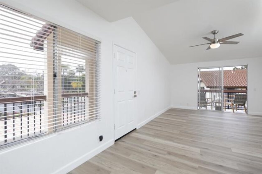 Don't miss this completely remodeled bright and sunny upstairs end unit in the very quiet La Jolla Colony La Paz community. Easy freeway access and minutes to the beach, this unit will sell fast. This stunning 2 bedroom 1 bath condo has undergone a complete transformation! No more popcorn ceilings! The condo is adorned with new flooring throughout, fresh white paint, new doors and hardware, added fans and lighting, new appliances in the kitchen, and new baseboards. The bathroom was completely upgraded with walk-in shower with elegant tile work and two new vanities.The bathroom has separate vanity area for each bedroom for added privacy. This condo offers a stylish and comfortable living environment. The balcony provides a serene setting for relaxing and the second story provides much wanted privacy. Close proximity to the community pool and spa. There are also two parking spaces under a carport with storage. This condo is move in ready!