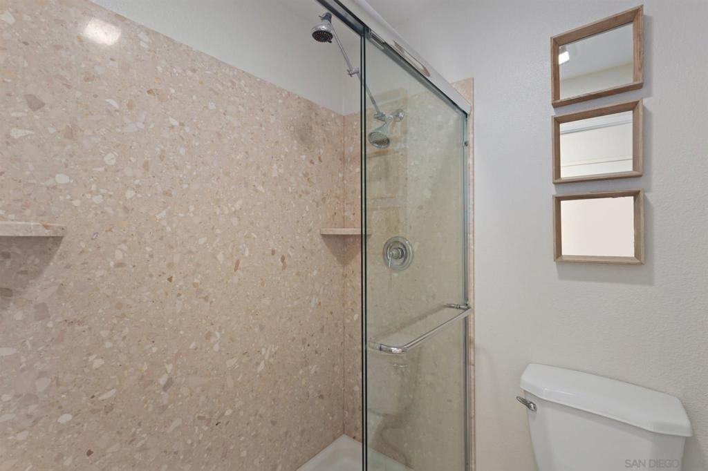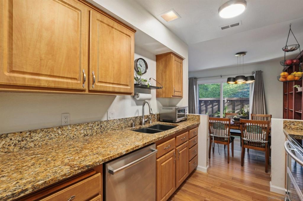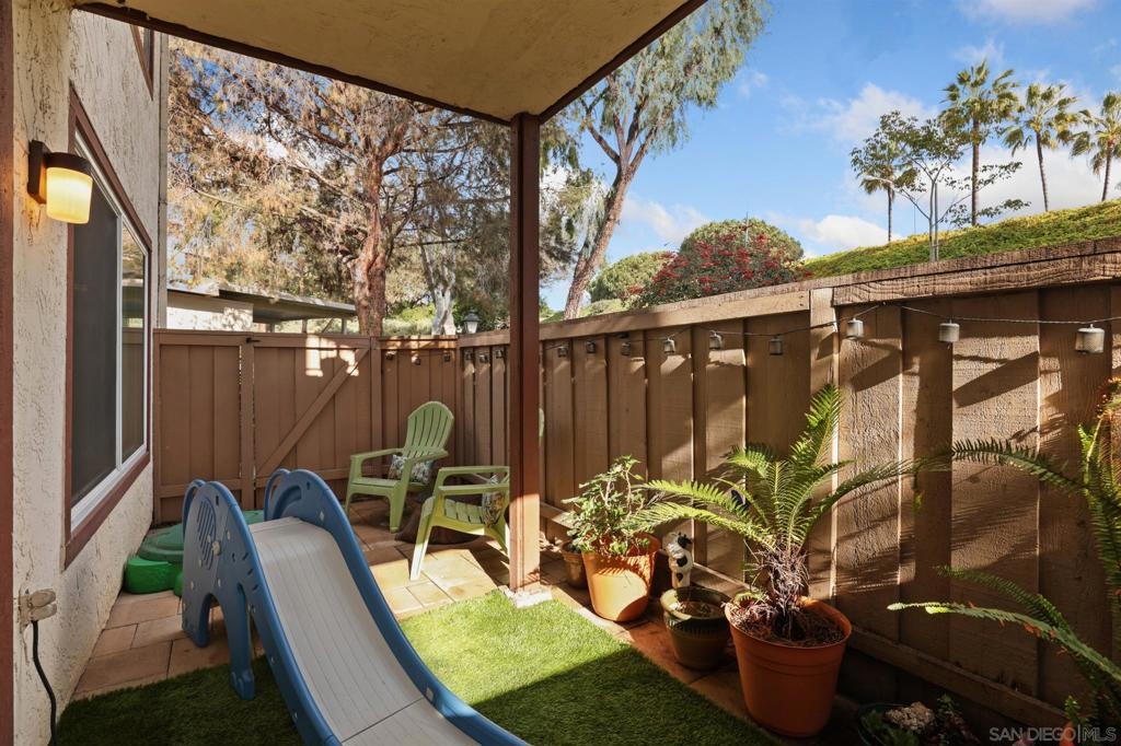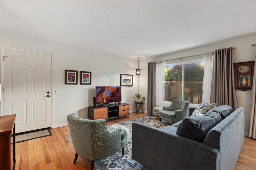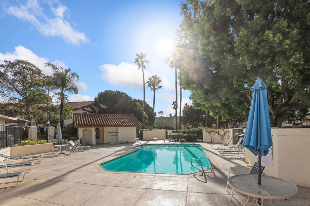 Location! Location! Location! Well maintained single-story ground level end unit located within the highly desirable community of La Paz in the La Jolla Colony. Situated in a quiet, park like location this amazing property features updates throughout including neutral paint and trim, 4” baseboards, in unit Bosch stacked washer and dryer, a newer hot water heater, and durable engineered Hickory hardwood flooring throughout. Large dual pane windows bask the home in an abundance of natural light. A beautifully appointed kitchen boasting granite countertops, stainless steel appliances including a hot water dispenser, upgraded lighting with LED dimmers, and warm honey-hued cabinetry. A spacious primary suite offering a walk-in closet and its own en-suite bathroom with new shower doors and surround. Outdoor living extends to a private patio perfect for taking in the gentle ocean breeze. Great community amenities include a sparkling pool and spa. Conveniently located, just minutes away from the ocean, Rose Canyon, shopping, dining, parks, great schools, Interstate 5, plus so much more. Don’t let this opportunity pass you by! Complex Features: ,, Equipment: Dryer, Washer Other Fees: 18 Sewer: Sewer Connected Topography: LL
