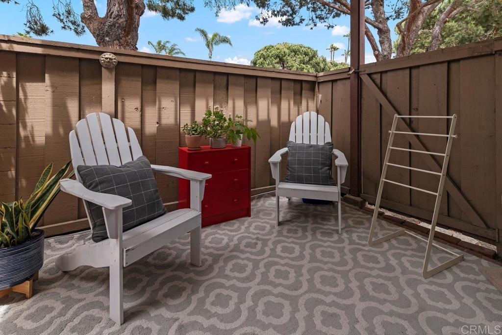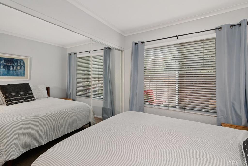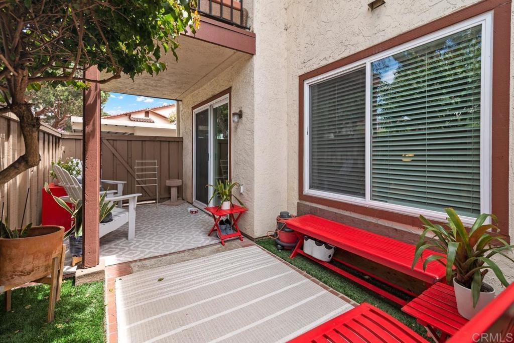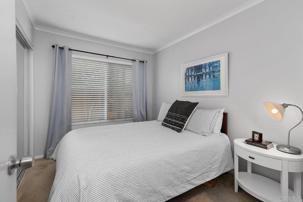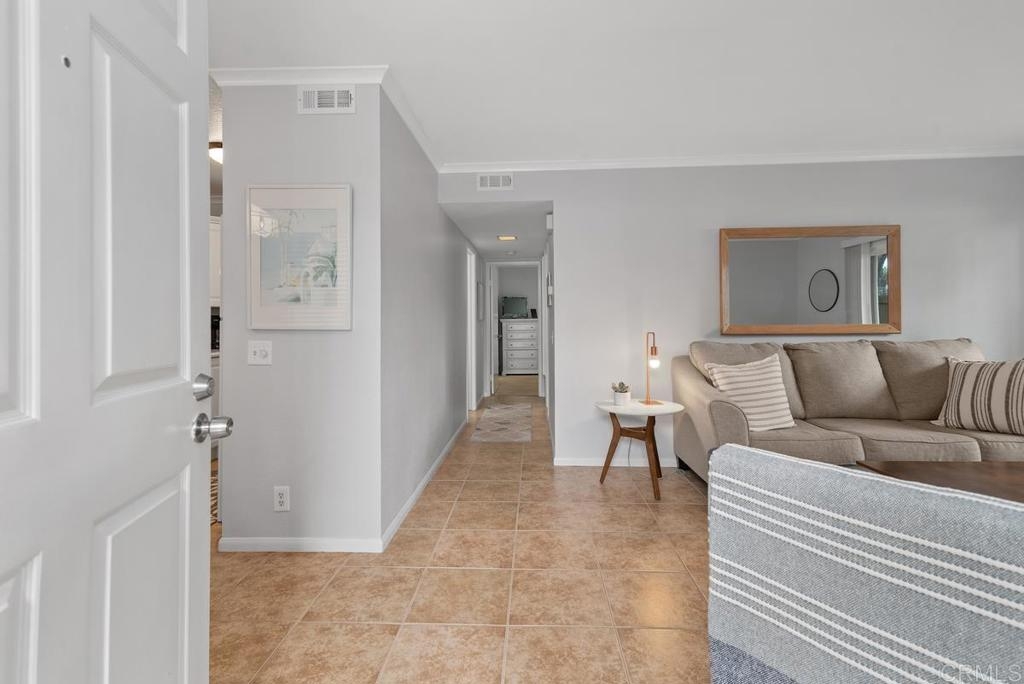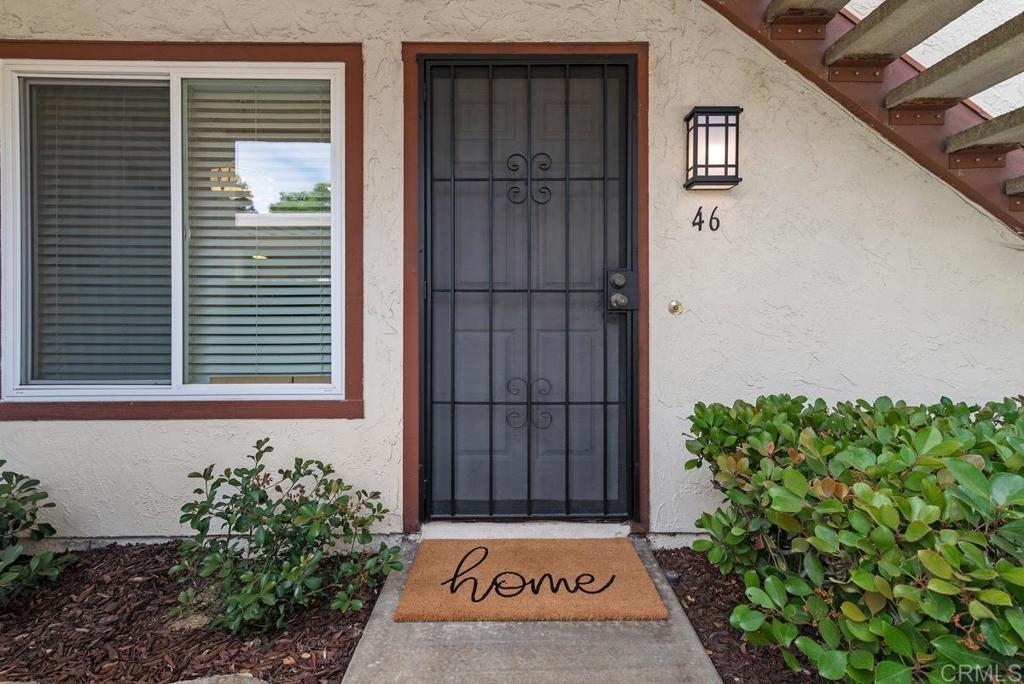 Introducing 4050 Porte La Paz #46, a charming first-floor unit located in the tranquil La Jolla Colony La Paz community. This lovely 2-bedroom, 1-bath condo offers comfortable living with a spacious primary bedroom featuring its own vanity and sink. With approximately 806 square feet of living space, this home provides a cozy and inviting atmosphere. Step inside and discover the recent upgrades. Enjoy the benefits of new double-pane windows and slider, providing both aesthetic appeal and energy efficiency. The interior showcases crown molding, baseboards, and fresh paint, adding a touch of elegance to the living spaces. Other notable upgrades include a newer water heater, tub, tiles, and vanity, as well as a recent kitchen faucet and bedroom ceiling fan. The kitchen is adorned with a stylish Corian countertop and kitchen cabinets, offering a sleek and modern look. Outside, you'll find a private front patio where you can savor your morning coffee or relax in the fresh air. The unit also includes two dedicated parking spots with additional storage for your convenience. Nestled in a serene part of the community surrounded by lush greenery, this home provides a peaceful retreat. The La Jolla Colony La Paz community offers great amenities, including two pools, spas, and ample guest parking. Situated with easy access to major highways such as the 5, 805, 52, and the trolley, this location provides convenient transportation options. Within minutes, you can reach the beach, UCSD, theaters, restaurants, clubs, Westfield UTC mall, La Jolla Cove, and Downtown San Diego. Nature enthusiasts will appreciate the proximity to Rose Canyon Park, offering numerous hiking and biking trails, as well as the beautiful private La Jolla Colony Park with its outdoor fitness trail. Additionally, you'll find various shops and restaurants within walking distance, including Whole Foods, Trader Joe's, Ralphs, Vons, and Core Power Yoga. Don't miss the opportunity to own this beautiful condo in the highly desirable La Jolla Colony La Paz community. Schedule a viewing today and experience the convenience, tranquility, and vibrant lifestyle this home has to offer.
