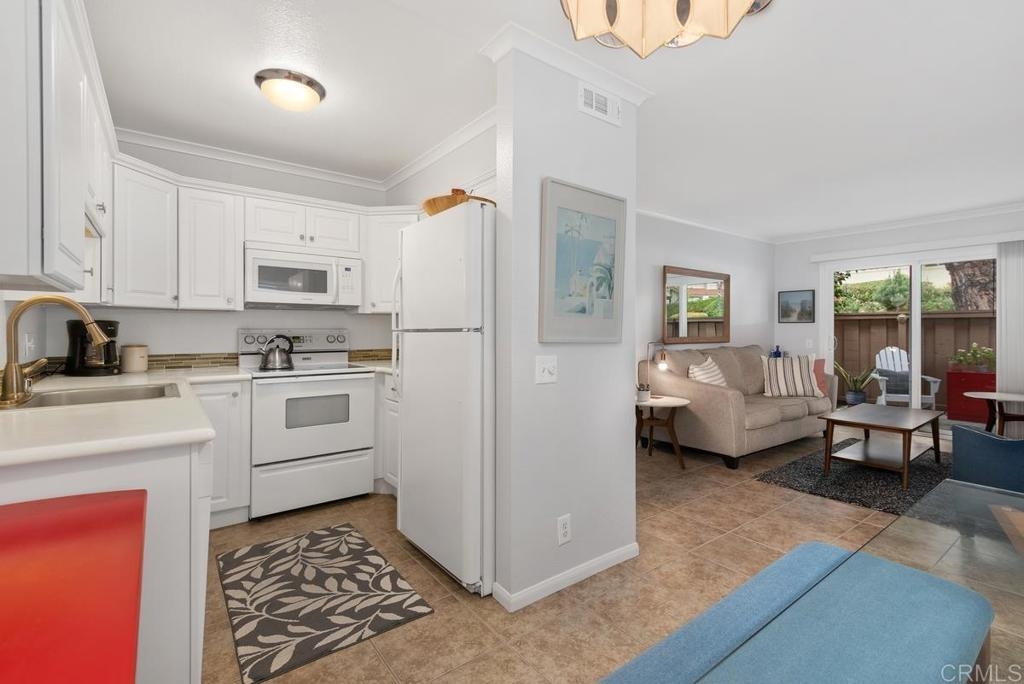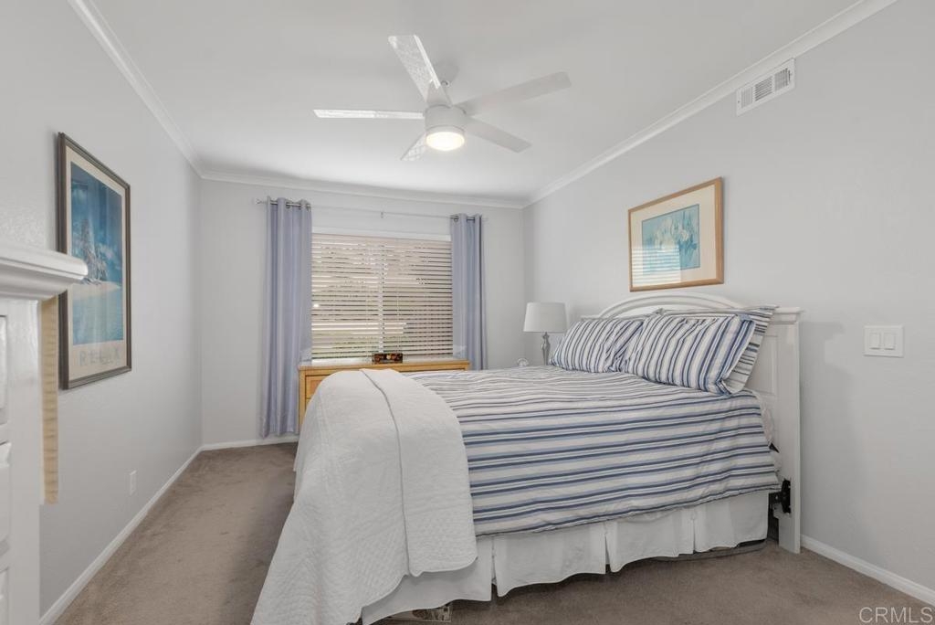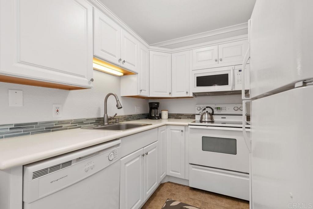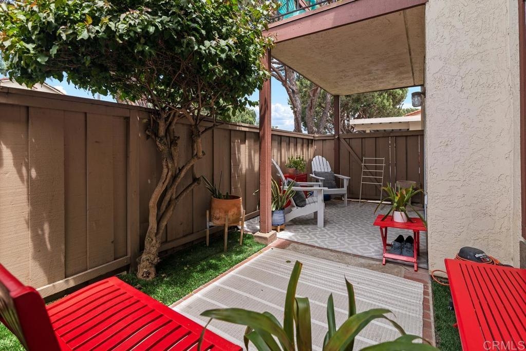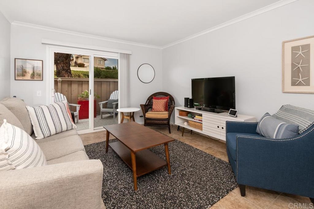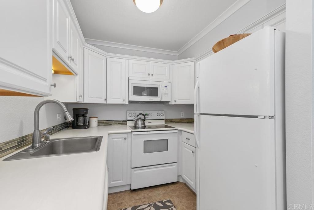 Introducing 4050 Porte La Paz #46, a charming first-floor unit located in the tranquil La Jolla Colony La Paz community. This lovely 2-bedroom, 1-bath condo offers comfortable living with a spacious primary bedroom featuring its own vanity and sink. With approximately 806 square feet of living space, this home provides a cozy and inviting atmosphere. Step inside and discover the recent upgrades. Enjoy the benefits of new double-pane windows and slider, providing both aesthetic appeal and energy efficiency. The interior showcases crown molding, baseboards, and fresh paint, adding a touch of elegance to the living spaces. Other notable upgrades include a newer water heater, tub, tiles, and vanity, as well as a recent kitchen faucet and bedroom ceiling fan. The kitchen is adorned with a stylish Corian countertop and kitchen cabinets, offering a sleek and modern look. Outside, you'll find a private front patio where you can savor your morning coffee or relax in the fresh air. The unit also includes two dedicated parking spots with additional storage for your convenience. Nestled in a serene part of the community surrounded by lush greenery, this home provides a peaceful retreat. The La Jolla Colony La Paz community offers great amenities, including two pools, spas, and ample guest parking. Situated with easy access to major highways such as the 5, 805, 52, and the trolley, this location provides convenient transportation options. Within minutes, you can reach the beach, UCSD, theaters, restaurants, clubs, Westfield UTC mall, La Jolla Cove, and Downtown San Diego. Nature enthusiasts will appreciate the proximity to Rose Canyon Park, offering numerous hiking and biking trails, as well as the beautiful private La Jolla Colony Park with its outdoor fitness trail. Additionally, you'll find various shops and restaurants within walking distance, including Whole Foods, Trader Joe's, Ralphs, Vons, and Core Power Yoga. Don't miss the opportunity to own this beautiful condo in the highly desirable La Jolla Colony La Paz community. Schedule a viewing today and experience the convenience, tranquility, and vibrant lifestyle this home has to offer.