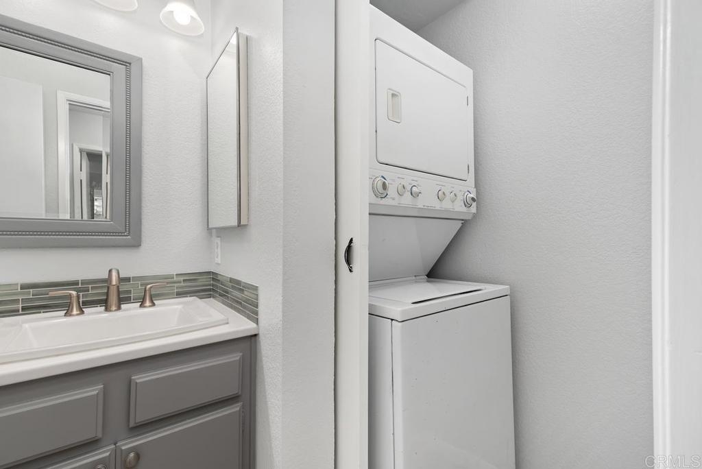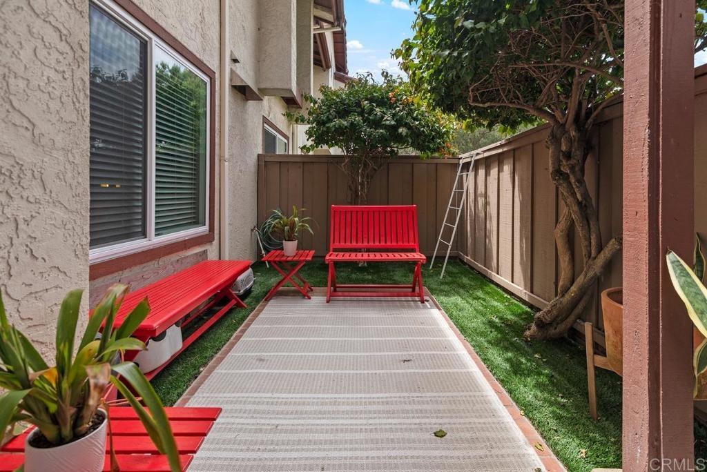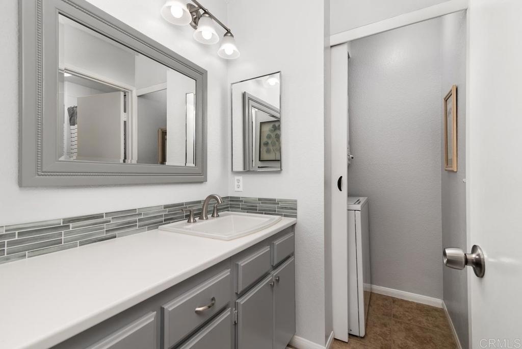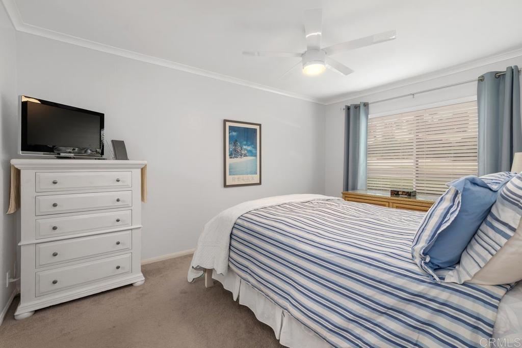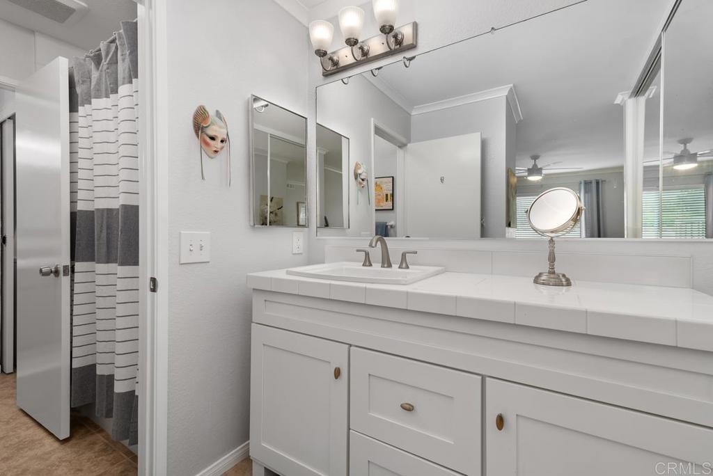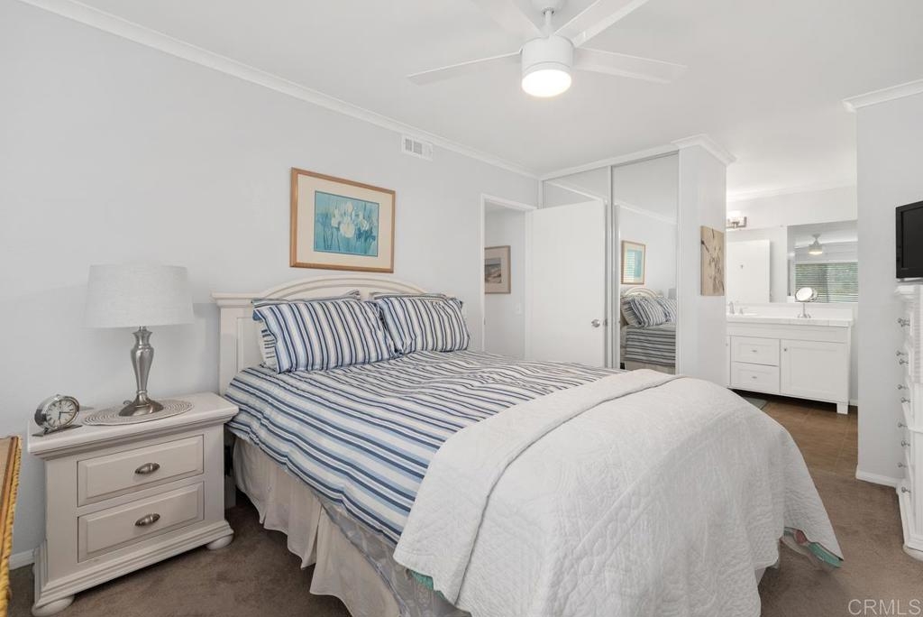 Introducing 4050 Porte La Paz #46, a charming first-floor unit located in the tranquil La Jolla Colony La Paz community. This lovely 2-bedroom, 1-bath condo offers comfortable living with a spacious primary bedroom featuring its own vanity and sink. With approximately 806 square feet of living space, this home provides a cozy and inviting atmosphere. Step inside and discover the recent upgrades. Enjoy the benefits of new double-pane windows and slider, providing both aesthetic appeal and energy efficiency. The interior showcases crown molding, baseboards, and fresh paint, adding a touch of elegance to the living spaces. Other notable upgrades include a newer water heater, tub, tiles, and vanity, as well as a recent kitchen faucet and bedroom ceiling fan. The kitchen is adorned with a stylish Corian countertop and kitchen cabinets, offering a sleek and modern look. Outside, you'll find a private front patio where you can savor your morning coffee or relax in the fresh air. The unit also includes two dedicated parking spots with additional storage for your convenience. Nestled in a serene part of the community surrounded by lush greenery, this home provides a peaceful retreat. The La Jolla Colony La Paz community offers great amenities, including two pools, spas, and ample guest parking. Situated with easy access to major highways such as the 5, 805, 52, and the trolley, this location provides convenient transportation options. Within minutes, you can reach the beach, UCSD, theaters, restaurants, clubs, Westfield UTC mall, La Jolla Cove, and Downtown San Diego. Nature enthusiasts will appreciate the proximity to Rose Canyon Park, offering numerous hiking and biking trails, as well as the beautiful private La Jolla Colony Park with its outdoor fitness trail. Additionally, you'll find various shops and restaurants within walking distance, including Whole Foods, Trader Joe's, Ralphs, Vons, and Core Power Yoga. Don't miss the opportunity to own this beautiful condo in the highly desirable La Jolla Colony La Paz community. Schedule a viewing today and experience the convenience, tranquility, and vibrant lifestyle this home has to offer.
