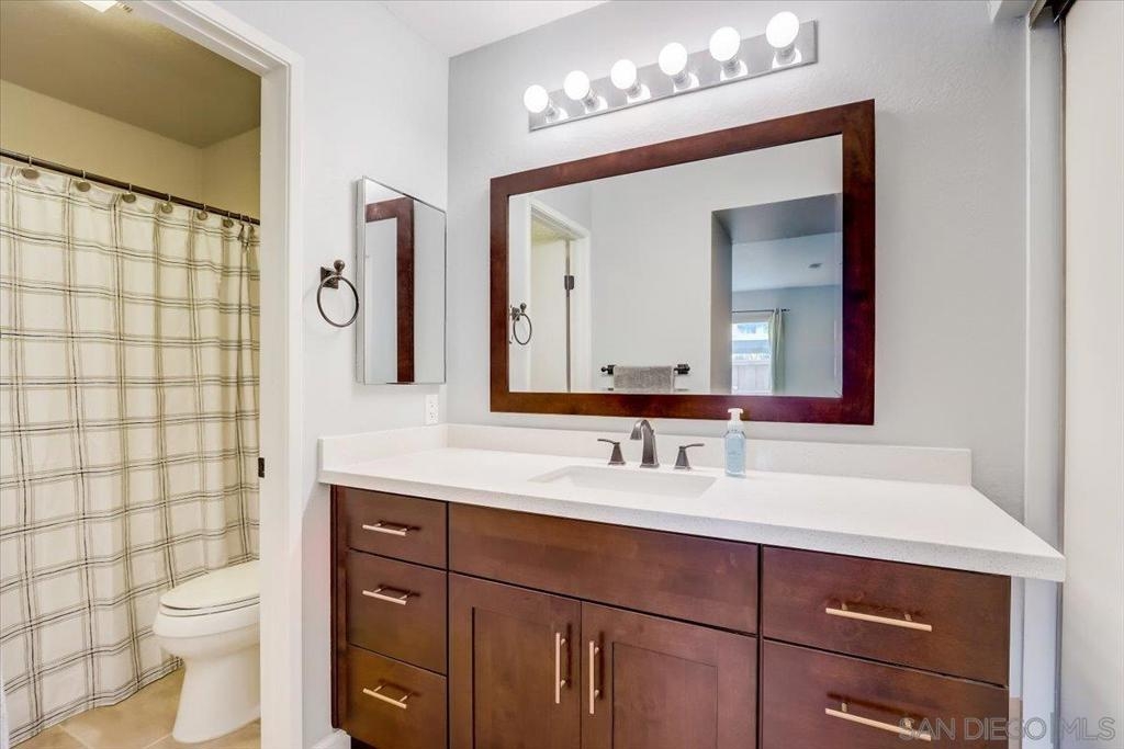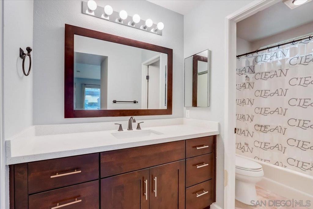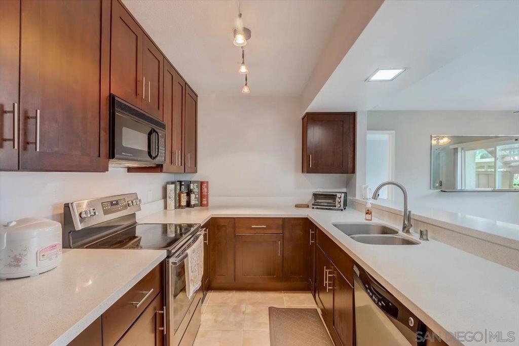 Come live your best life in this upgraded, lower unit within the La Paz community in La Jolla Colony. As you enter you will gaze upon a light and bright open floor plan, bathed in natural light. Open the windows and patio door wide to let the cool breezes flow through and create the ultimate indoor outdoor living atmosphere. Enjoy the prime location within the community, only feet away from the pool with two side-by-side assigned, carport parking spaces. The kitchen provides plenty of cabinet space, sleek white countertops, stainless steel appliances, plus an eat-at counter that comfortably seats 4. Privacy is maximized by the split bedroom floor plan, placing each bedroom at each end of the unit with the living area in between. Each bedroom has its own bathroom and a good amount of closet space to keep you organized. In those rare instances, when the weather needs a little assistance, central AC and heat will do the trick. La Paz offers a sparkling pool and meticulously manicured landscaping, creating a serene, inviting environment. Rose Canyon Open Space is across the street, providing miles of trails to explore. I-5 is just down the street, making commuting a breeze. Don’t let this opportunity pass you by!