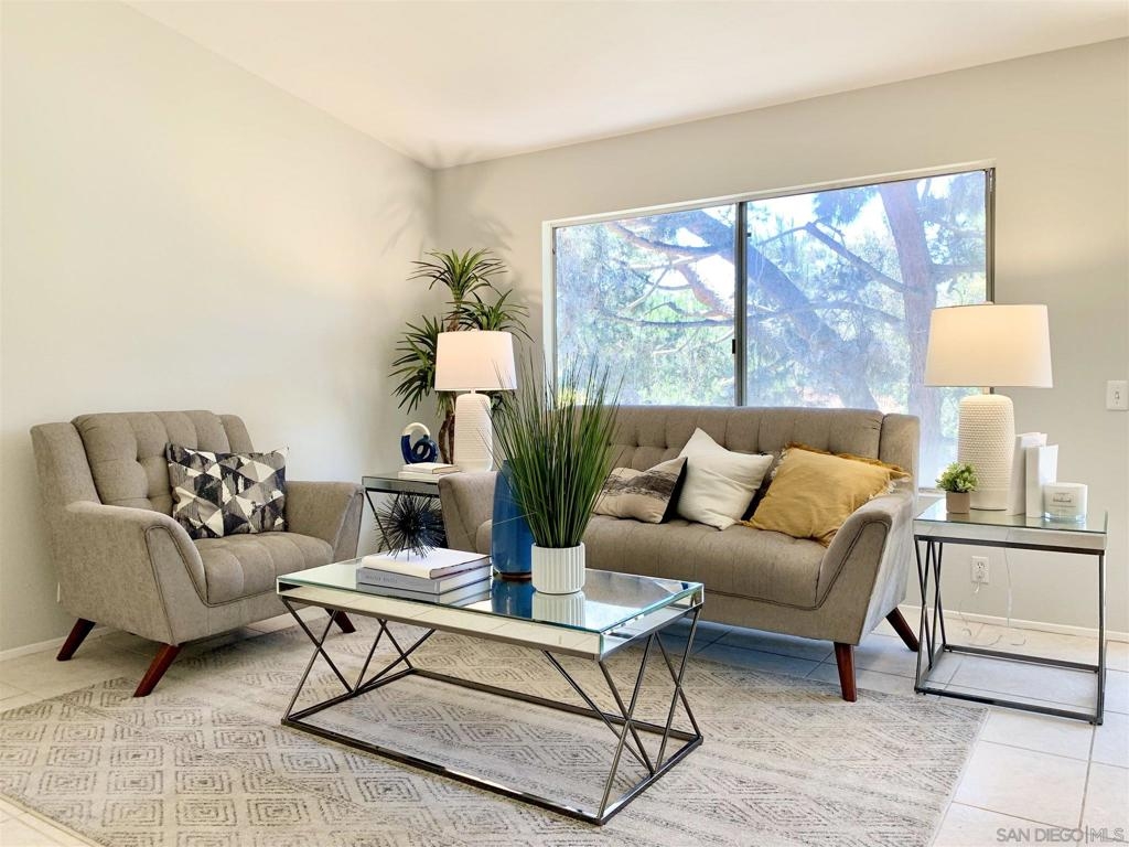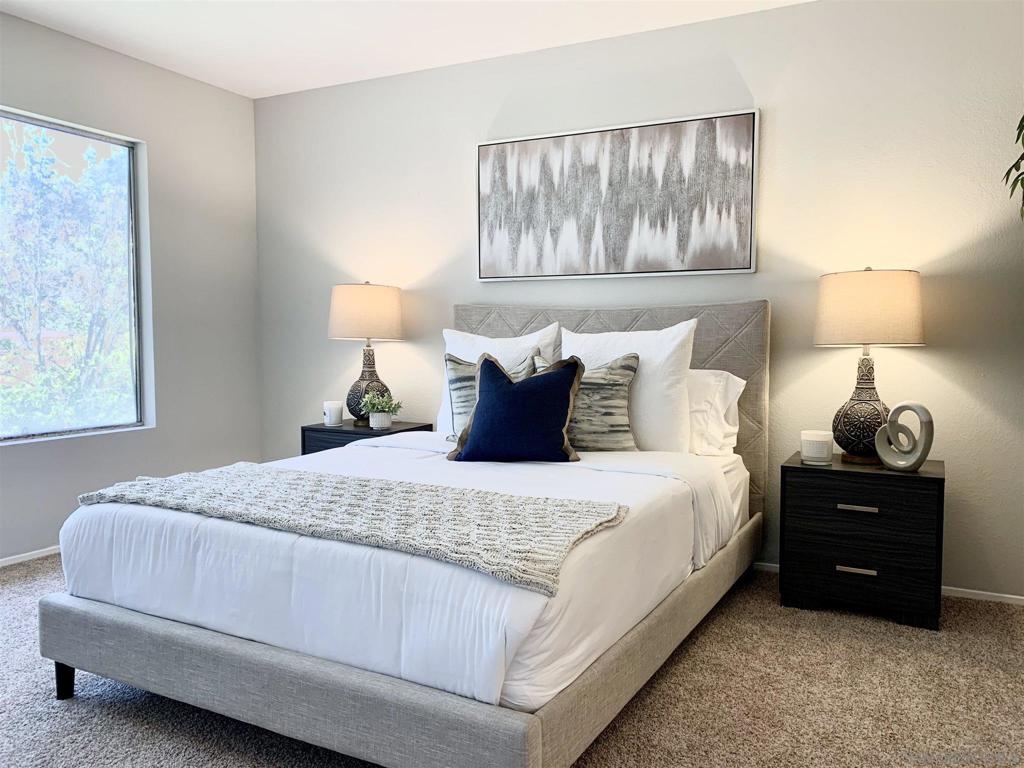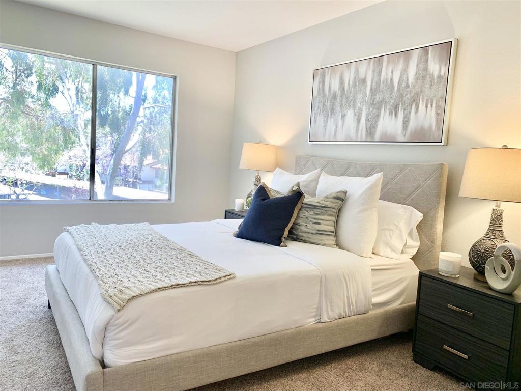 Welcome home! Turn-key 2 bed, 2 full bath second story corner unit features vaulted ceilings, new carpet and paint, two assigned parking spaces and in-unit laundry! Primary bedroom features sizable walk-in closet and deck off dining room provides for tranquil outdoor living space. Just east of 5 fwy and close to Westfield UTC, La Jolla Village, UCSD, beaches, dining and shopping! Equipment: Range/Oven, Washer Sewer: Sewer Connected Topography: LL