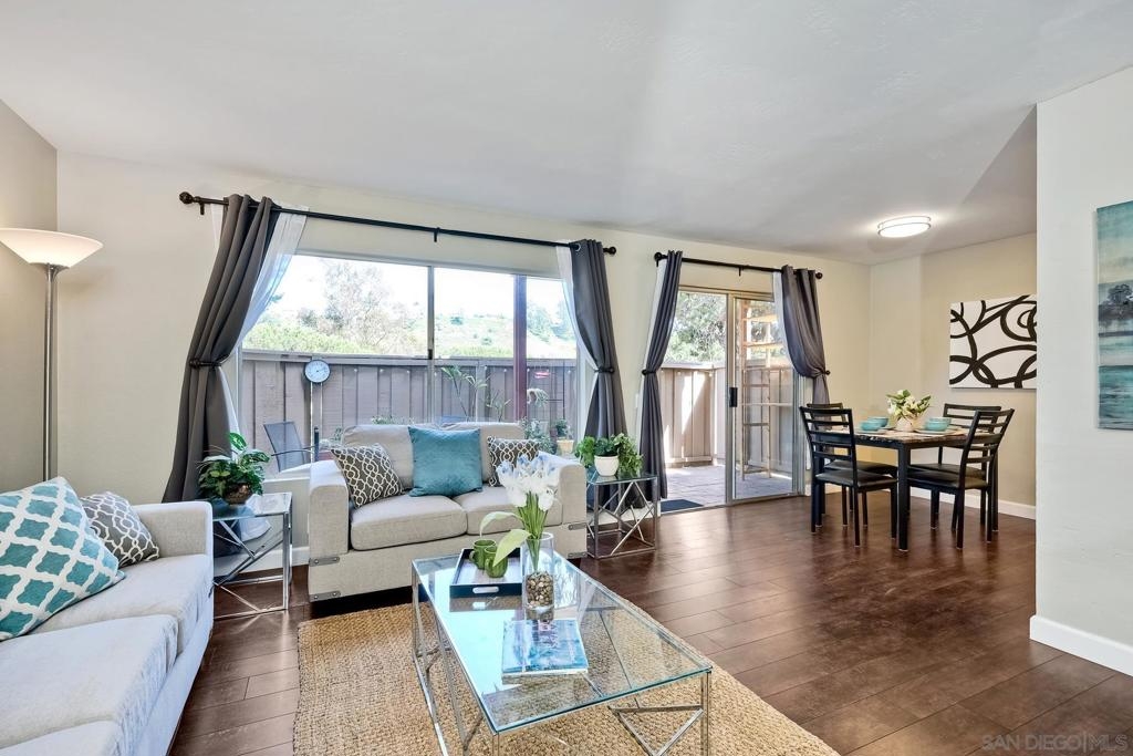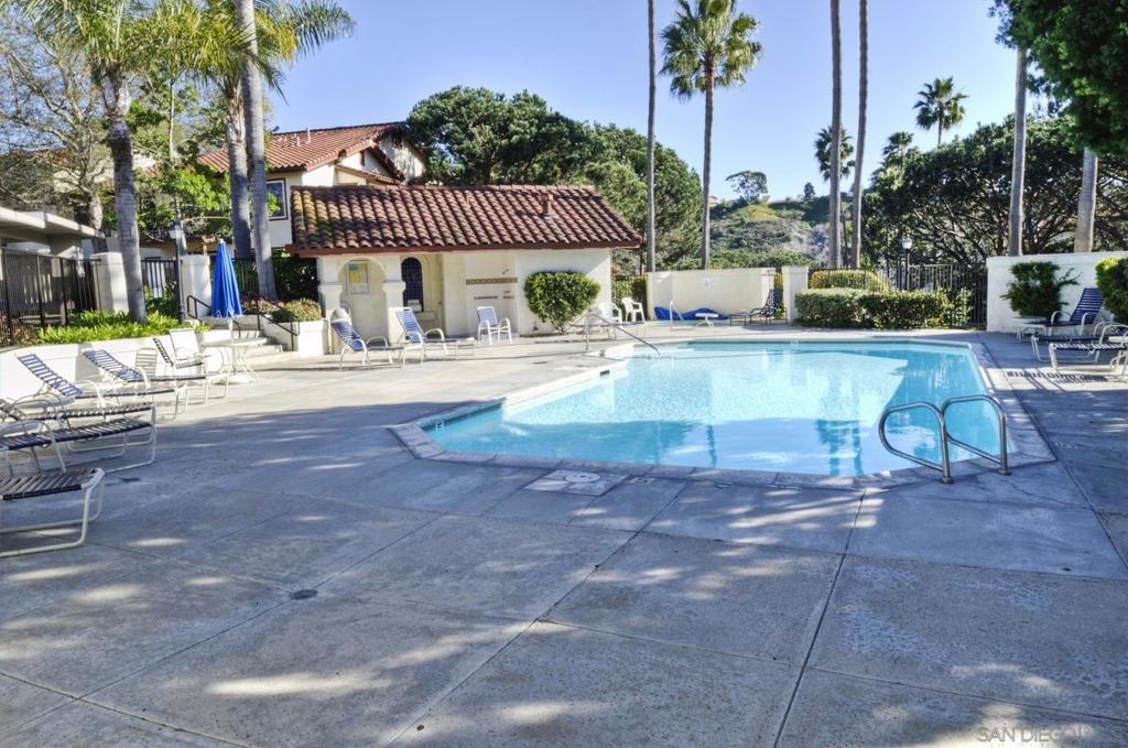 Wonderfully updated 2 Bedroom, 2 Bathroom La Paz condo w/ great hillside views located just minutes from UCSD and La Jolla Colony shopping. Open floor plan features hardwood laminate flooring, upgraded baseboards, updated kitchen, updated hallway bathroom, in-unit laundry room, newer furnace, a large master bedroom w/ walk-in closet, and large 2nd bedroom w/ custom shelving in closet. Nice patio area w/ views of hillside to the east. Close to community pool, walking trails, trolley, and easy freeway access. Come see... Wonderfully updated 2 Bedroom, 2 Bathroom La Paz condo w/ great hillside views located just minutes from UCSD and La Jolla Colony shopping. The open layout features gorgeous hardwood laminate flooring, upgraded baseboards, custom neutral paint throughout, an updated furnace/thermostat, and in-unit laundry room. The updated kitchen includes newer maple wood cabinetry w/ custom pulls and custom pull out drawers, solid surface counters w/ decorative back splash, recessed lighting, and stainless steel appliances. Both bedrooms feature large closets with custom shelving. The 2nd bathroom has been updated w/ new vanity, mirror, medicine cabinet and light fixture. The unit comes w/ two assigned, covered parking spots and is just a short walk to the community pool/spa area. Great location provides easy access to Rose Trail, the open greenbelt park up the street, the trolley, and I-5, 52 and I-805 freeways. Don’t miss this one! Equipment: Dryer, Range/Oven, Washer Sewer: Sewer Connected Topography: LL