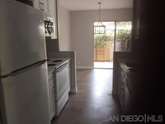 A "must see" La Paz "Estella" model unit in quiet, sunny, end unit ground floor location with no other unit in front door. 2 parking spaces. It is spacious and has private patio with Mexican paver tiles and is great for BBQ or gardening hobbies. Move in ready! The interior is newly updated, Brand new kitchen cabinets and counter top. Both baths has been renovated completely. New flooring. Easy access to UCSD,UTC, I-5, I-805, and beaches. New trolley extension running from downtown to UTC targets completion this fall. Equipment: Dryer, Washer Sewer: Sewer Connected Topography: LL