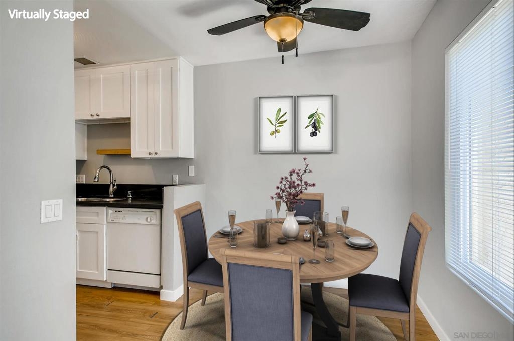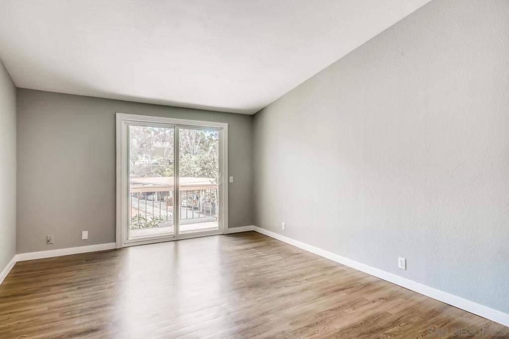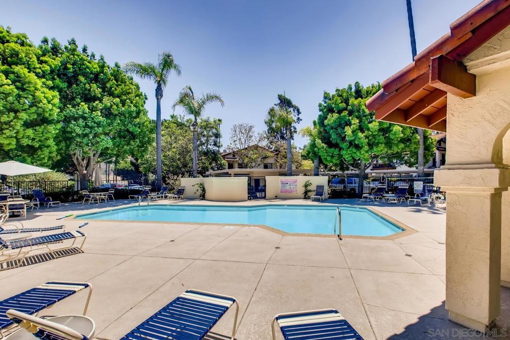 Well maintained corner unit on upper floor. A vaulted ceiling gives a spacious feel to the living room. The primary bedroom has a long vanity with a sink and a separate door to the bathroom. Homeowners replaced windows, sliding door, floors, baseboards, toilet, kitchen and bathroom countertops, faucets, kitchen sink, cabinets, microwave and refrigerator four years ago. Serene landscaping features mature trees, shrubs and flowers. Two community pools with hot tubs. Easy access to I-5, Hwy 52 and La Jolla Beaches. A few short minutes from UCSD, Hospitals, University Town Center shopping and restaurants. Equipment: Dryer, Washer Sewer: Public Sewer Topography: LL