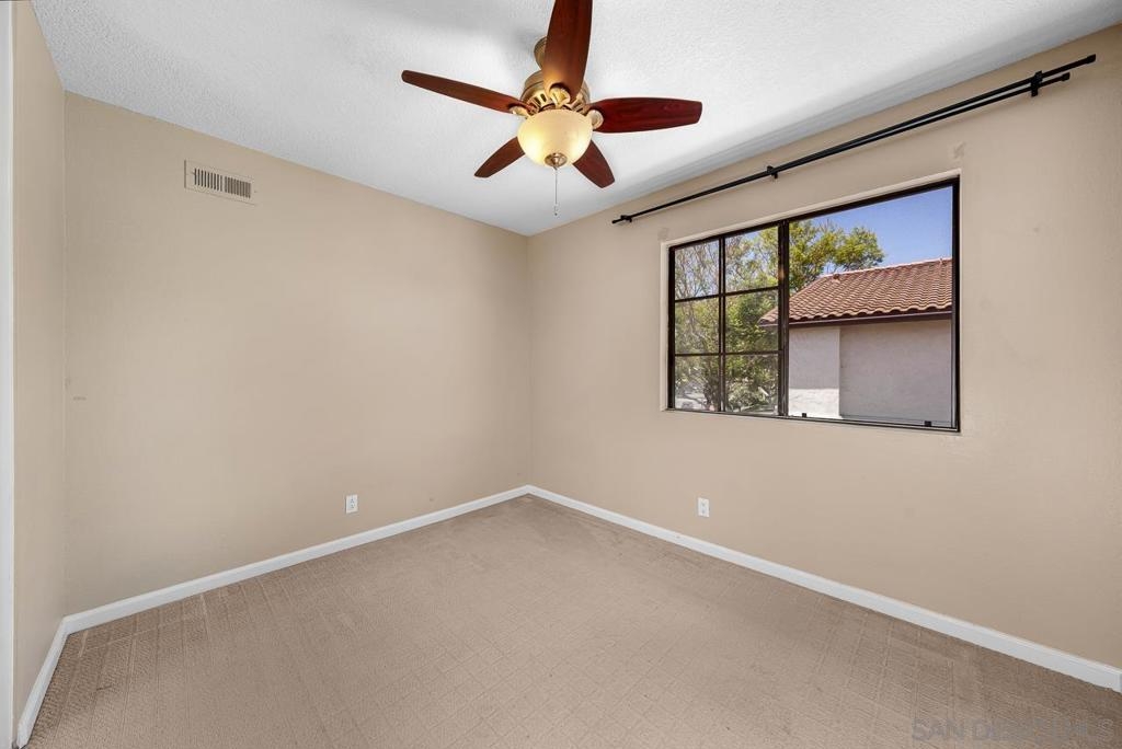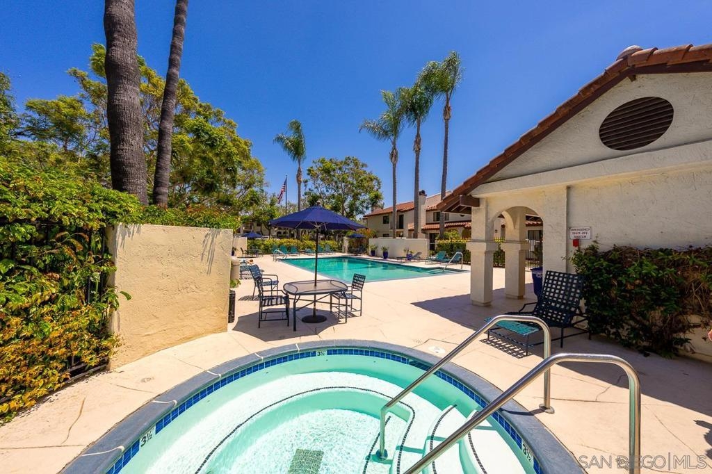 Welcome to this spacious 3-bedroom, 2.5-bath townhome in the highly desirable Las Palmas community of La Jolla Colony. This rarely available end unit offers 1,394 sq ft of thoughtfully designed living space with vaulted ceilings, and an open-airy layout. Step into the expansive living room featuring warm wood-style flooring, plantation shutters, a cozy tiled fireplace, and seamless flow into the dining area. Upstairs, the generously sized primary suite boasts double closets, and a private en-suite bath. Two additional bedrooms and a full bath complete the upper level, offering flexible space for family, guests, or a home office. Enjoy the privacy of your own patio, a 2-car attached garage, central A/C, and in-unit laundry. The lushly landscaped La Jolla Colony neighborhood offers scenic walking trails, community pools, spas, and peaceful greenbelts. Located minutes from UCSD, UTC shopping and dining, top-rated schools, and La Jolla’s stunning beaches—this home offers the ideal mix of comfort, convenience, and community. Don’t miss this opportunity to own in one of San Diego’s most sought-after neighborhoods!