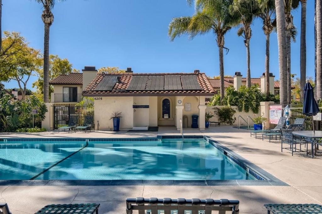 Preferred southerly/westerly light offers gorgeous glowing sunsets, light airy feel, canyon glimpse plus sought-after 2nd story location with vaulted ceilings, tasteful decor and decorator colors, recessed lights, cozy living room fireplace, rich newer luxury vinyl plank flooring, gorgeous light kitchen with stainless steel appliances, private laundry closet, light bathrooms, plantation shutters, walk-in closet, 2 westerly balconies, 2 car garage and vibrant UTC/La Jolla location close to all! Sewer: Sewer Connected Topography: LL