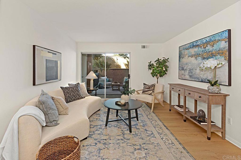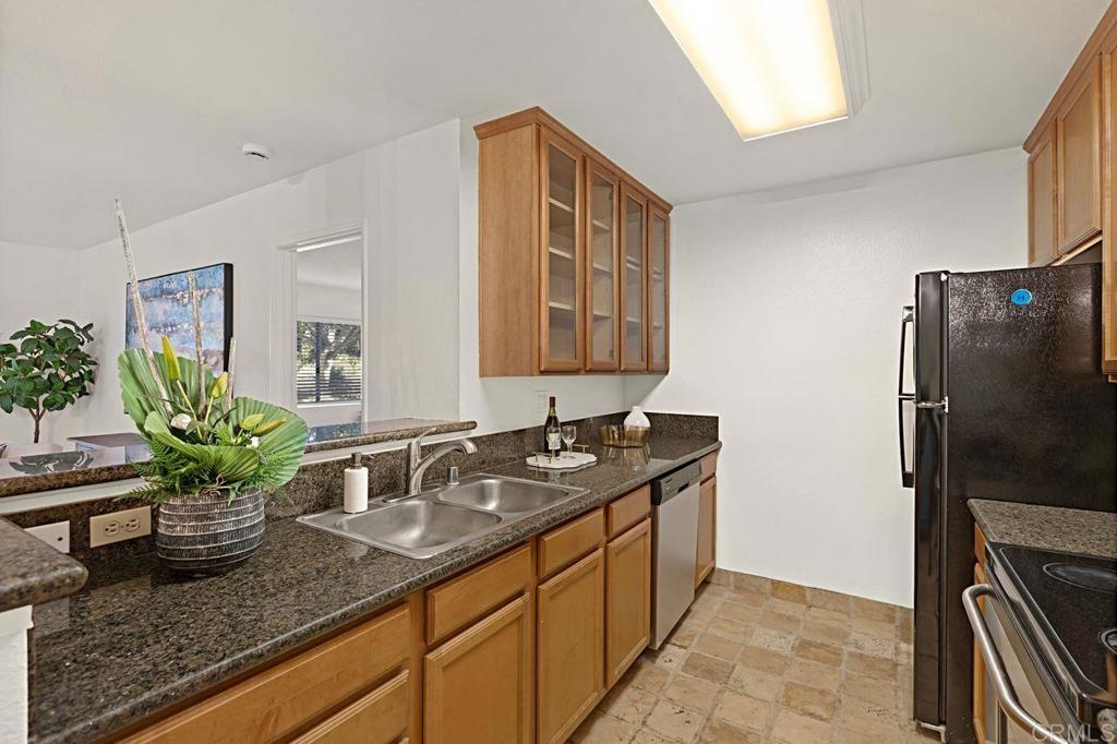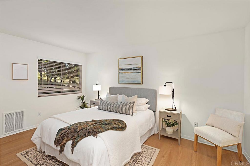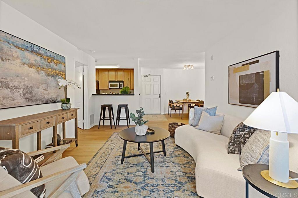 Welcome to this beautifully updated and truly turnkey first-floor 2-bedroom, 2-bathroom condo nestled in the serene and highly sought-after gated community of Lucera. Step inside to discover spacious and open living and dining areas, with brand-new vinyl plank flooring, fresh new paint, and sleek new lighting. The large patio is perfect for unwinding after a long day or entertaining. The two generously sized bedrooms are situated on opposite sides, and both can serve as primary suites. Both bathrooms have been partially remodeled, with new vanities, updated fixtures, and finishes that enhance the overall aesthetic of the home. Kitchen offers stainless steel appliances and ample granite counter space. More convenient features are in-unit laundry, exterior storage closet, and close-by one-car garage parking offers additional storage options. This resort-like community offers fitness facility, pool and spa, BBQ areas, tennis and basketball courts; not to mention being so close to easy freeway access, public transit options, UTC restaurant and shopping options, and proximity to beautiful San Diego beaches. Don't miss your opportunity to make this modern and updated condo yours!