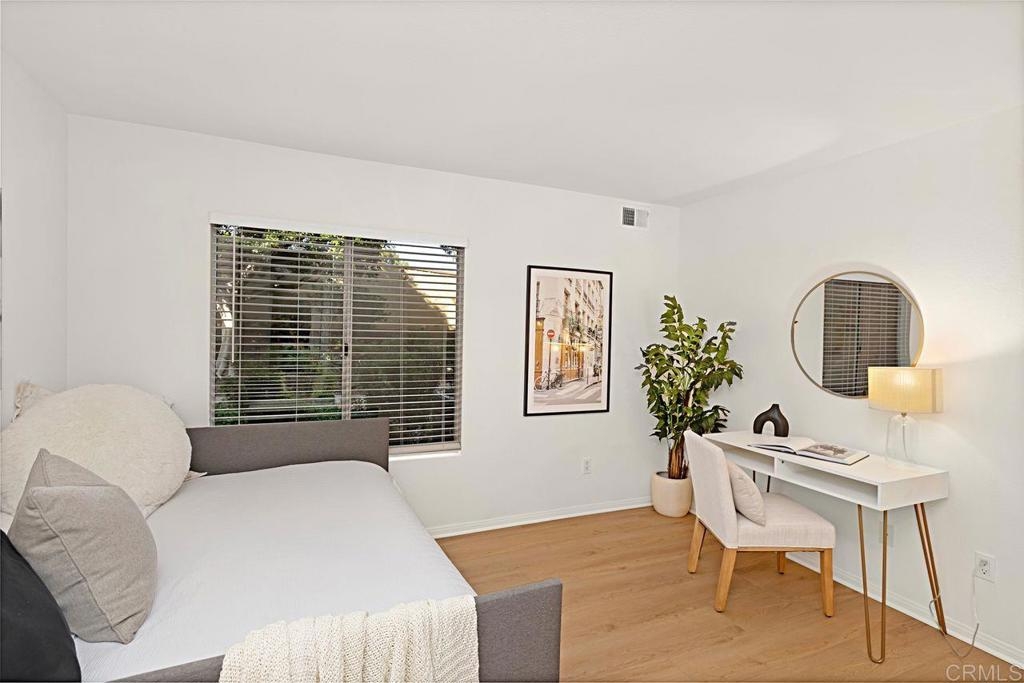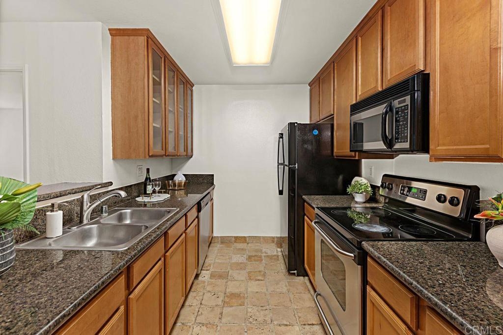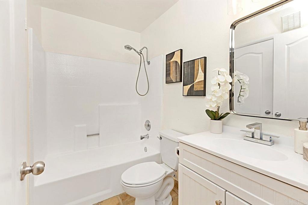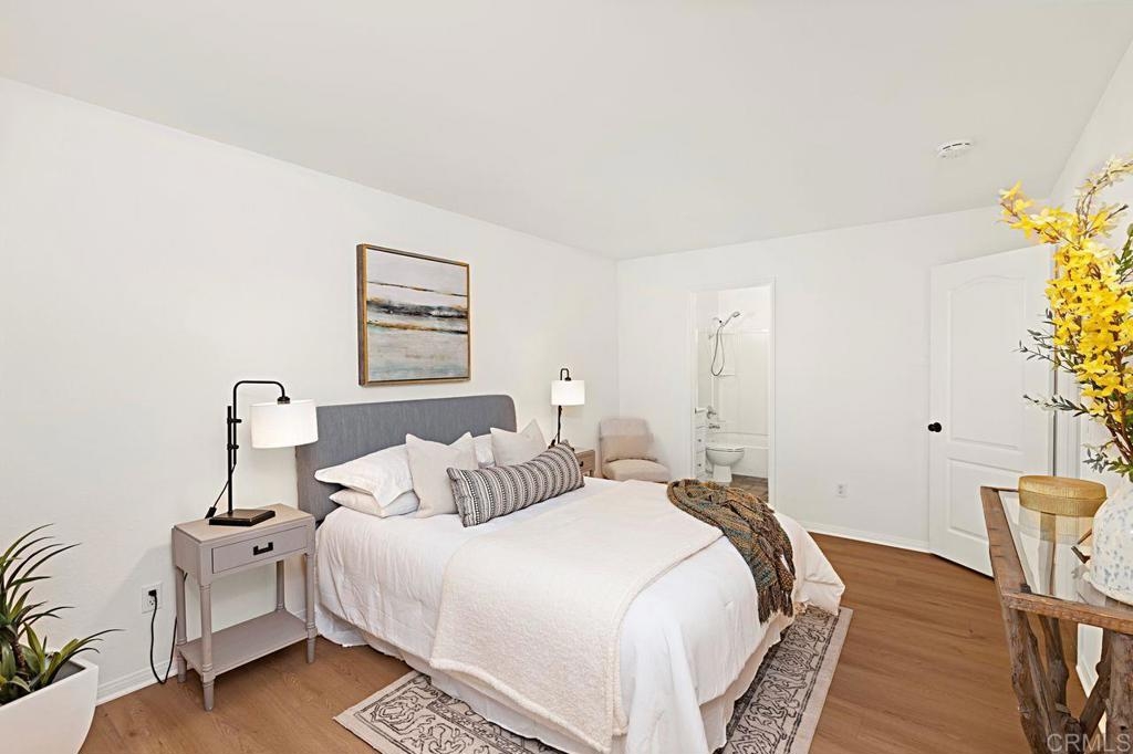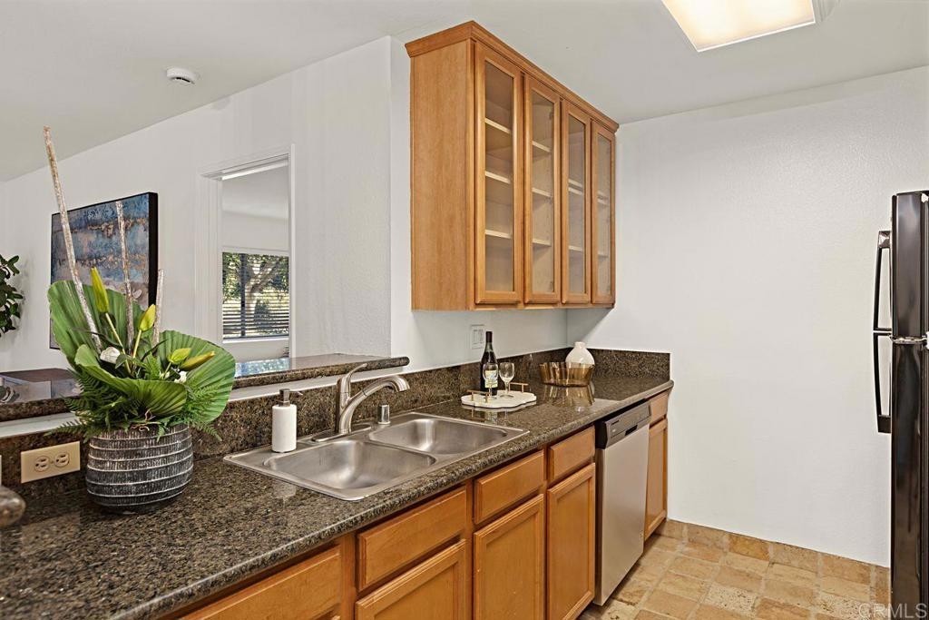 Welcome to this beautifully updated and truly turnkey first-floor 2-bedroom, 2-bathroom condo nestled in the serene and highly sought-after gated community of Lucera. Step inside to discover spacious and open living and dining areas, with brand-new vinyl plank flooring, fresh new paint, and sleek new lighting. The large patio is perfect for unwinding after a long day or entertaining. The two generously sized bedrooms are situated on opposite sides, and both can serve as primary suites. Both bathrooms have been partially remodeled, with new vanities, updated fixtures, and finishes that enhance the overall aesthetic of the home. Kitchen offers stainless steel appliances and ample granite counter space. More convenient features are in-unit laundry, exterior storage closet, and close-by one-car garage parking offers additional storage options. This resort-like community offers fitness facility, pool and spa, BBQ areas, tennis and basketball courts; not to mention being so close to easy freeway access, public transit options, UTC restaurant and shopping options, and proximity to beautiful San Diego beaches. Don't miss your opportunity to make this modern and updated condo yours!