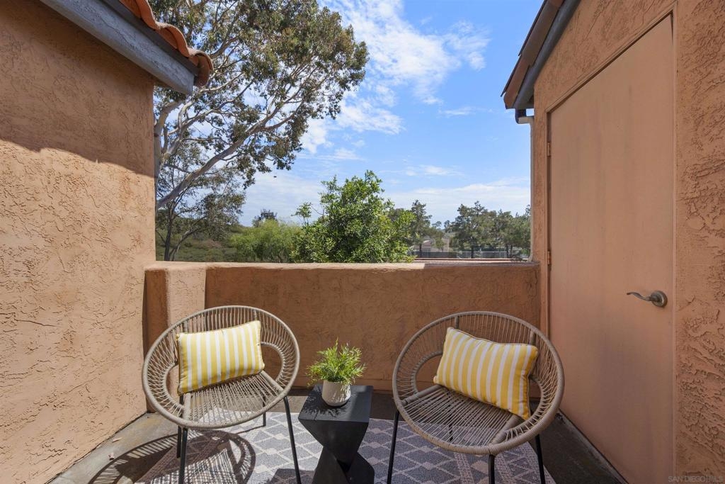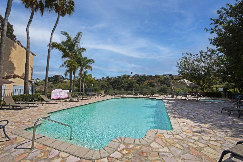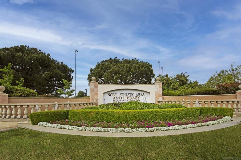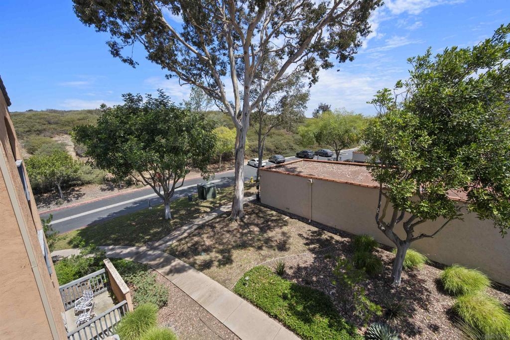 Very spacious! Spectacular condo on top floor so no one above your home. Newly painted, Bright and sunny location overlooking canyon area. Washer & Dryer in closet. Complex has large swimming pool, spa, full gym exercise room, club house, tennis courts, basketball area, lots of walking trails. Walking distance to UTC Mall, close to UCSD, restaurants and the beach. Across street from Nobel Athletic Park. Detached one car garage.