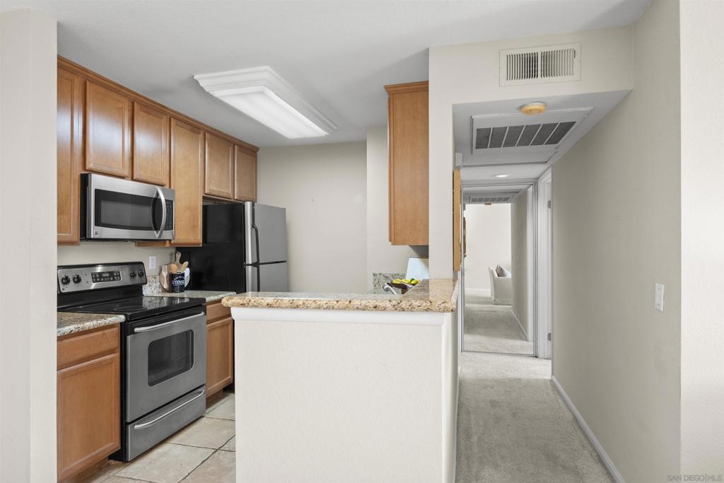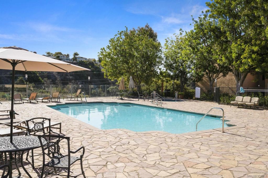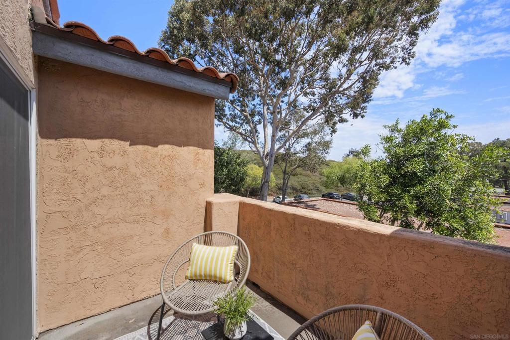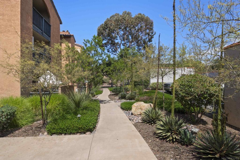 Very spacious! Spectacular condo on top floor so no one above your home. Newly painted, Bright and sunny location overlooking canyon area. Washer & Dryer in closet. Complex has large swimming pool, spa, full gym exercise room, club house, tennis courts, basketball area, lots of walking trails. Walking distance to UTC Mall, close to UCSD, restaurants and the beach. Across street from Nobel Athletic Park. Detached one car garage.