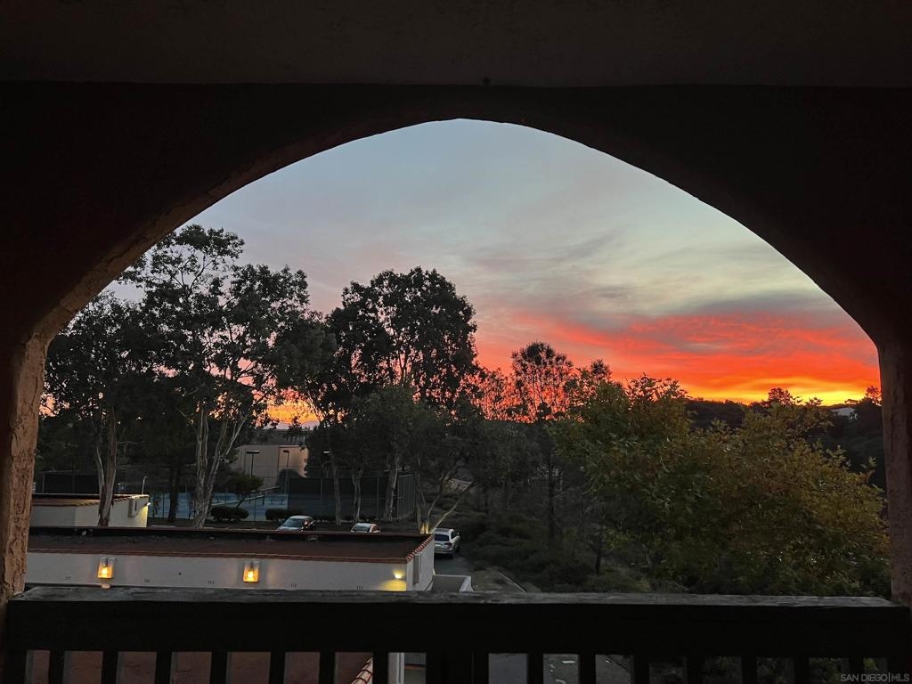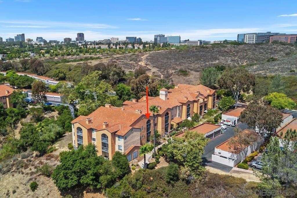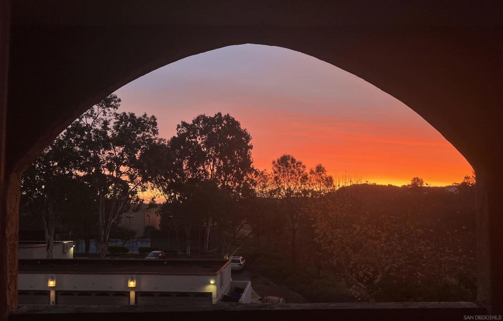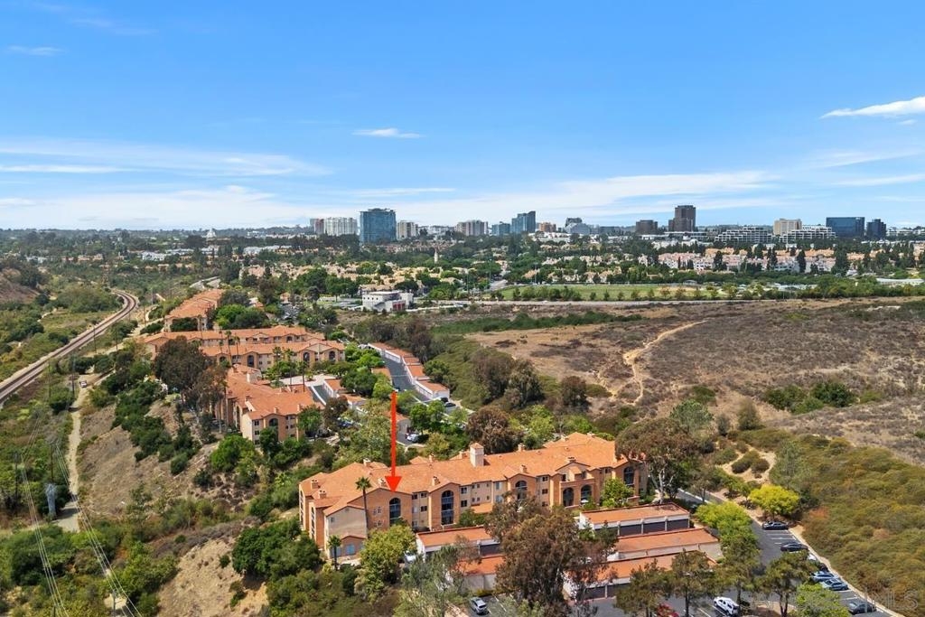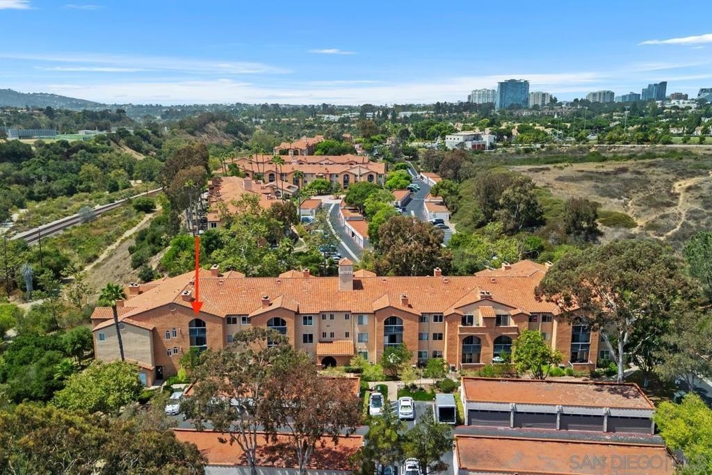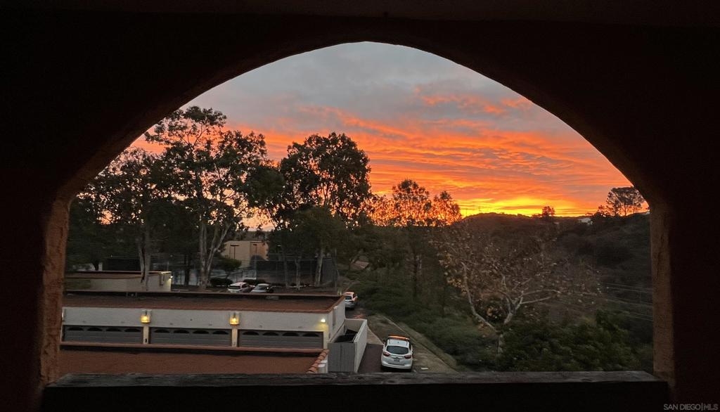 Charming 3rd (top) floor 1 bd/1 ba east facing (keeping it cooler) end unit condo at Lucera in UTC with beautiful canyon views. Quiet unit with vaulted ceilings, balcony with storage unit, large walk-in closet in bedroom, washer & dryer in unit, granite countertops, tile floors in kitchen & bathroom, fireplace in LR, stainless steel appliances, plenty of storage, detached garage, and ample open parking for guests. Condo has only one shared wall. Garage optimally located across from Bldg entrance, visible from unit. Bldg has elevator. The Lucera gated condo complex has 2 pools, 2 jacuzzis, gym, meeting/community room, tennis courts, racquetball, basketball, volleyball, BBQ grills outside the buildings, trails for hiking and is serviced by the UCSD Superloop bus. It's very close to the 805 freeway, the Nobel Athletic Park and Library are across the street, and the UTC mall is nearby.