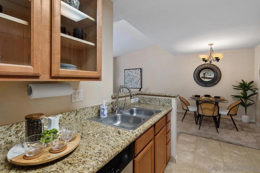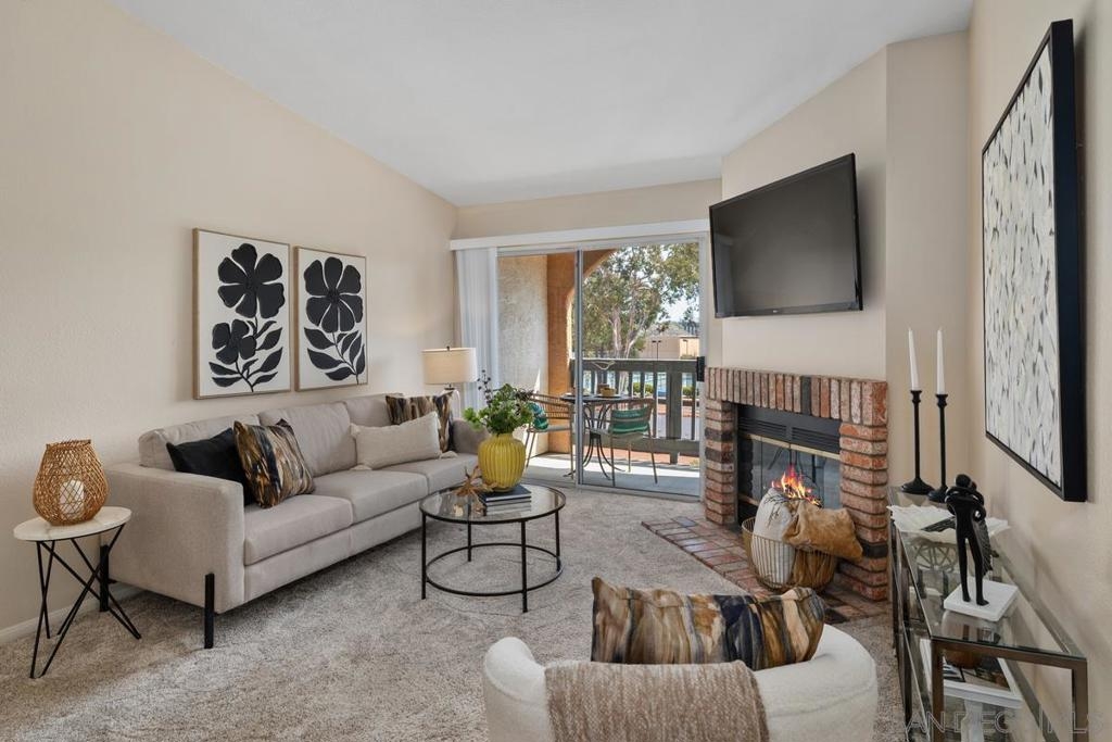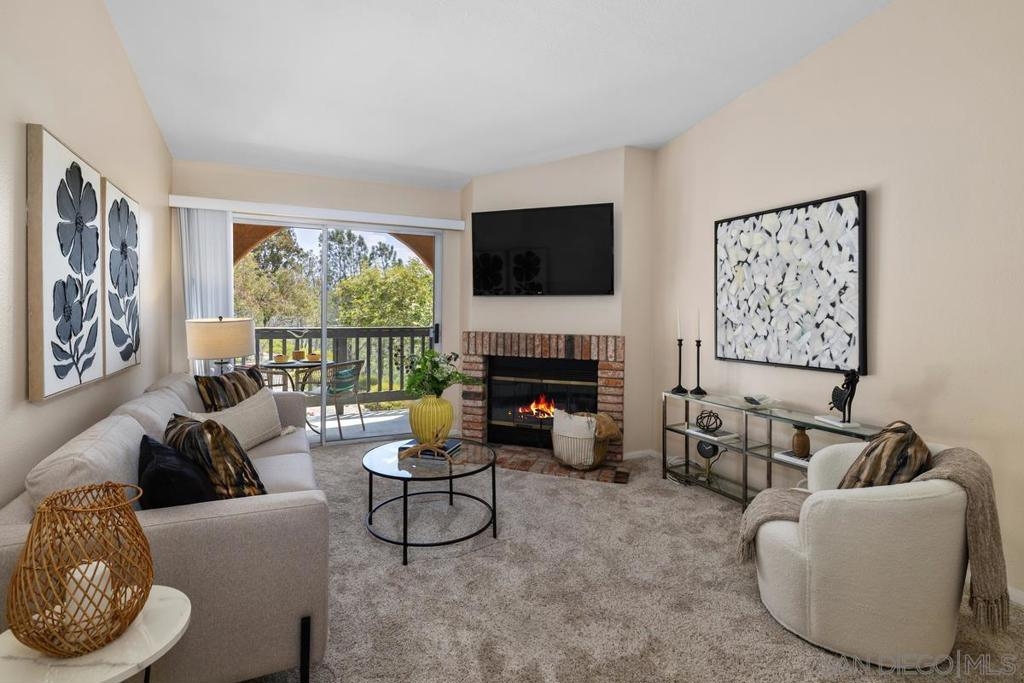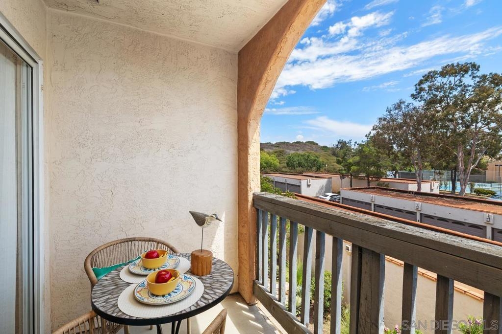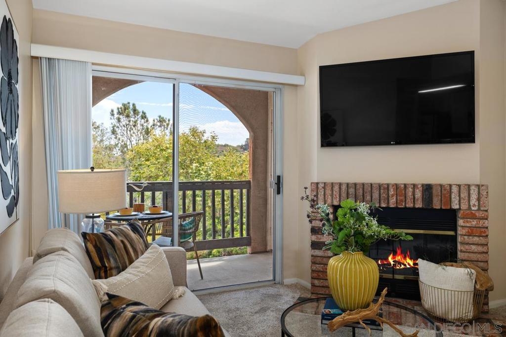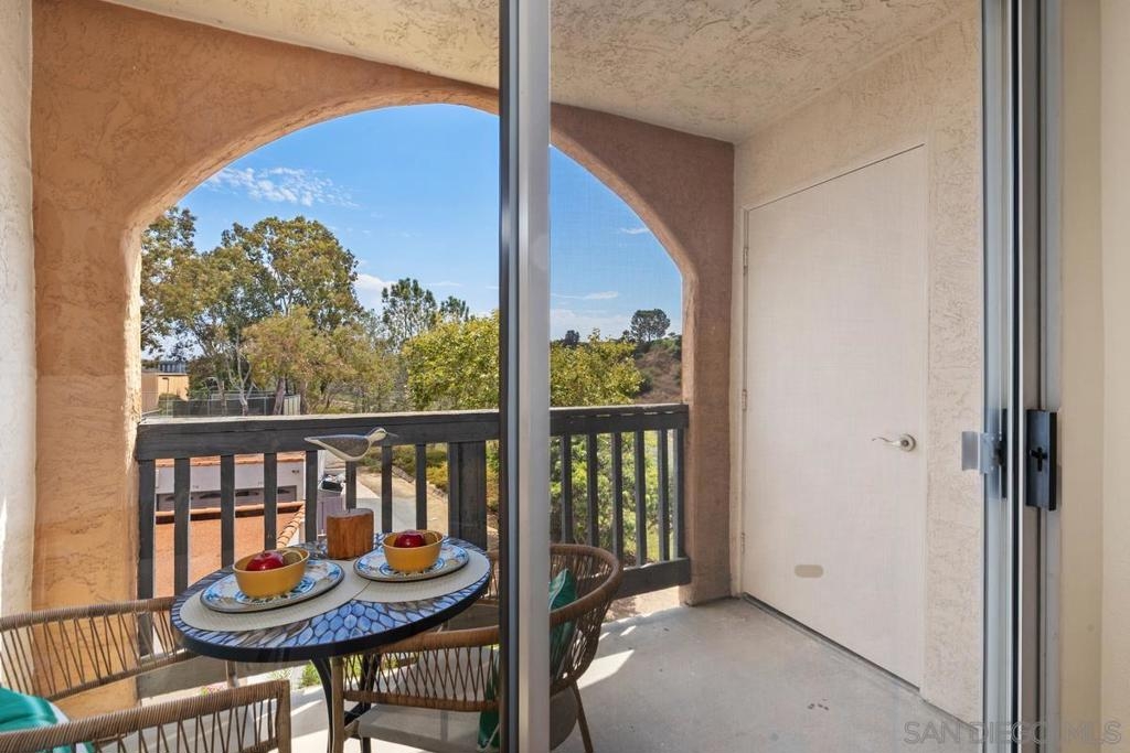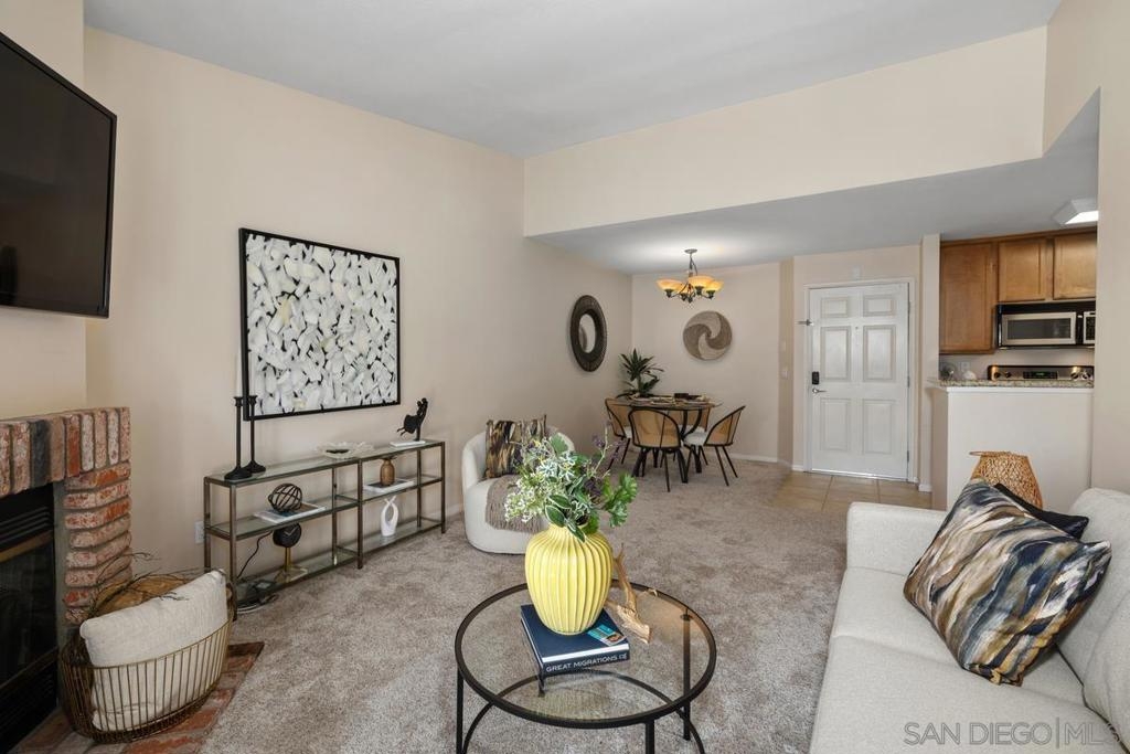 Charming 3rd (top) floor 1 bd/1 ba east facing (keeping it cooler) end unit condo at Lucera in UTC with beautiful canyon views. Quiet unit with vaulted ceilings, balcony with storage unit, large walk-in closet in bedroom, washer & dryer in unit, granite countertops, tile floors in kitchen & bathroom, fireplace in LR, stainless steel appliances, plenty of storage, detached garage, and ample open parking for guests. Condo has only one shared wall. Garage optimally located across from Bldg entrance, visible from unit. Bldg has elevator. The Lucera gated condo complex has 2 pools, 2 jacuzzis, gym, meeting/community room, tennis courts, racquetball, basketball, volleyball, BBQ grills outside the buildings, trails for hiking and is serviced by the UCSD Superloop bus. It's very close to the 805 freeway, the Nobel Athletic Park and Library are across the street, and the UTC mall is nearby.