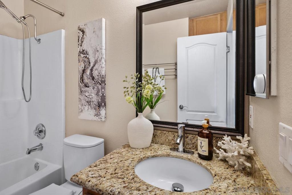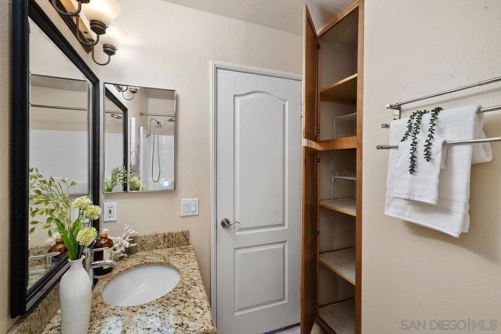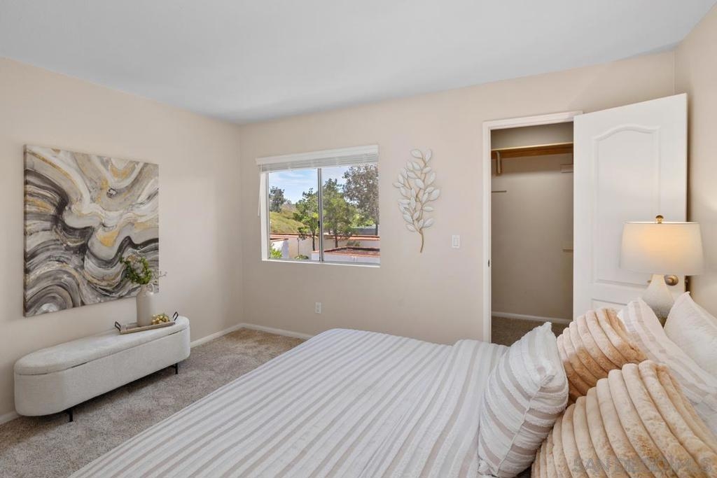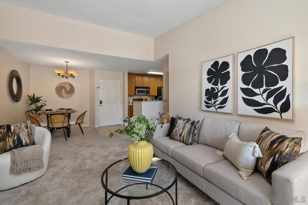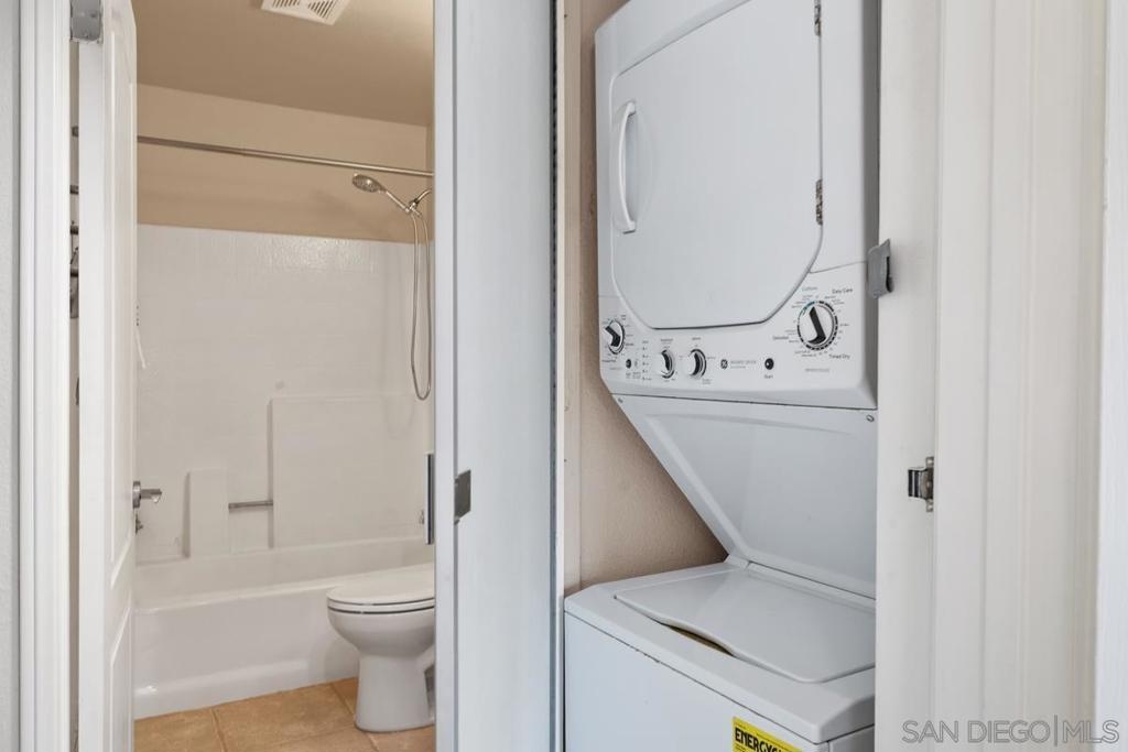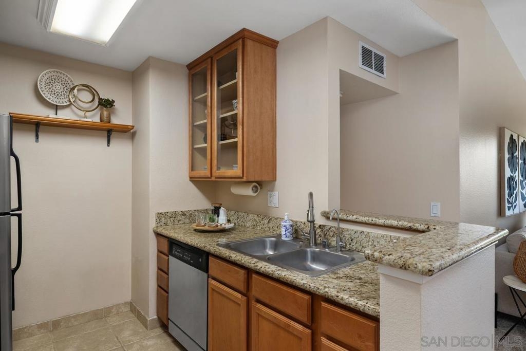 Charming 3rd (top) floor 1 bd/1 ba east facing (keeping it cooler) end unit condo at Lucera in UTC with beautiful canyon views. Quiet unit with vaulted ceilings, balcony with storage unit, large walk-in closet in bedroom, washer & dryer in unit, granite countertops, tile floors in kitchen & bathroom, fireplace in LR, stainless steel appliances, plenty of storage, detached garage, and ample open parking for guests. Condo has only one shared wall. Garage optimally located across from Bldg entrance, visible from unit. Bldg has elevator. The Lucera gated condo complex has 2 pools, 2 jacuzzis, gym, meeting/community room, tennis courts, racquetball, basketball, volleyball, BBQ grills outside the buildings, trails for hiking and is serviced by the UCSD Superloop bus. It's very close to the 805 freeway, the Nobel Athletic Park and Library are across the street, and the UTC mall is nearby.