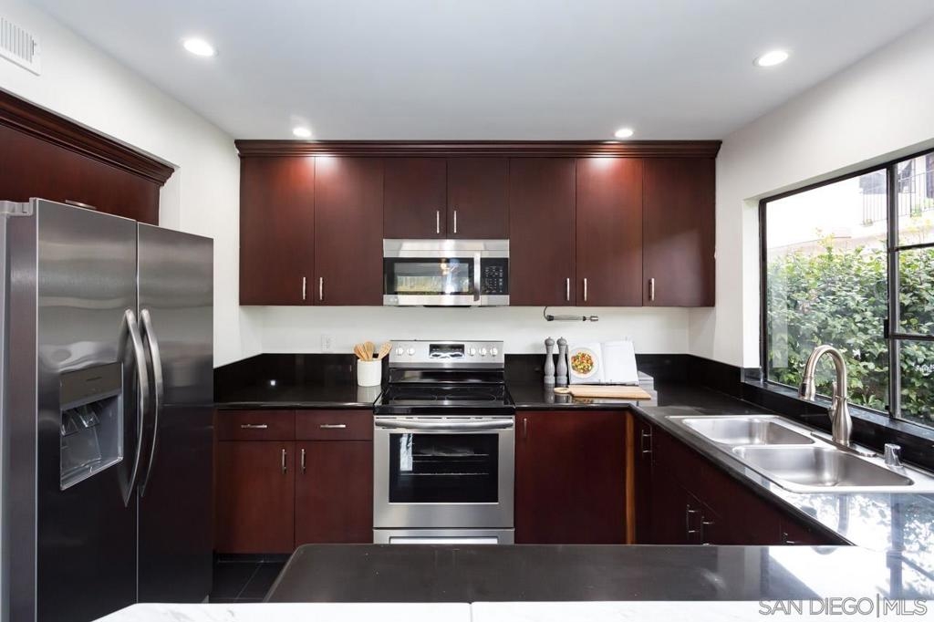 Open and Bright 3 Bed, 2.5 Bath 1,394sf. 2 car garage Townhome in the sought after community of Marbella! Beautiful updated home, soring ceiling, plenty of natural light, large kitchen, stainless steel open to the dining area that flows out to the large patio for indoor outdoor living at it best. Tile flooring downstairs and wood like flooring upstairs. Lager master suite with balcony to relax and enjoy! Close to beaches, Westfield Mall, UCSD, 5 & 805 Freeways, walk to shopping, dining, La Jolla Colony park, hiking trails & more! Equipment: Range/Oven Topography: LL