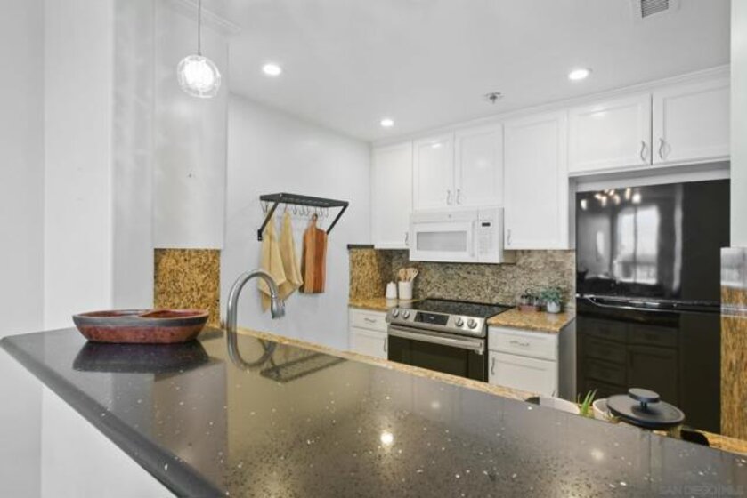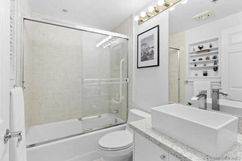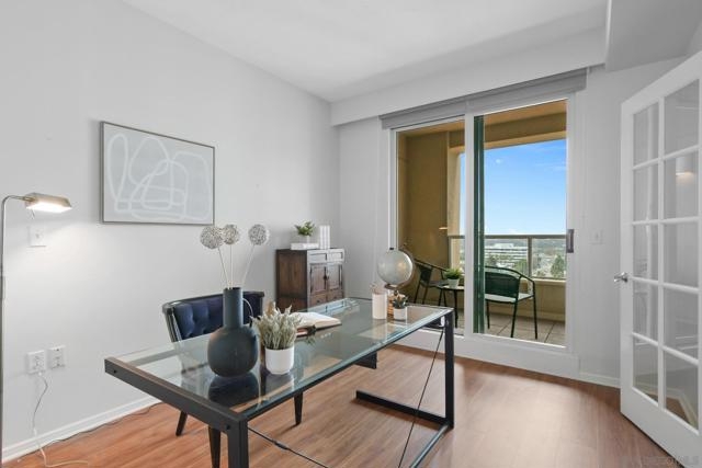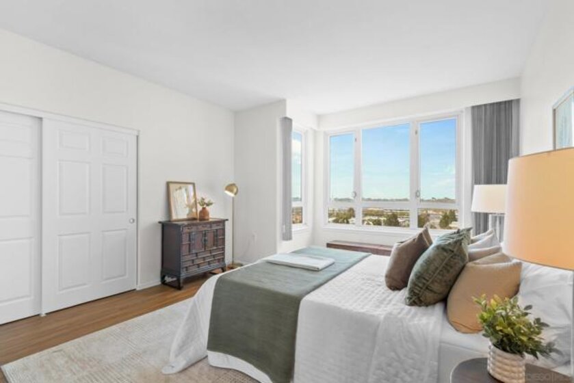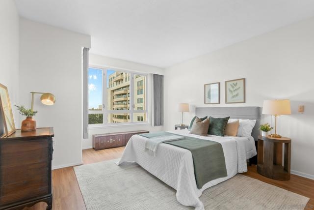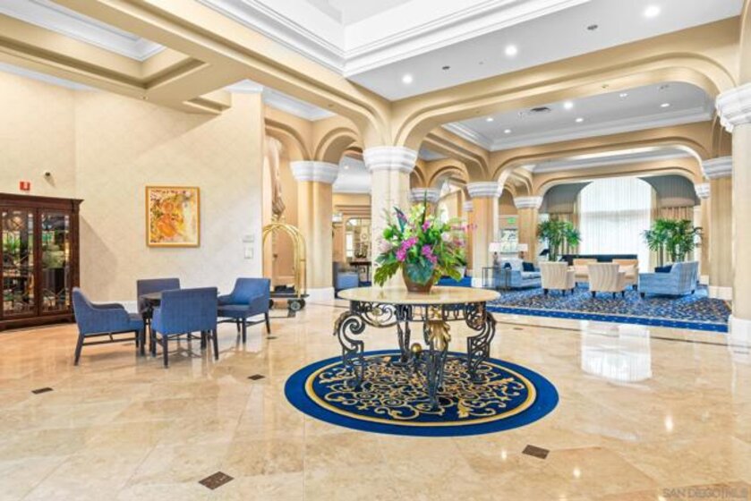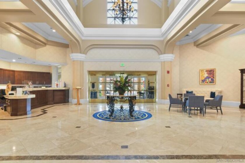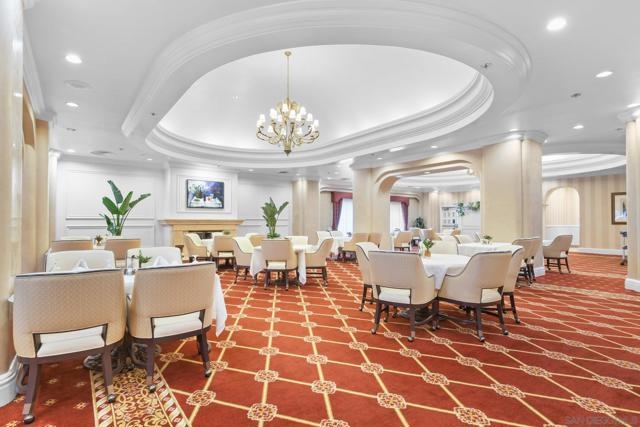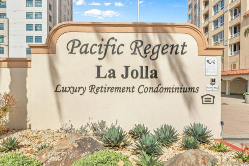 Bright and contemporary 13th floor condo with gorgeous sunset views! This 2 bedroom, 2 bath home offers a gracious layout and amazing westerly views from your living room and both bedrooms. Pacific Regent La Jolla is a luxurious resort style, full service, 62+ independent living community with amenities galore. Offering 24/7 security, valet parking service for residents and guests, a heated indoor pool and spa, exercise/fitness center, on-site restaurant, a beauty salon and more, this single level (no stairs) condo is beautifully updated and move-in ready. An open kitchen layout, spacious living and dining area and a covered balcony make this a popular floor plan. The second bedroom is accessed from the living room and also functions well as a cozy den or office. Paint and flooring were updated in 2023. The spacious balcony, open to the living room as well as to bedroom two/den, offers wonderful views and a shady tucked in corner perfect for a small container garden. Weekly one-hour housekeeping service, concierge services, a library, several outdoor lounge areas and weekly cultural outings are among resident amenities. Scheduled transportation to medical centers, markets and local attractions is also available.