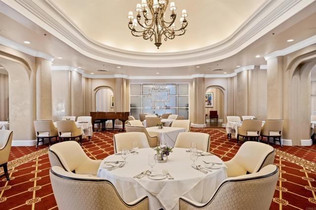 Located in Pacific Regent La Jolla, a premier 62+ community on the border of La Jolla and UTC, this bright 2-bed 2-bath 1,153 sqft corner unit offers unobstructed mountain and city views. This South-East facing home is filled with natural light and features an open floor plan, a spacious living room with a wall of windows and a private balcony. The unit also includes updated bathrooms - one with a soaking tub, the other with a walk-in shower. Plus a full-sized stacked washer & dryer, central AC and heating. Pacific Regent La Jolla has 148 condominiums and offers upscale resort-style living. Amenities include 24/7 concierge and security, weekly 1-hr housekeeping service, a heated indoor pool and spa, an on-site gourmet restaurant, a fitness center, a library, a beauty salon, and an outdoor lounge. Residents enjoy a full calendar of activities, from book clubs and movie nights to beach walks and cultural outings. Additional conveniences include 3 residential elevators, a private parking garage with EV charging stations, complimentary valet parking for residents and guests and scheduled transportation to medical centers, markets and local attractions. Monthly HOA dues cover all utilities, dining credits, high-speed internet, cable TV, landline service, water, trash and common area maintenance. Ideally located in one of San Diego’s most desirable neighborhoods, Pacific Regent La Jolla is just minutes away from the UCSD medical campus, UTC shopping center, the Blue Trolley line and the beautiful La Jolla beaches. It also offers quick access to the 805 and 5 freeways.