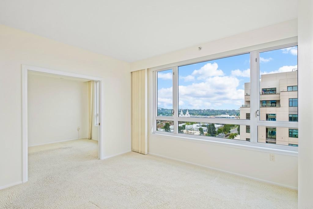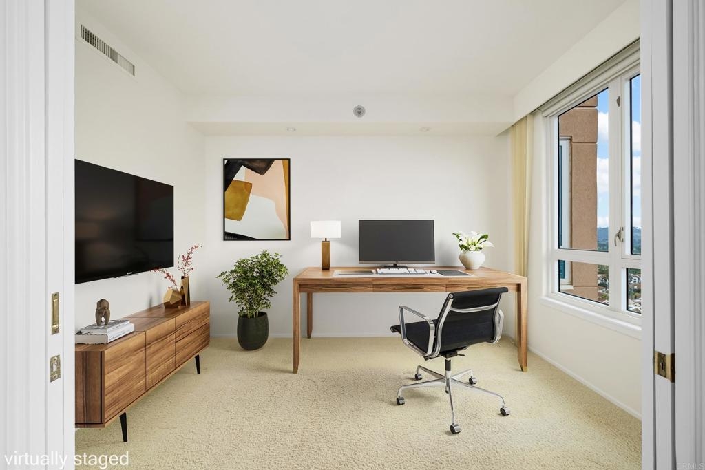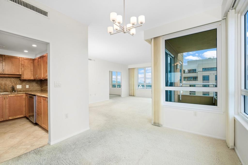 Pacific Regent La Jolla, a luxury gated 62+ community, is perfectly located in one of the most desirable neighborhoods in San Diego - UTC just east of La Jolla. It's close to the USCD medical campus, UTC shopping center, newly built Blue trolley line and beautiful La Jolla beaches. Residence #1702, a 2br +office/den 2 baths 1563 SqFt open-floor concept freshly painted condominium offers breathtaking city, mountain and ocean views. This bright and airy North-West facing residence is equipped with oversized windows, central AC & heating, large walk-in closet and a private balcony. Home to 148 condominiums, Pacific Regent high-rise provides a comfortable and secure living environment for its residents, who enjoy the retirement at its finest with upscale amenities such as 24/7 concierge and security services, weekly 1-hr housekeeping service, heated indoor pool and spa, an on-site gourmet restaurant, fitness center with daily exercise classes, quiet library, beauty salon, outdoor lounge area, 3 residential elevators and a storage locker. Pacific Regent offers a full activity calendar each day, featuring a variety of engaging entertainment and outings, tailored to please a wide range of tastes and preferences. These include numerous book clubs and lectures, walks on the beach and Balboa Park, daily movie nights and happy hours. Other features at Pacific Regent include residents-only parking garage with electric vehicle charging stations and complimentary valet parking for both residents and guests. Scheduled transportation by car or bus is available for those who prefer not to drive. This makes it convenient for residents to access medical facilities, local markets, stores and attractions. Additionally, monthly HOA dues in this well-maintained complex cover a minimum of 10 dining room meal credits per occupant, all utilities, water, trash pick up, high speed internet & cable TV, landline phone service and exterior and common grounds maintenance. Ideal location allows quick access to 805 and 5 freeways.