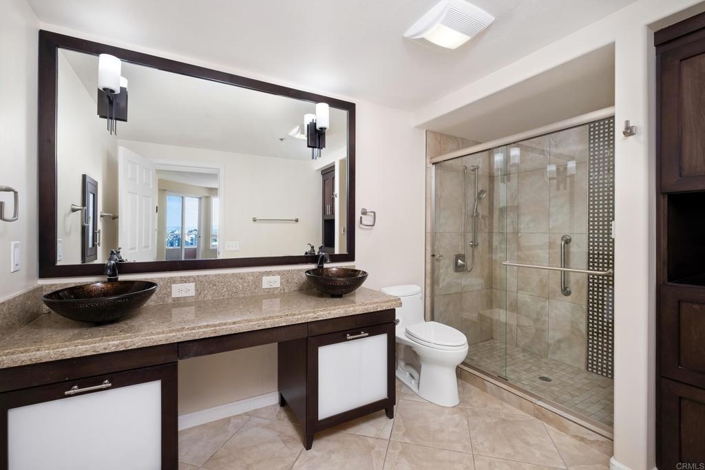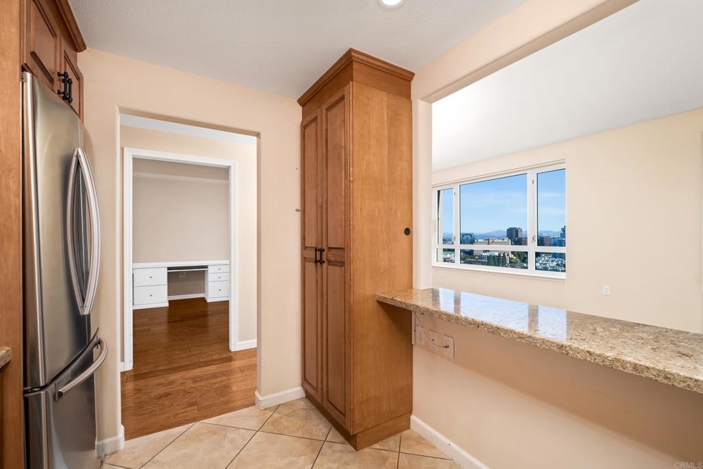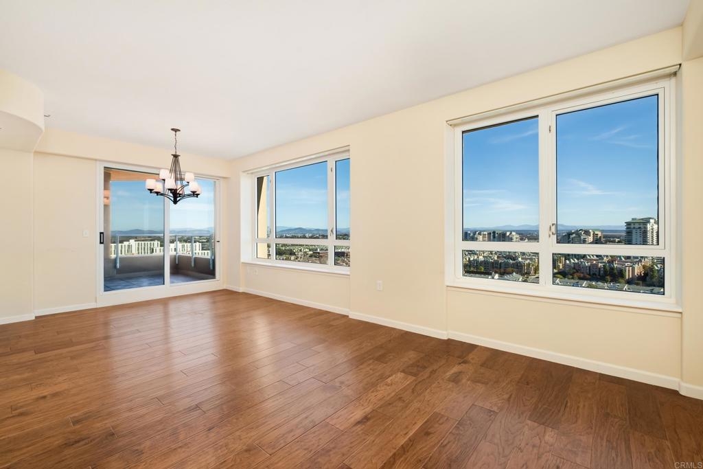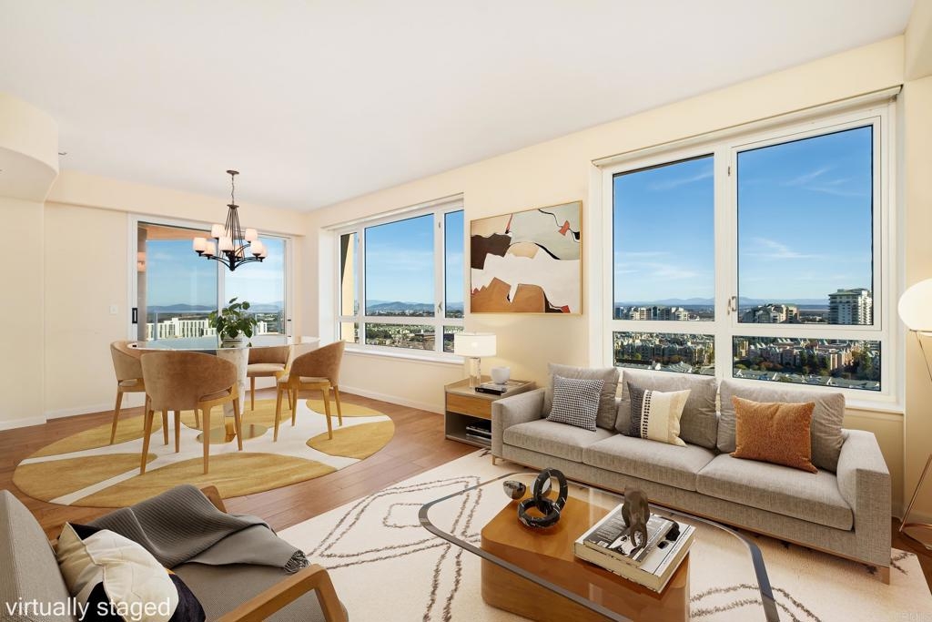 Welcome to Pacific Regent La Jolla, a luxurious 62+ community on the border between La Jolla and UTC. Residence #1901 is an updated filled with natural light east-facing 2br 2 baths 1200 SqFt condominium, equipped with central AC & heating, granite countertops, s/s appliances and a full-sized stacked washer & dryer. This open-floor concept unit with beautiful engineered wood & tile flooring offers exceptional panoramic views of the city and the mountains and features wall of windows, a spacious walk-in closet, numerous closets for storage and a private balcony. The other notable features include 2 sophisticated bathrooms with walk-in showers, gorgeous vessel sinks and dark brown cabinets. Home to 148 condominiums, Pacific Regent high-rise offers a comfortable living environment for its residents. The upscale amenities include 24/7 concierge and security services, weekly 1-hr housekeeping service, heated indoor pool and spa, an on-site gourmet restaurant, fitness center, daily exercise classes, quiet library, beauty salon, outdoor lounge area, 3 residential elevators and a storage locker. Pacific Regent offers a full activity calendar each day, featuring a variety of engaging entertainment and outings, designed to please a wide range of tastes and preferences. These include numerous book clubs and lectures, walks on the beach, trips to Balboa Park, daily movie nights and happy hours. Residents have access to a residents-only parking garage with electric vehicle charging stations and complimentary valet parking for both residents and guests. Scheduled transportation by car or bus is available for those who prefer not to drive, making it convenient to reach medical facilities, local markets, stores and attractions. Additionally, monthly HOA dues in this well-maintained complex cover a minimum of 10 dining room meal credits per resident, all utilities, water, trash pick up, high speed internet & cable TV, landline phone service and exterior and common grounds maintenance. Perfectly located in one of the most desirable neighborhoods in San Diego, Pacific Regent LJ is a short distance away from the USCD medical campus, UTC shopping center, newly built Blue trolley line and beautiful La Jolla beaches. Ideal location allows quick access to 805 and 5 freeways.
