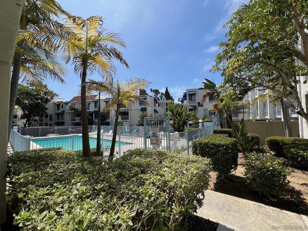 Newly remodeled one-bedroom poolside condo with garage parking in Pines of La Jolla gated community, featuring elegant white cabinets, beautiful quartz countertop, laminate flooring, airy & bright and a private patio. Incredibly private & quiet on first floor surrounded by lush greenery and pool. A perfect south-facing view for capturing maximum sunlight. Large floor plan, generous closets & storage. Community amenities include, multiple pools & spas, hanging gardens, fountains. Highly desired community right next to UCSD bus stop, easily get access to nearby shopping piazza and restaurants.