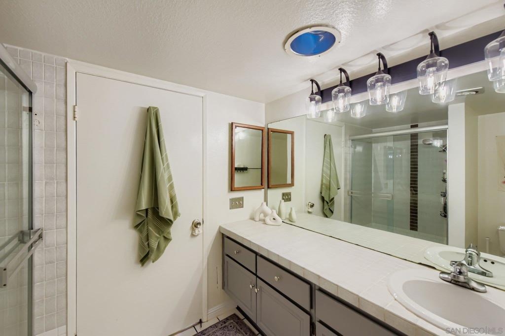 This spacious 3 bedroom townhome in Playmor Terrace West blends comfort and convenience in a prime central UTC close location. The open floor plan on the main level features wood style LVP flooring, a bright living and dining area with a cozy fireplace, and an updated kitchen with granite counters, stainless appliances, and plenty of cabinet space. French doors open to a private patio ideal for outdoor lounging or dining. A full laundry room and guest half bath complete the first floor. Upstairs, the generous primary suite offers fantastic natural light, excellent closet space and access to a sunny balcony with views to the canyon and the greenbelt. Two additional bedrooms and two full baths provide great flexibility for work-from-home, guests, or family needs. Other highlights include a whole house fan, ceiling fans in all bedrooms, a skylight over the stairway, and two assigned parking spaces—one covered, one uncovered. The community features two pools, a nature trail to rose canyon, a peaceful atmosphere, and close proximity to UCSD, shopping, dining, parks, and major freeways.