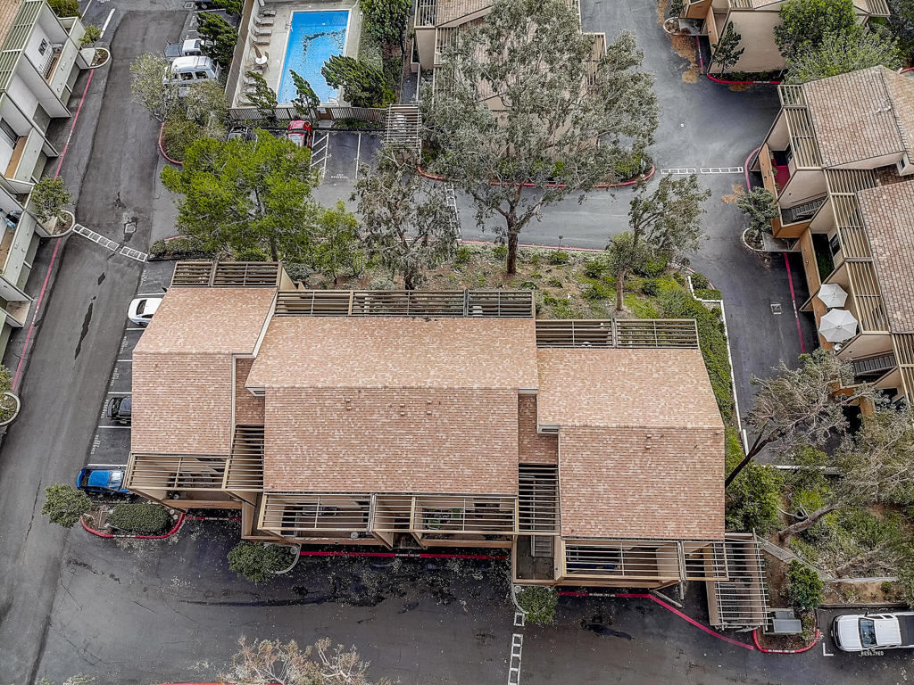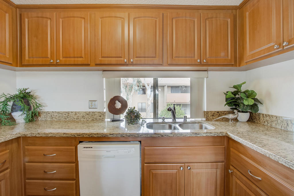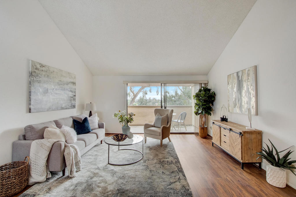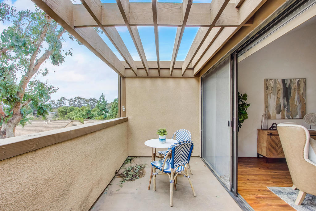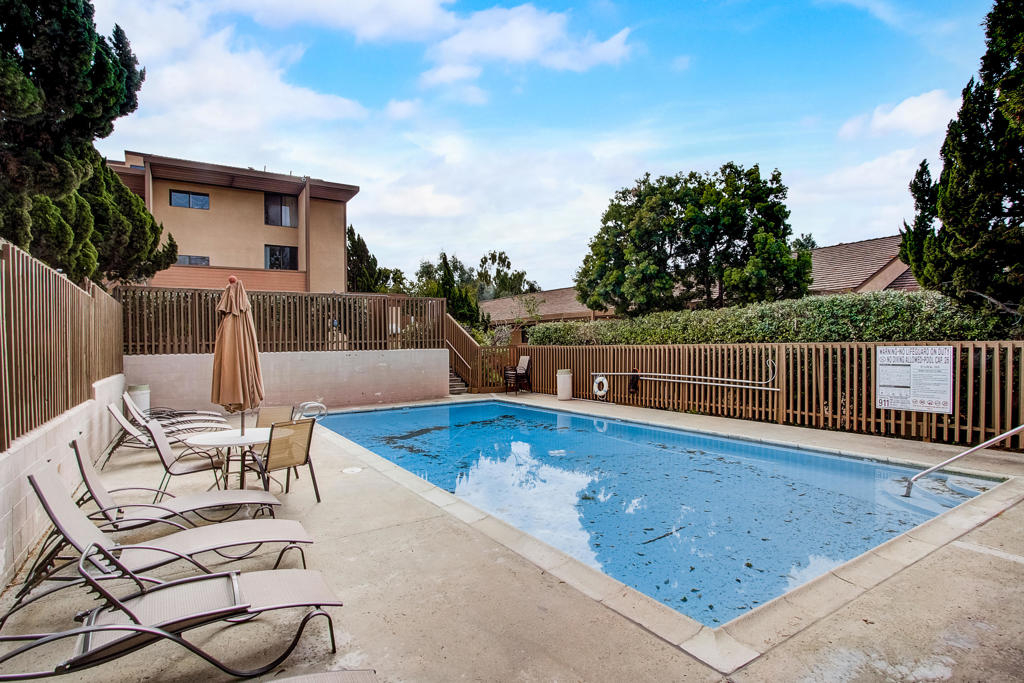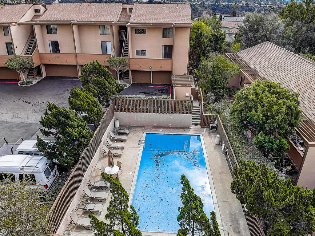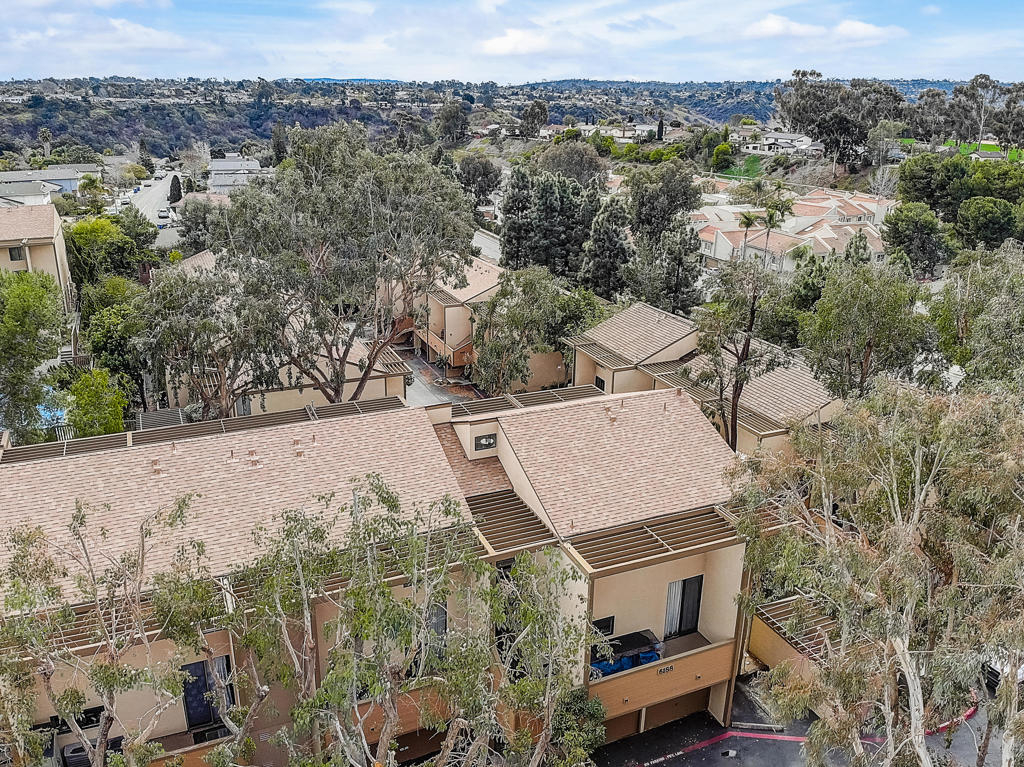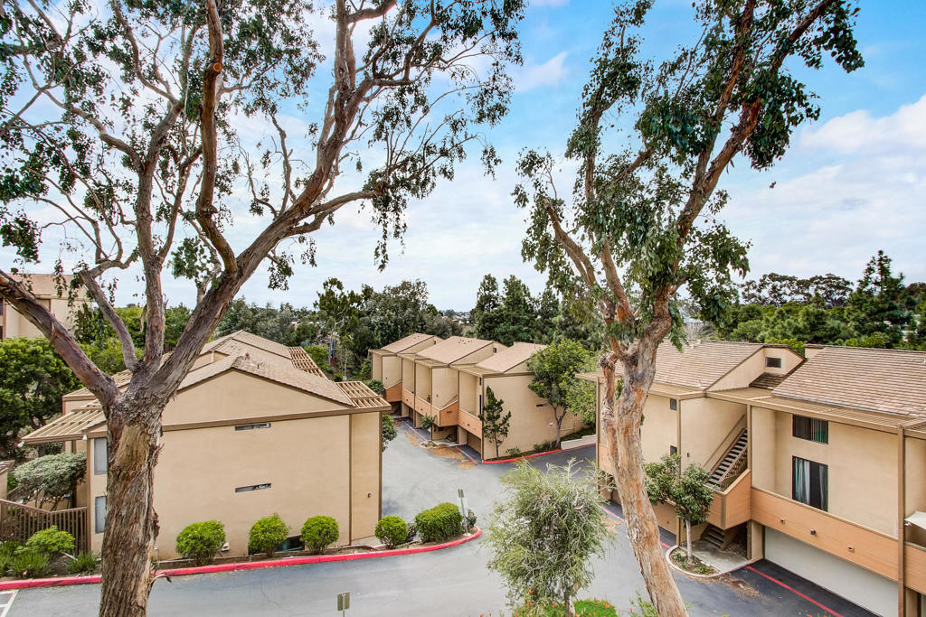 Move-in-ready 2 bed/1.5 bath well-maintained condo in Central University City. Highlighting new laminate wood floors and fresh paint. Nice appliances, double Stainless kitchen sink, upgradedgranite countertops and backsplash, upgraded cabinets too. Both bathrooms have been renovated and upgraded with new modern vanities and fixtures and upgraded granite counters. This unit features a large covered patio with a great view from this 3rd floor location. Spacious living room off of the large balcony make for great outdoor living, The 2nd bedroom is also quite spacious. The spacious master suite has lots of closet space and high ceilings. 1 car garage with storage space + 1 assigned spot + 1 designated guest permit for visitors. The Park includes a pool & convenient laundry facility! Ideally located close to parks, UTC, other shopping centers, dining, freeways, and more! This is an all electric unit, no gas. New roof too ! ! !