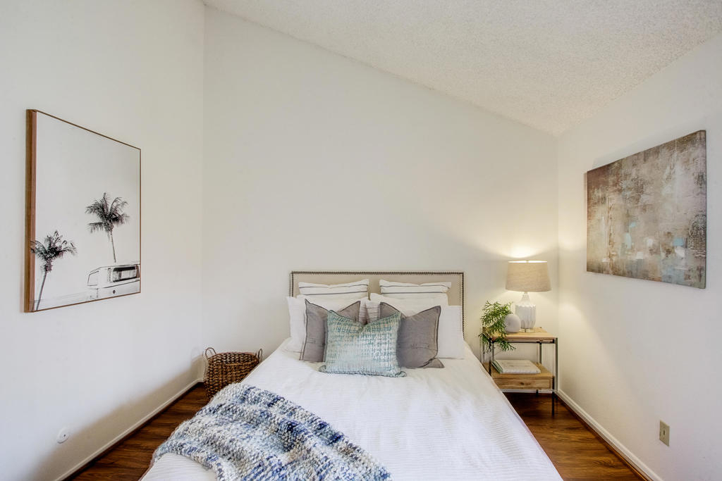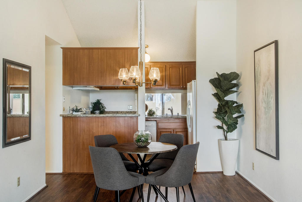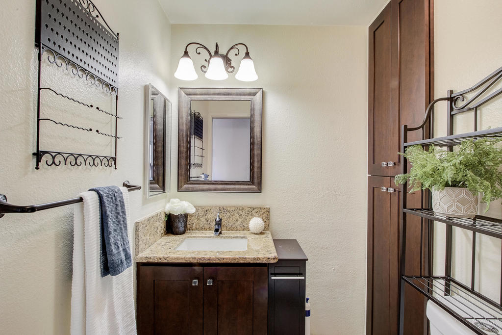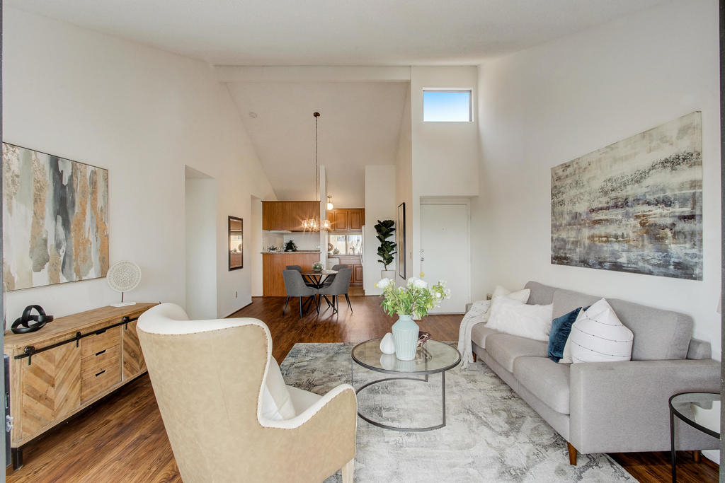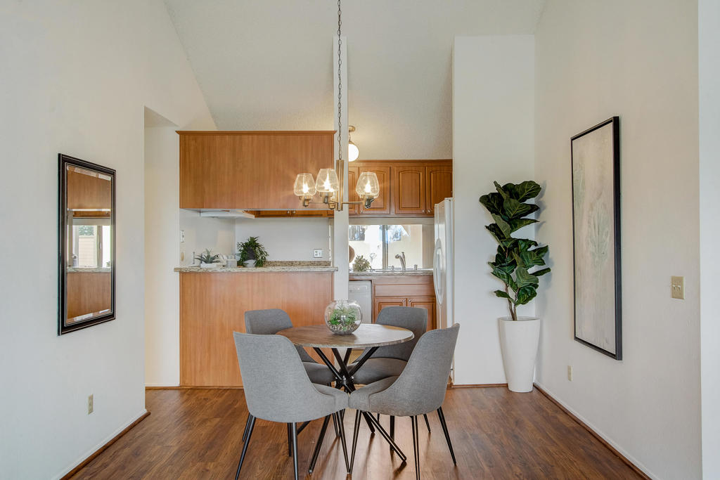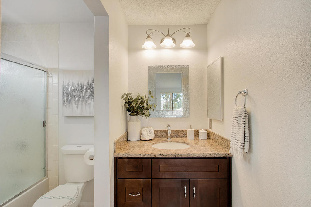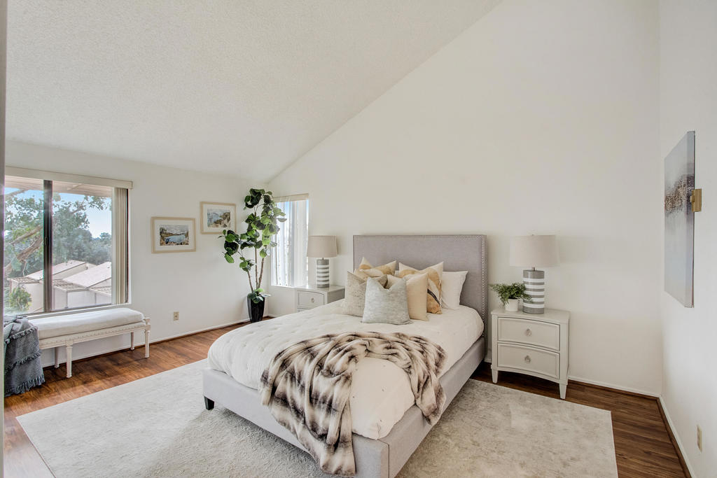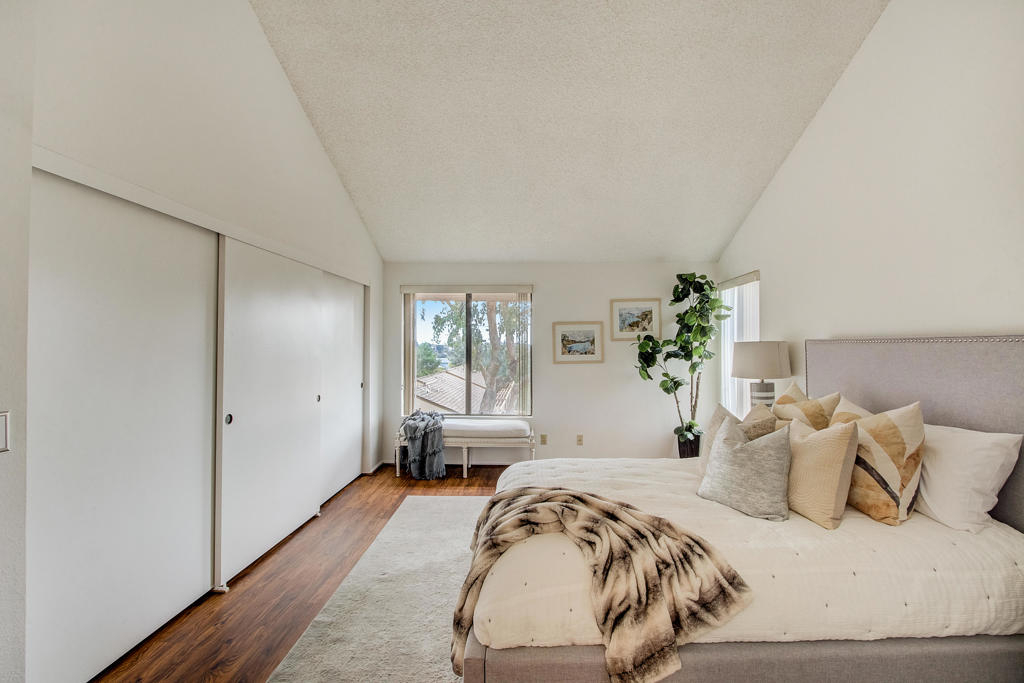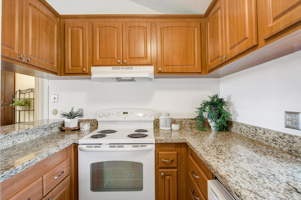 Move-in-ready 2 bed/1.5 bath well-maintained condo in Central University City. Highlighting new laminate wood floors and fresh paint. Nice appliances, double Stainless kitchen sink, upgradedgranite countertops and backsplash, upgraded cabinets too. Both bathrooms have been renovated and upgraded with new modern vanities and fixtures and upgraded granite counters. This unit features a large covered patio with a great view from this 3rd floor location. Spacious living room off of the large balcony make for great outdoor living, The 2nd bedroom is also quite spacious. The spacious master suite has lots of closet space and high ceilings. 1 car garage with storage space + 1 assigned spot + 1 designated guest permit for visitors. The Park includes a pool & convenient laundry facility! Ideally located close to parks, UTC, other shopping centers, dining, freeways, and more! This is an all electric unit, no gas. New roof too ! ! !
