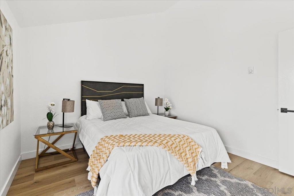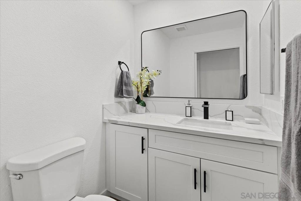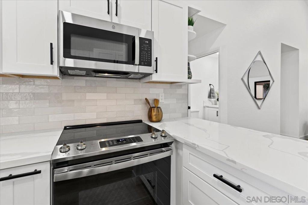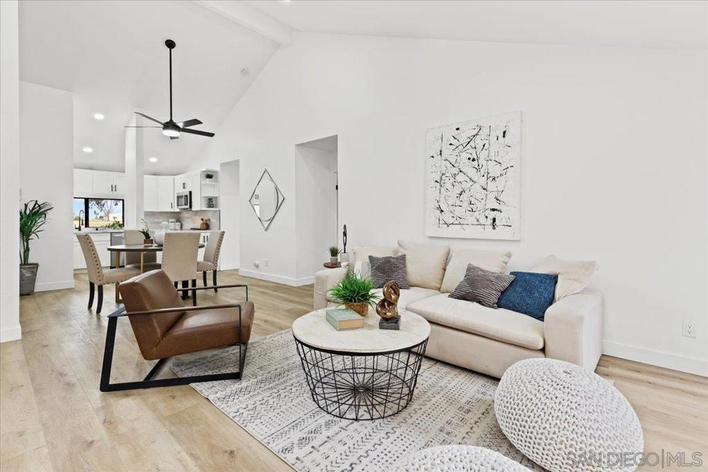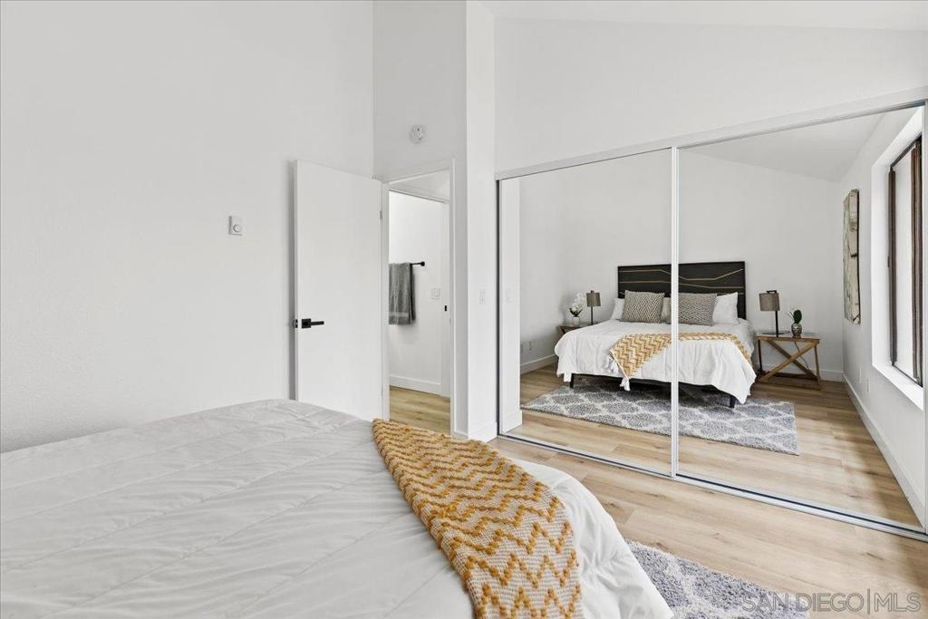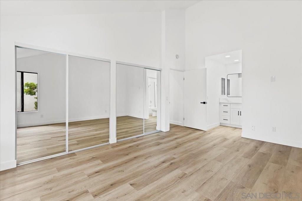 Beautifully remodeled top-floor 2-bedroom unit in highly sought-after University City! This home features an open, spacious floor plan with vaulted ceilings, fresh paint, luxury vinyl plank flooring, recessed lighting and ceiling fan. The upgraded kitchen boasts custom cabinetry, quartz countertops, tile backsplash and stainless steel appliances. Remodeled bathrooms come with designer fixtures, and the unit offers abundant natural light, ample storage and expansive closet space. Enjoy the convenience of a one-car epoxy garage, an additional parking space and a sizable balcony perfect for relaxation or outdoor gatherings. Community amenities include a sparkling gated pool and guest parking. Close to UTC Mall, UCSD, pristine beaches, and with easy freeway access, this is a must-see opportunity!