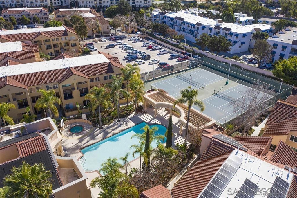Ground floor unit in the Venetian community in UTC. Property featuring: granite counters, dark cherry wood cabinetry, travertine tile, neutral carpet and paint, recessed lighting, stainless steel appliances include refrigerator, dishwasher, stove/oven, built-in microwave, and washer/dryer. There's a large patio and community offers pool, spa, tennis, and gym. Walk to bus stop, close to UCSD, UTC mall and shopping and restaurants. Property comes with one underground parking. Complex Features: ,,,, Equipment: Dryer, Washer Sewer: Sewer Connected Topography: LL