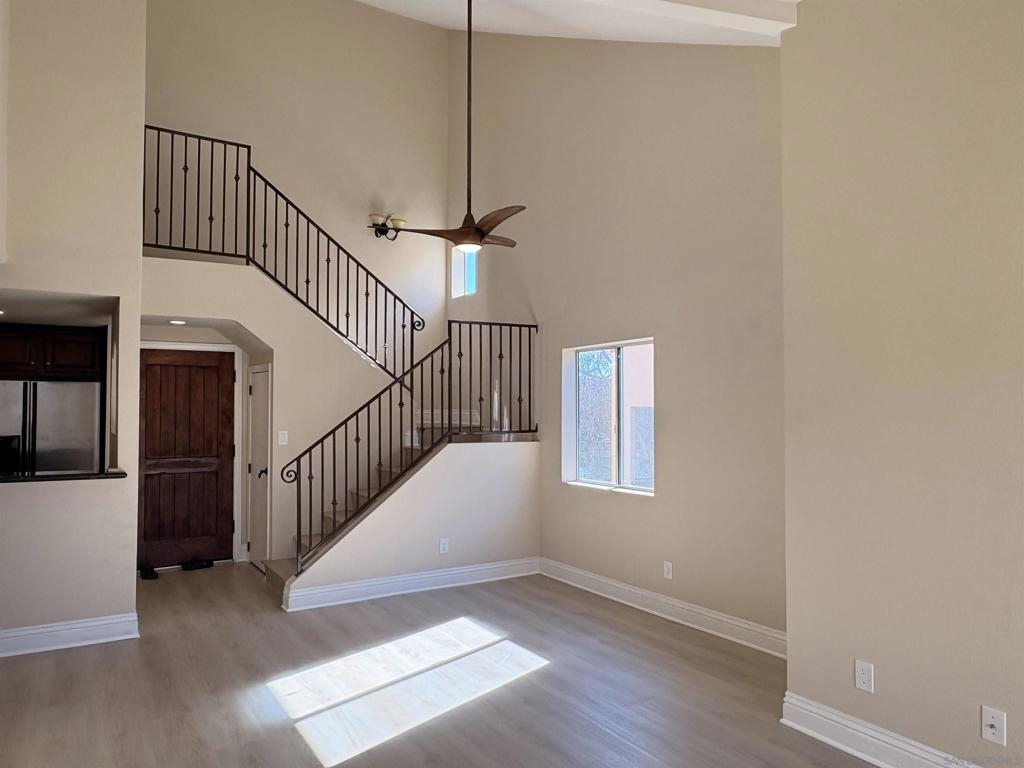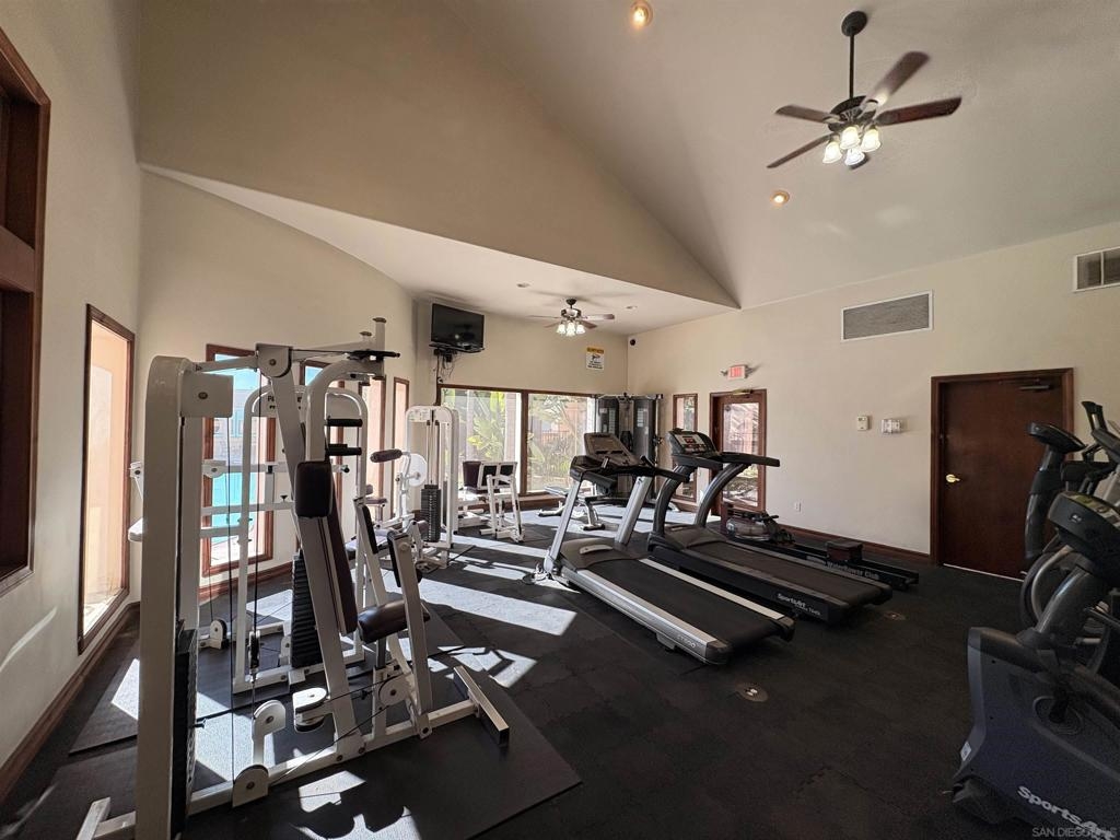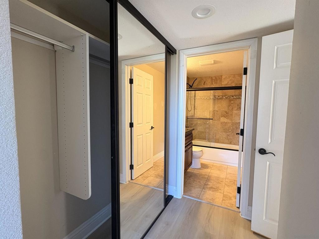 A lovely starter home or investment opportunity in the heart of UTC, located within the Venetian community. This move-in-ready, upgraded two-story condo offers an ideal and flexible floor plan with one bedroom and one bathroom on each level, both featuring double closets, perfect for a roommate or rental setup. The unit features brand new laminate flooring, new recessed lighting, vaulted ceilings with no neighbors above, large windows, and stainless steel appliances. Bright and quiet, it includes a spacious deck overlooking a peaceful greenbelt. Its location away from the street ensures minimal noise. Additional highlights include indoor laundry and two assigned parking spaces in a gated area with one underground garage space and one street-level space. Conveniently located near Westfield UTC Mall, dining, grocery stores, shopping, and a movie theater. Just a short drive to La Jolla’s renowned beaches, UCSD, Scripps, Salk Institute, Illumina, Birch Aquarium, Torrey Pines Golf Course, the public library, Nobel Athletic Center, and nearby parks. Bus routes #201 and #202 start just outside the complex, providing easy access to UCSD. The community offers one of the lowest HOA fees in the area, which includes water, internet, and trash service. Amenities include a clubhouse, pool and spa, recreation room, gym, grill and tennis court.
