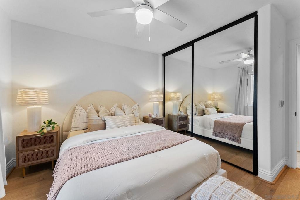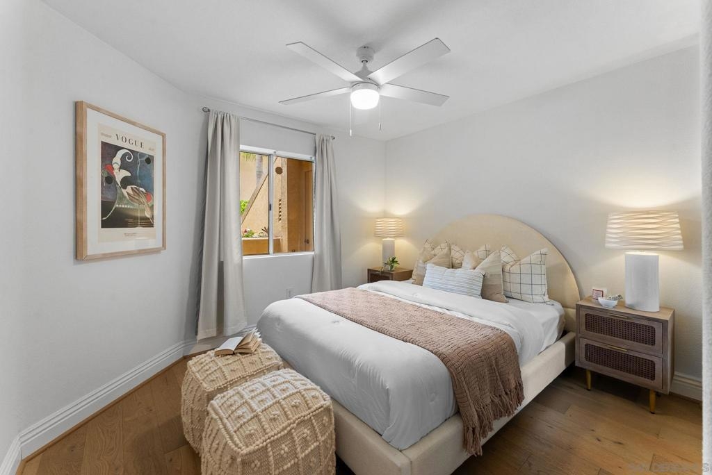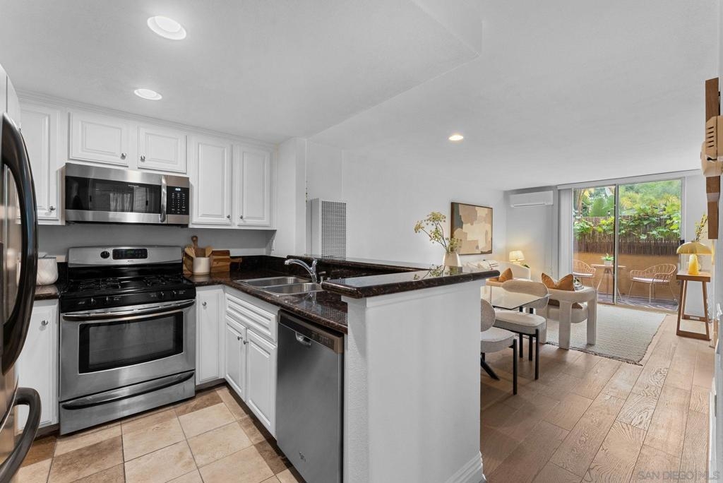 Welcome to this beautifully updated ground-level 1-bedroom, 1-bathroom condo located in the highly sought-after Venetian complex in the heart of University City. This home offers the perfect blend of comfort, convenience, and community amenities, all with low HOA dues of just $179/month, including water, trash, and internet. Step inside to an open-concept layout featuring newer engineered hardwood flooring and fresh paint throughout. The mini-split system keeps the space comfortable year-round, while the in-unit washer and dryer add ease to everyday living. Enjoy your morning coffee or unwind in the evening on your private patio, an ideal extension of your living space. The VA-approved Venetian community offers resort-style amenities including a sparkling pool and spa, tennis courts, a well-equipped gym, and more. Located just minutes from UCSD, shopping, dining, beaches, and major freeways, this home is perfect for students, professionals, or anyone looking to enjoy all that University City has to offer.