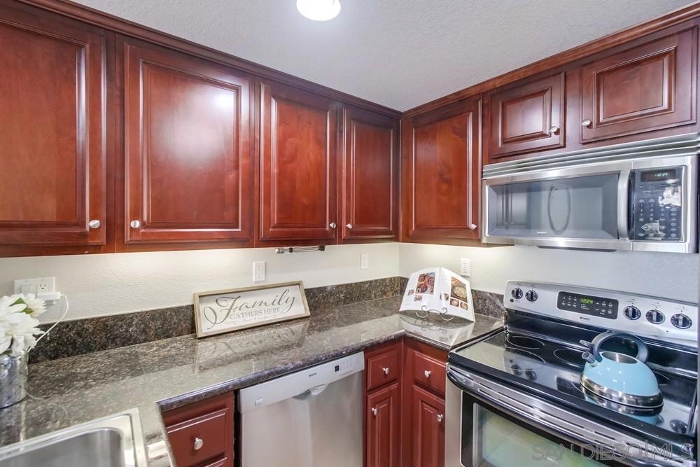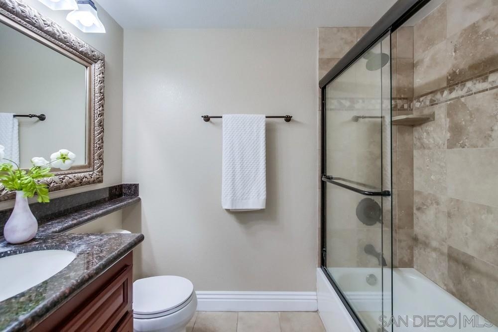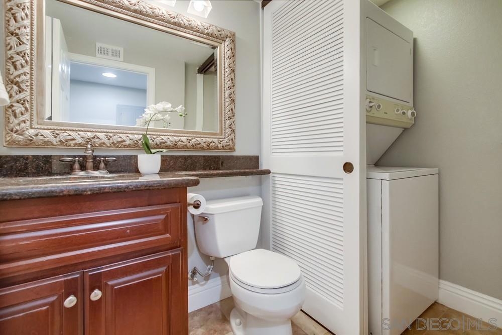 Location, location, location! This beautiful 2bd/2.5 ba condo is in the heart of UTC, in walking distance to shopping, restaurants, parks, and the UCSD bus stop. It boasts a dual master layout, with in-unit laundry, a balcony, and 2 adjacent parking spaces. The kitchen has rich cherrywood colored cabinets, stainless steel appliances and granite countertops. Brand new double-pane windows and patio sliding door. The HOA fees are low, but the complex amenities are high, including: a fitness center, tennis court, pool, spa and BBQ area. Welcome to your new home!
