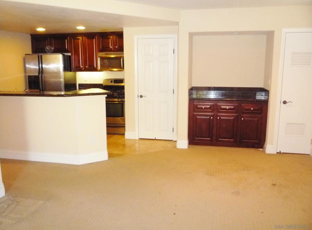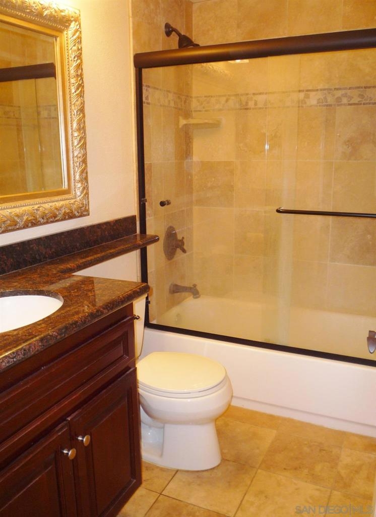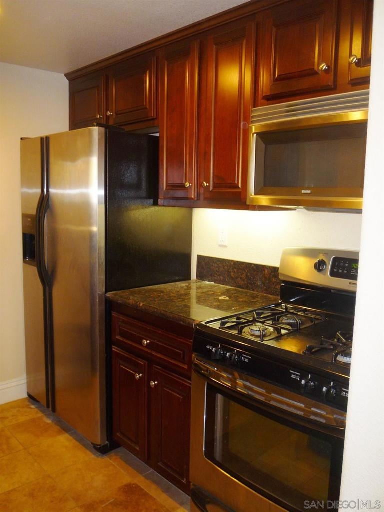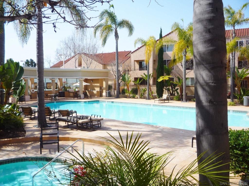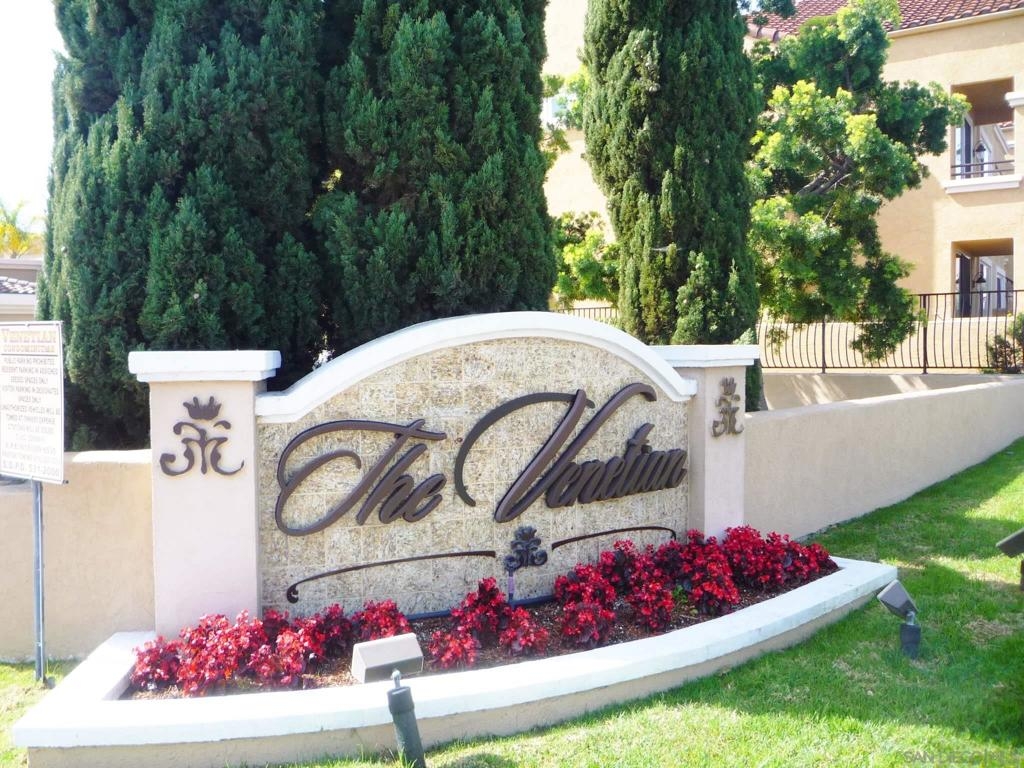 First floor corner unit condo at The Venetian featuring: granite counters, dark cherry wood cabinetry, travertine tile, neutral carpet and paint, recessed lighting, built-in granite and cherry wood dining buffet/cabinet, stainless steel appliances include refrigerator, dishwasher, stove/oven, built-in microwave, and washer/dryer. Bedroom and bath suite has his and hers mirrored closets, stone tile and glass tub/shower combo enclosure and granite and cherry wood vanity. See Supplement. There's a large patio and community offers pool, spa, tennis, and gym. Walk to bus stop, close to UCSD, shopping and restaurants Other Fees: 0 Sewer: Sewer Connected