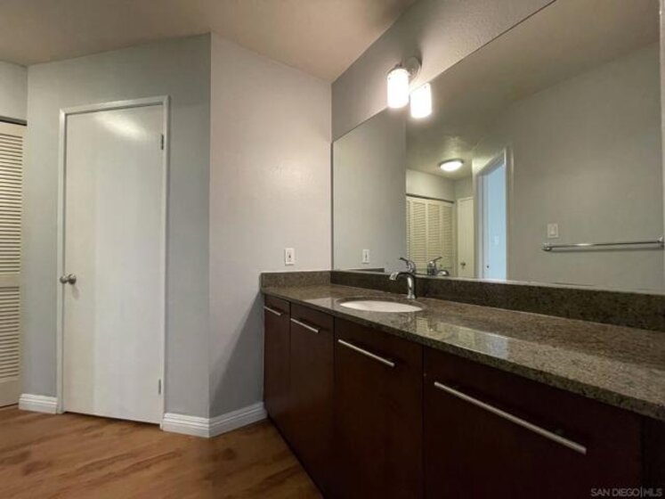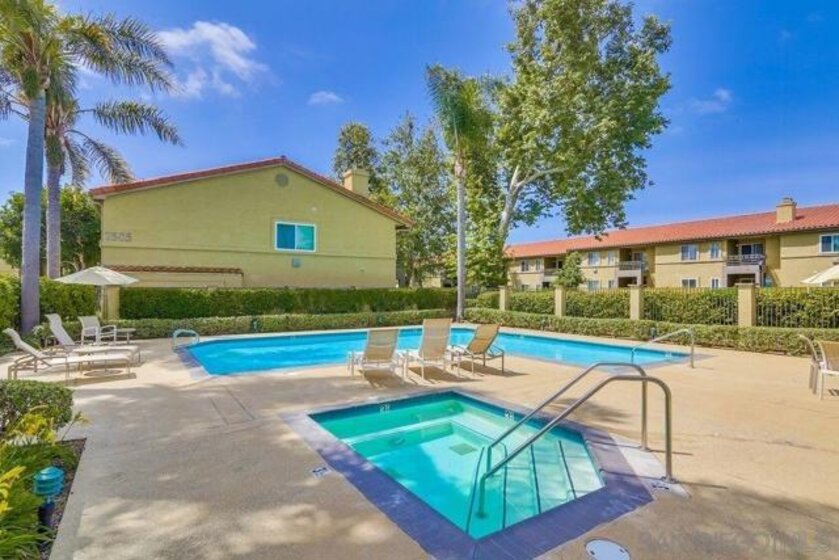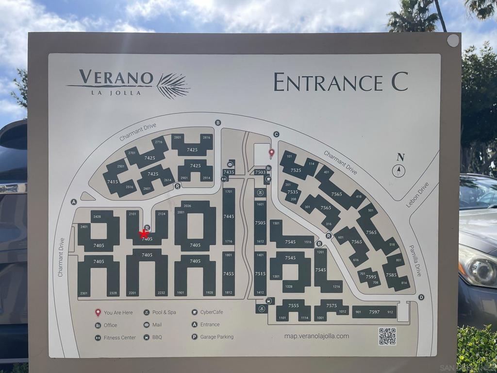Located in the in the highly desired Verano community in the heart of UTC, this largest 2b/2b ground level unit is move-in ready! The largest 1,037 sq ft floor plan features granite counter top, stainless steel appliances, dual pane windows, laminate floors throughout, freshly painted interior. Dual master bedrooms are retreats with large walk-in closets and upgraded bathrooms. Includes full size in-unit washer and dryer and ample storage closet on the large patio. Water and trash are included in HOA fees. Two assigned underground parking spots in gated garage and one additional parking spot with permit. Resort style amenities includes two pools and hot tubs, cyber café, 24/7 gym, BBQ area, and walking trails in a park-like setting. This vibrant UTC/La Jolla location is close to UCSD, highways, shopping, restaurants, theatres and famous La Jolla beaches just a short drive away!