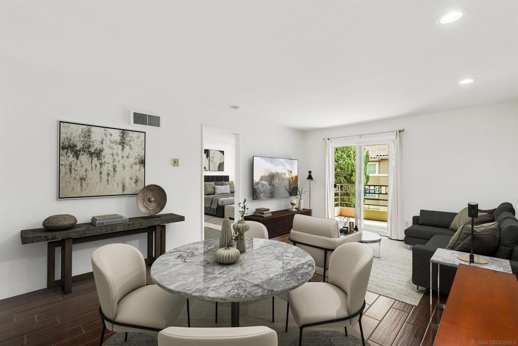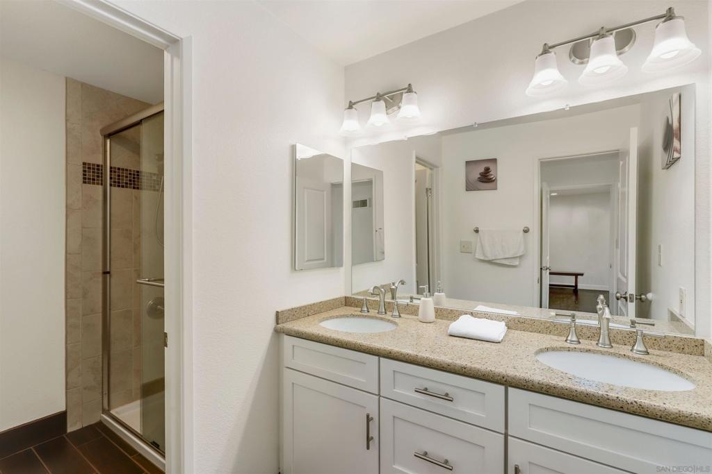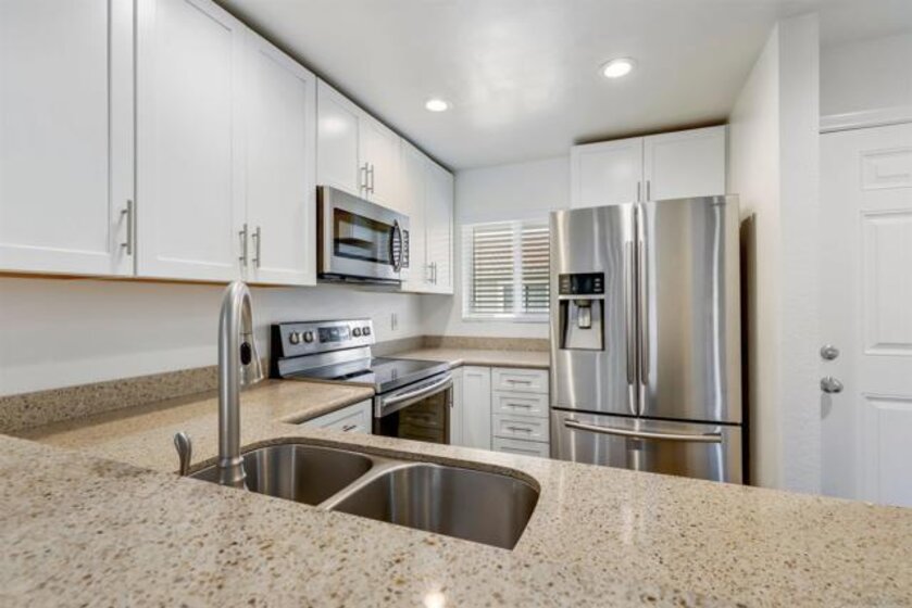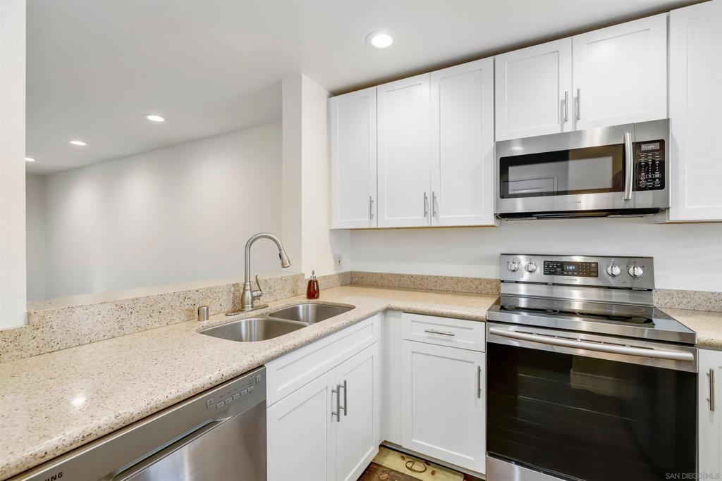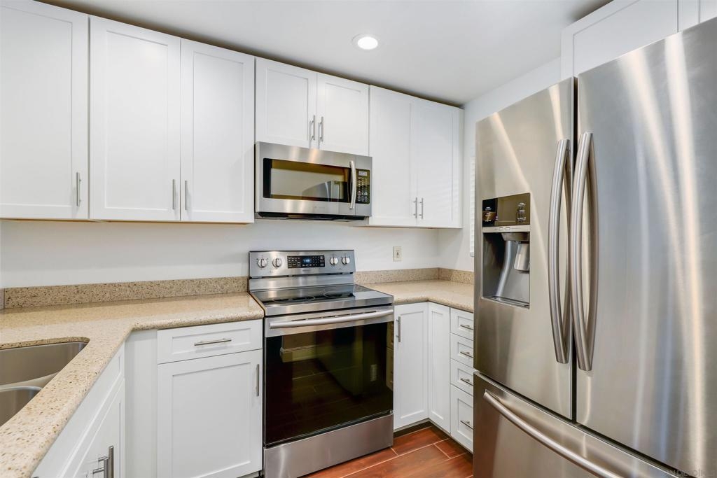 Location! Location! Location! Fully renovated second floor unit with no neighbors above, located in the highly desirable community of Verona in the heart of La Jolla. This stunning property features durable wood-like tile flooring throughout, in-unit laundry that includes a side-by-side washer and dryer plus a light and airy open concept living area. Open the living room balcony door to let the cool breezes flow through all year round. The kitchen is open to the living area and features crisp, white cabinetry, quartz countertops and stainless steel appliances. The split bedroom floor plan provides extra privacy to all with one bedroom and full bathroom in the front of the unit and the primary bedroom and bathroom at the other end of the unit with direct access to the balcony where you can sip your favorite beverage and listen to the soothing sounds of nature. Both bathrooms have been upgraded to feature quartz counters, modern lighting and fixtures plus gorgeous tiled shower surrounds. Unsurpassed community amenities include a sparkling pool/spa, fully-equipped fitness center and a cafe. Ideally located only minutes from shopping, dining, parks, Interstate 5 plus so much more! To see it is to love it!